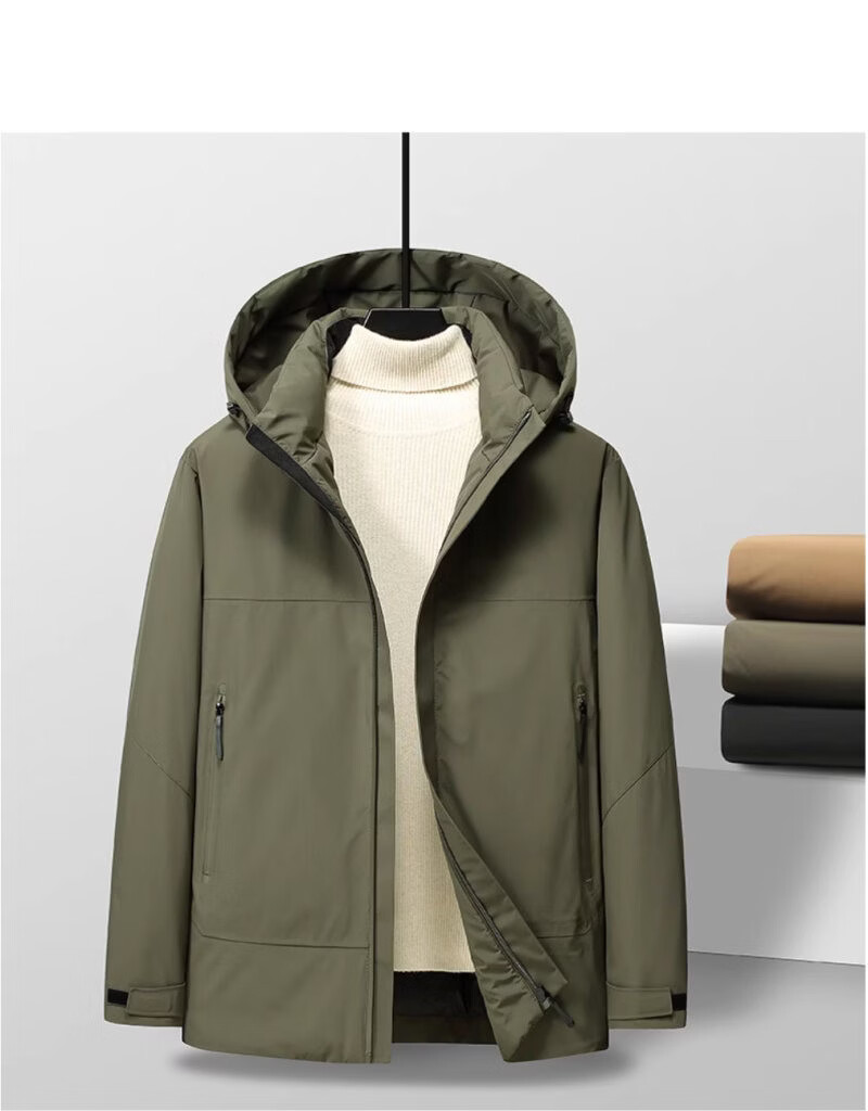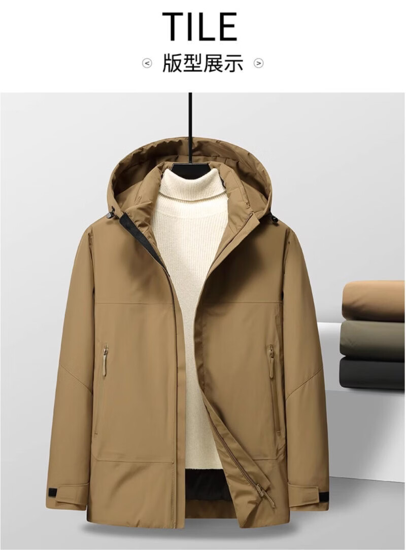 KBXNG Jinba men's detachable hooded down jacket 2025 winter new men's middle-aged casual jacket warm outer military green 14XL (185) 96a