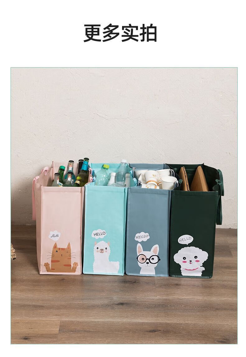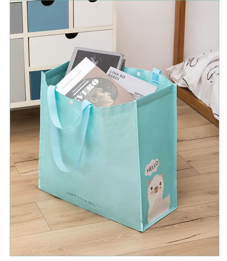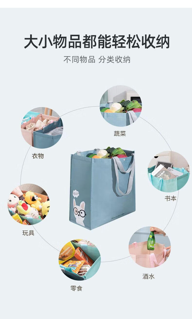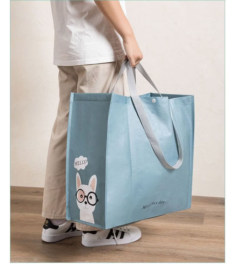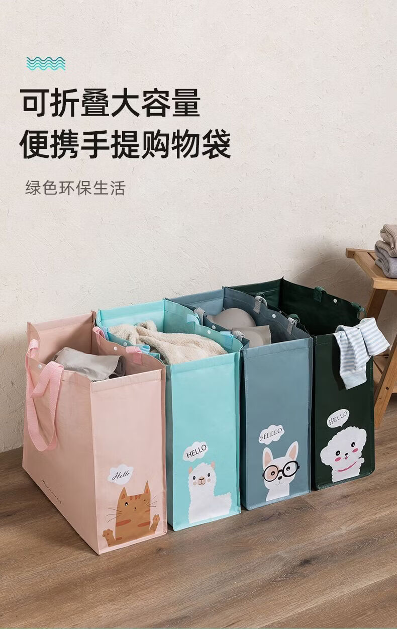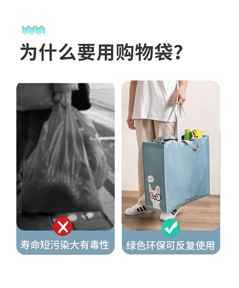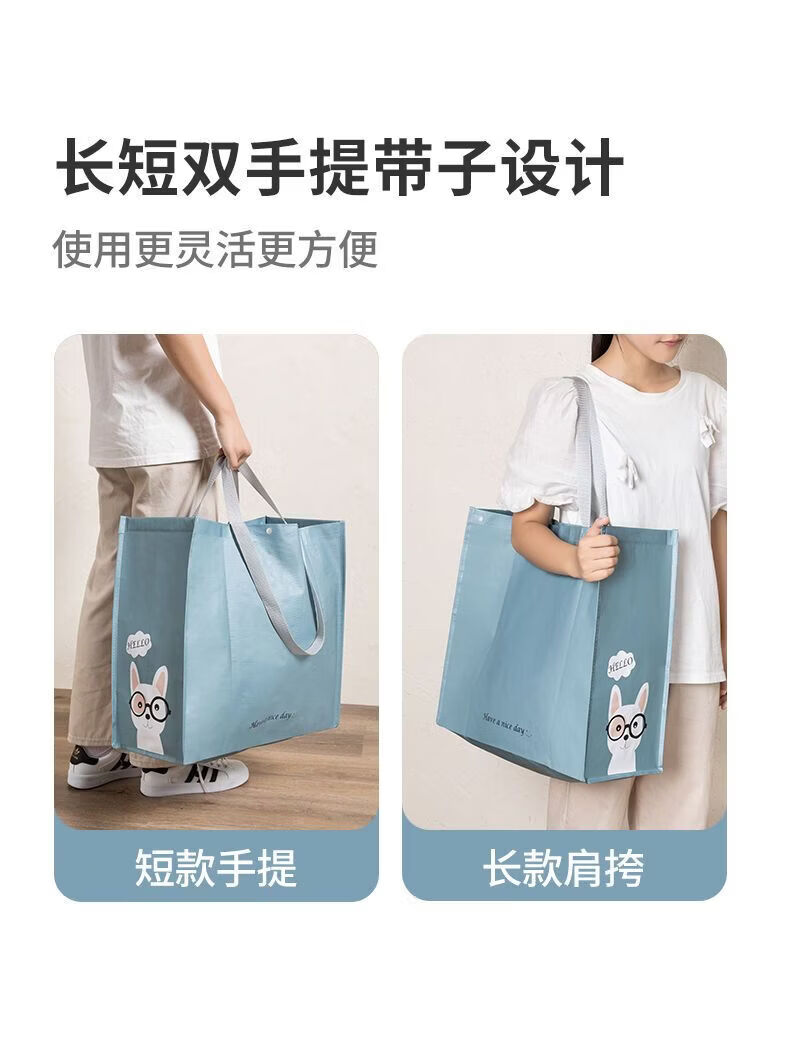 Ye Yu Shopping Bag Large Capacity Portable Supermarket Bag Foldable Waterproof Grocery Bag Handbag Shoulder Storage Bag Smoke Gray Blue Glasses Dog