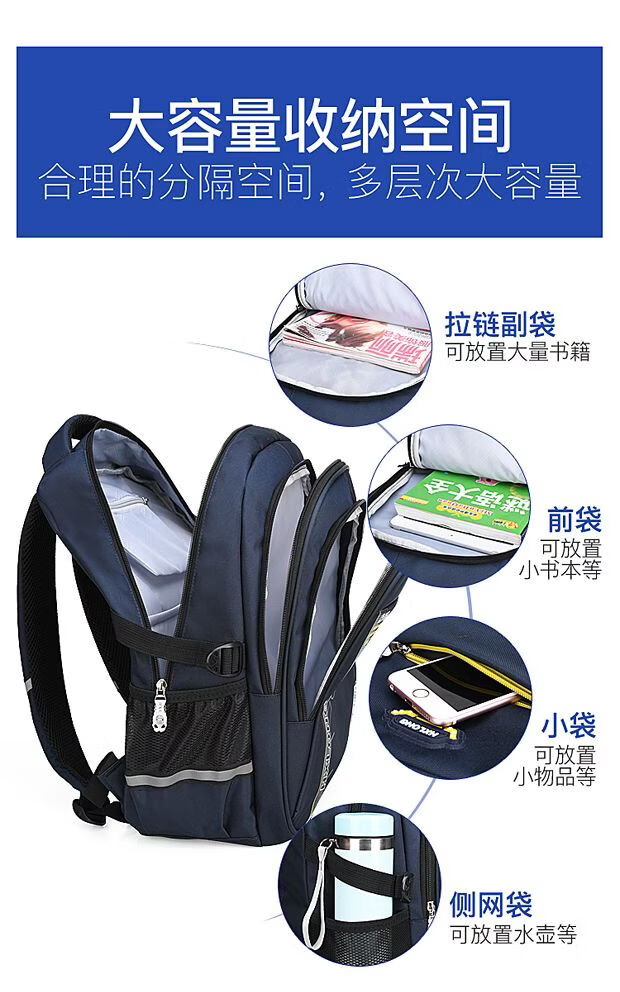 Ye Yu primary and secondary school students' schoolbags, large-capacity backpacks for boys and girls, children 6-12 years old, burden reduction and spine protection, super customizable, sapphire blue large schoolbag + tutoring bag