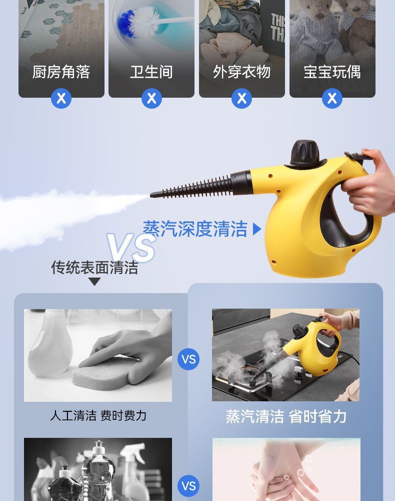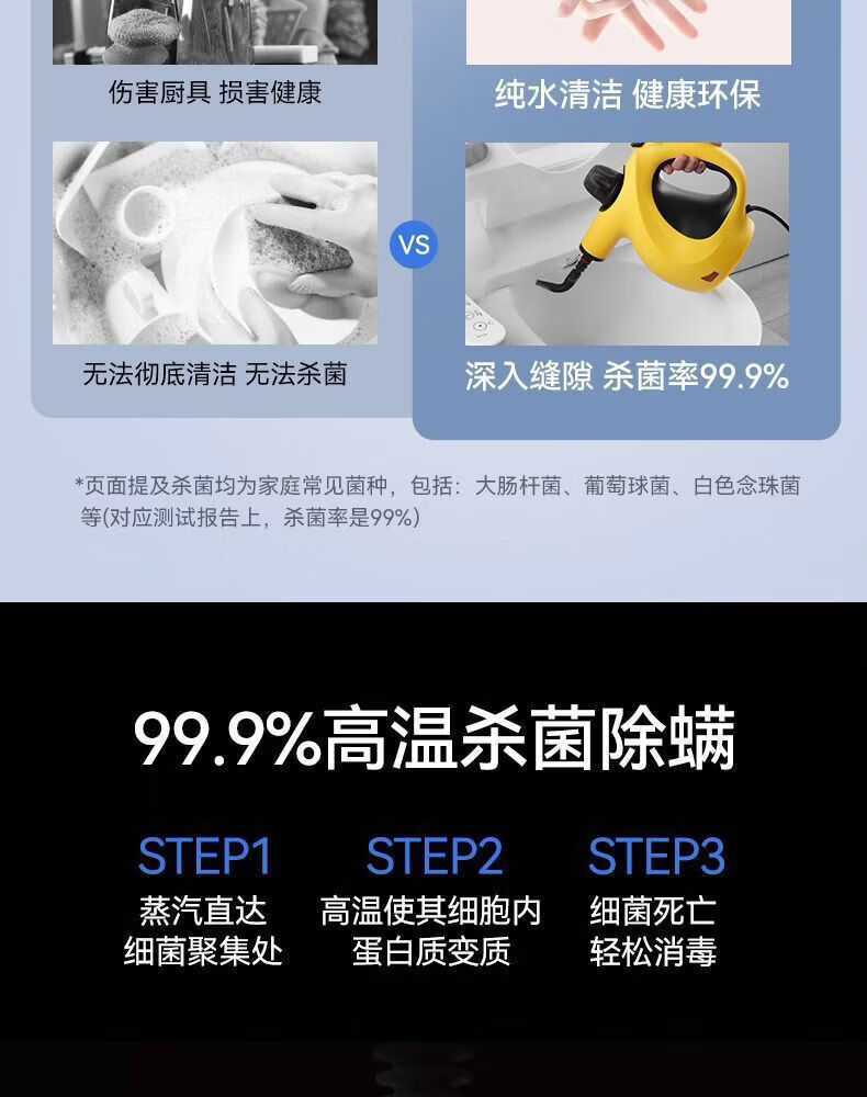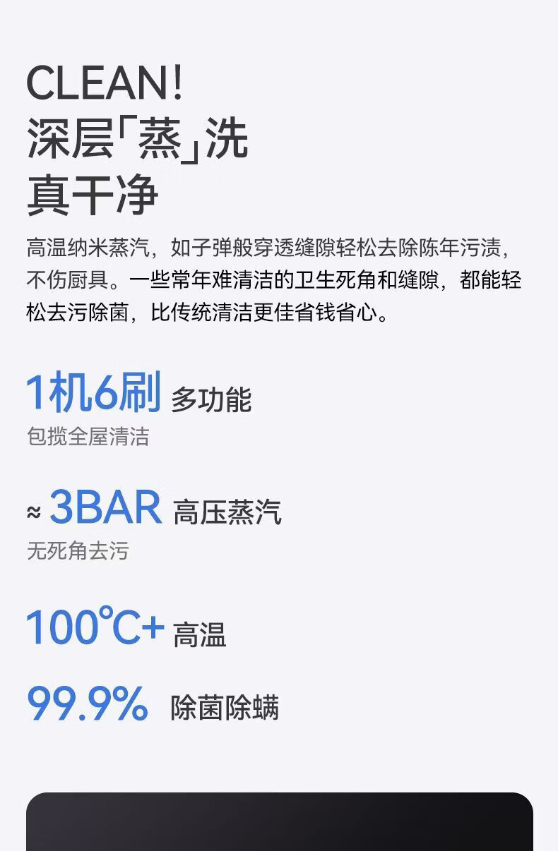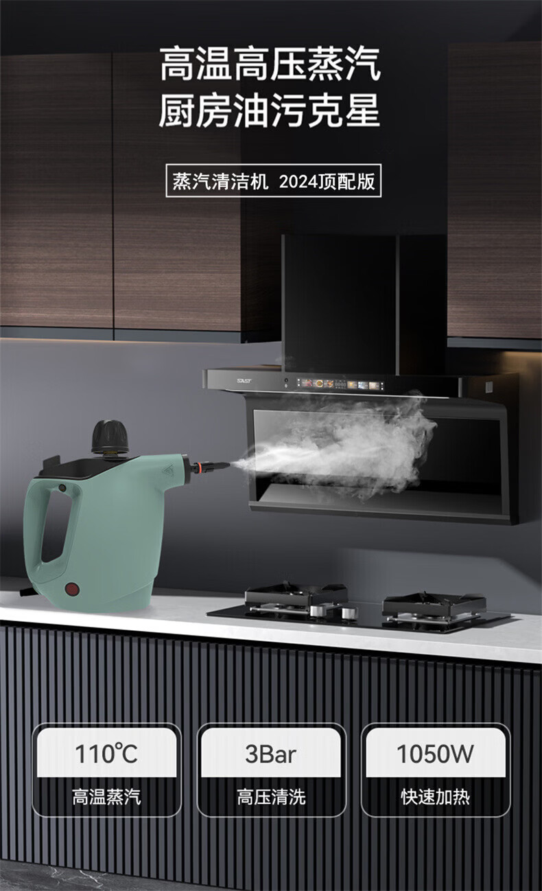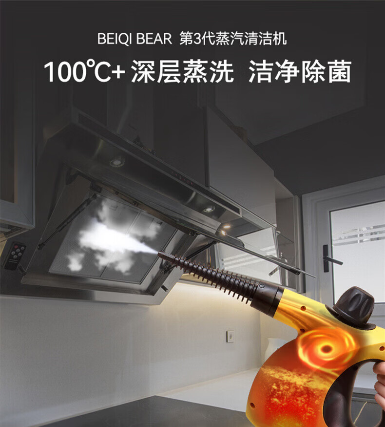 Midea Steam Cleaner High Temperature and High Pressure Household Multifunctional Kitchen Degreasing, Disinfection and Mite Removal Small Oil Fume Cleaning Machine White Basic Model