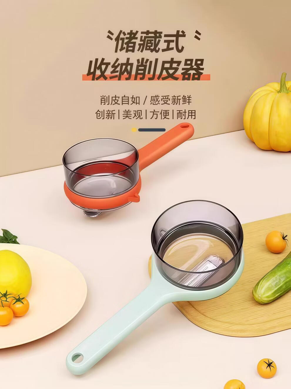 DL Fat Donglai's same fruit-peeling artifact multifunctional paring knife with visual storage for kitchen household asparagus and pears comes with food grade light green 1 pack storage box with lid/anti-peeling