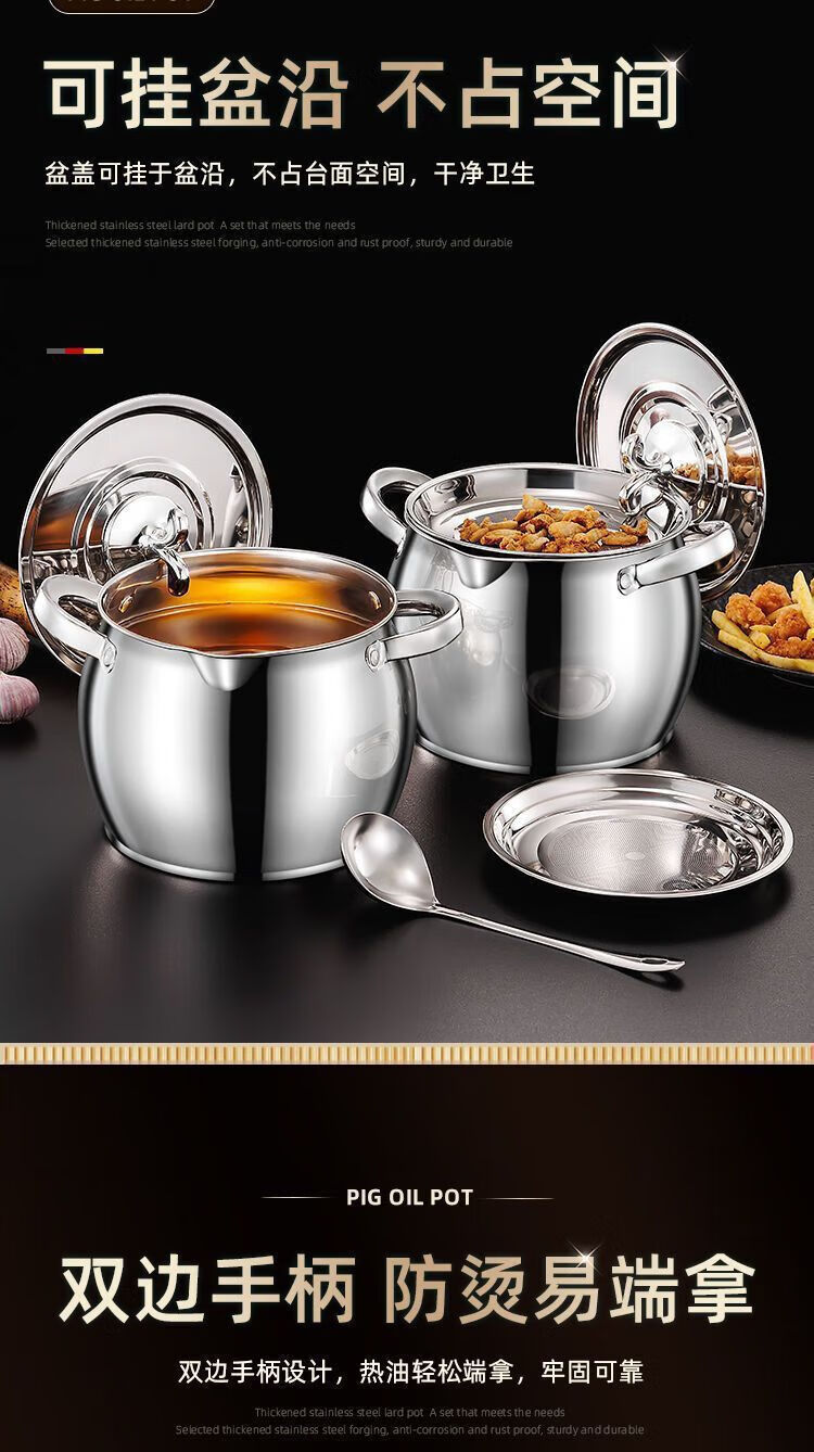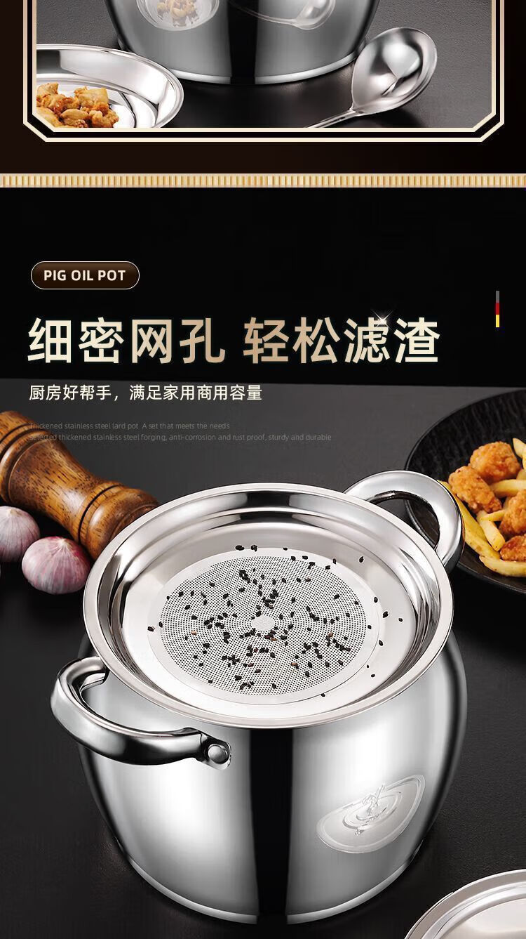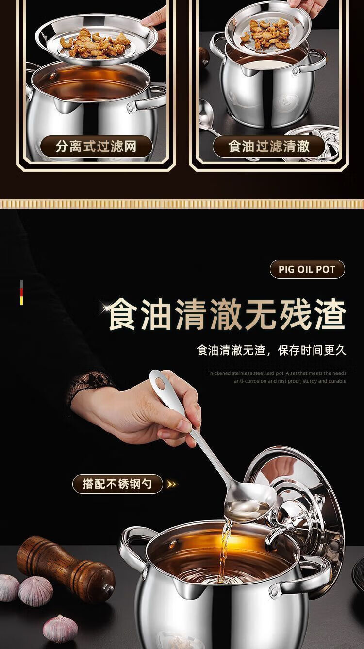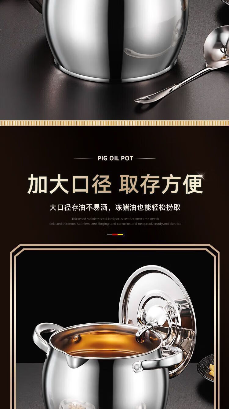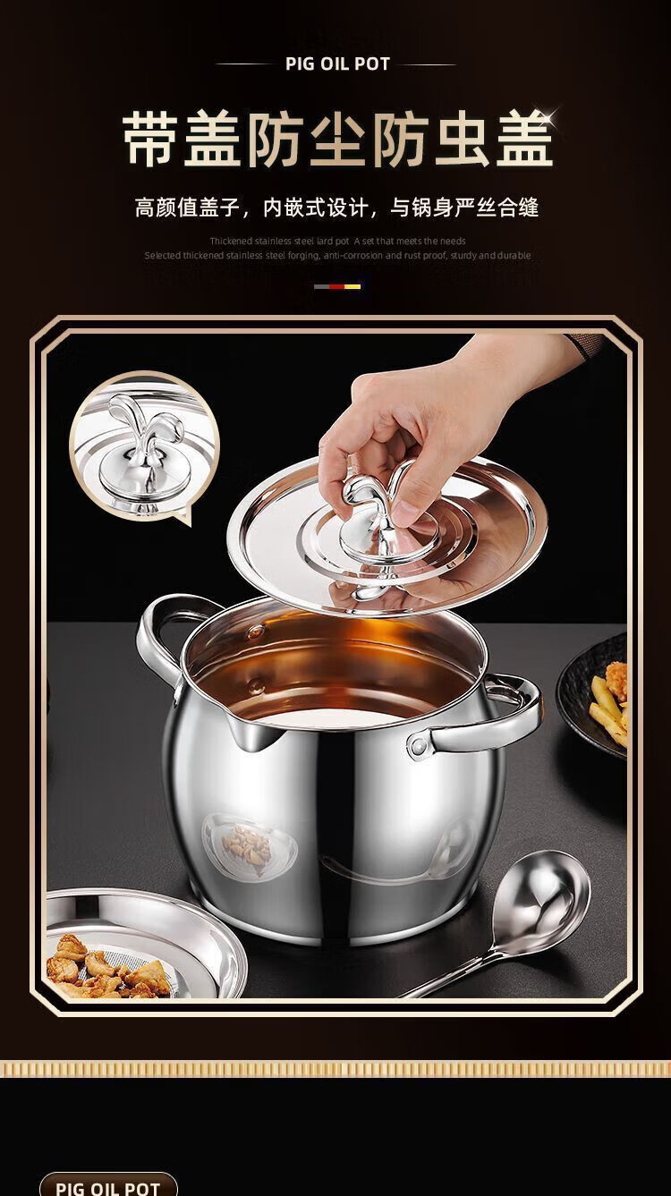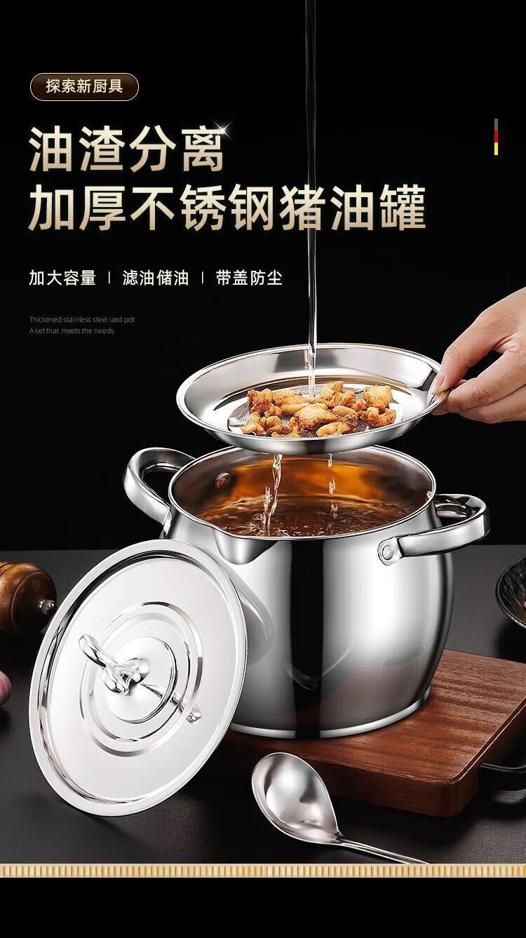Jidaocook stainless steel 304 lard tank with lid and filter oil pot oil tank household kitchen oil basin leak-proof large capacity oil tank stainless steel oil storage pot 1500ml comes with filter + oil spoon