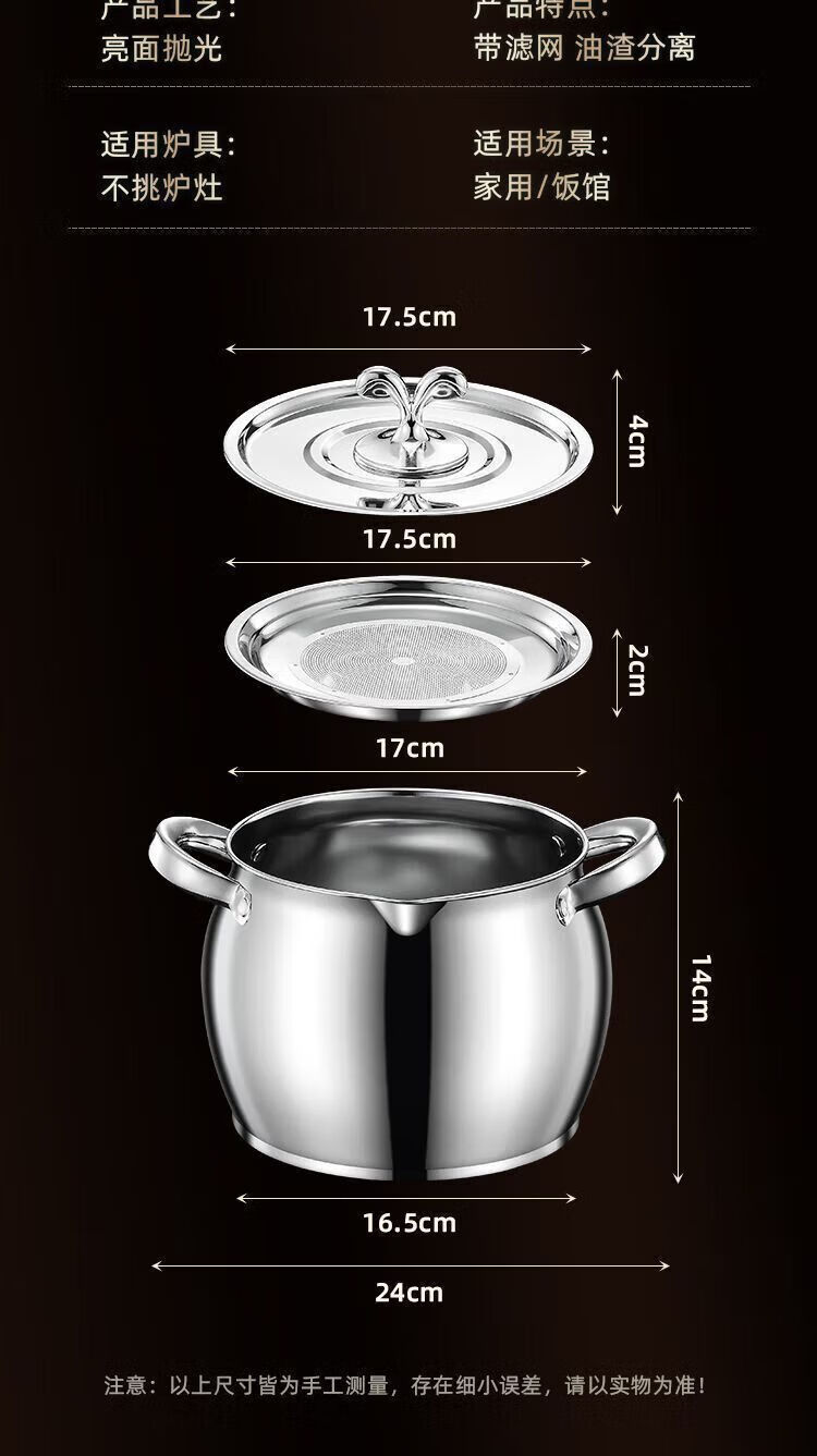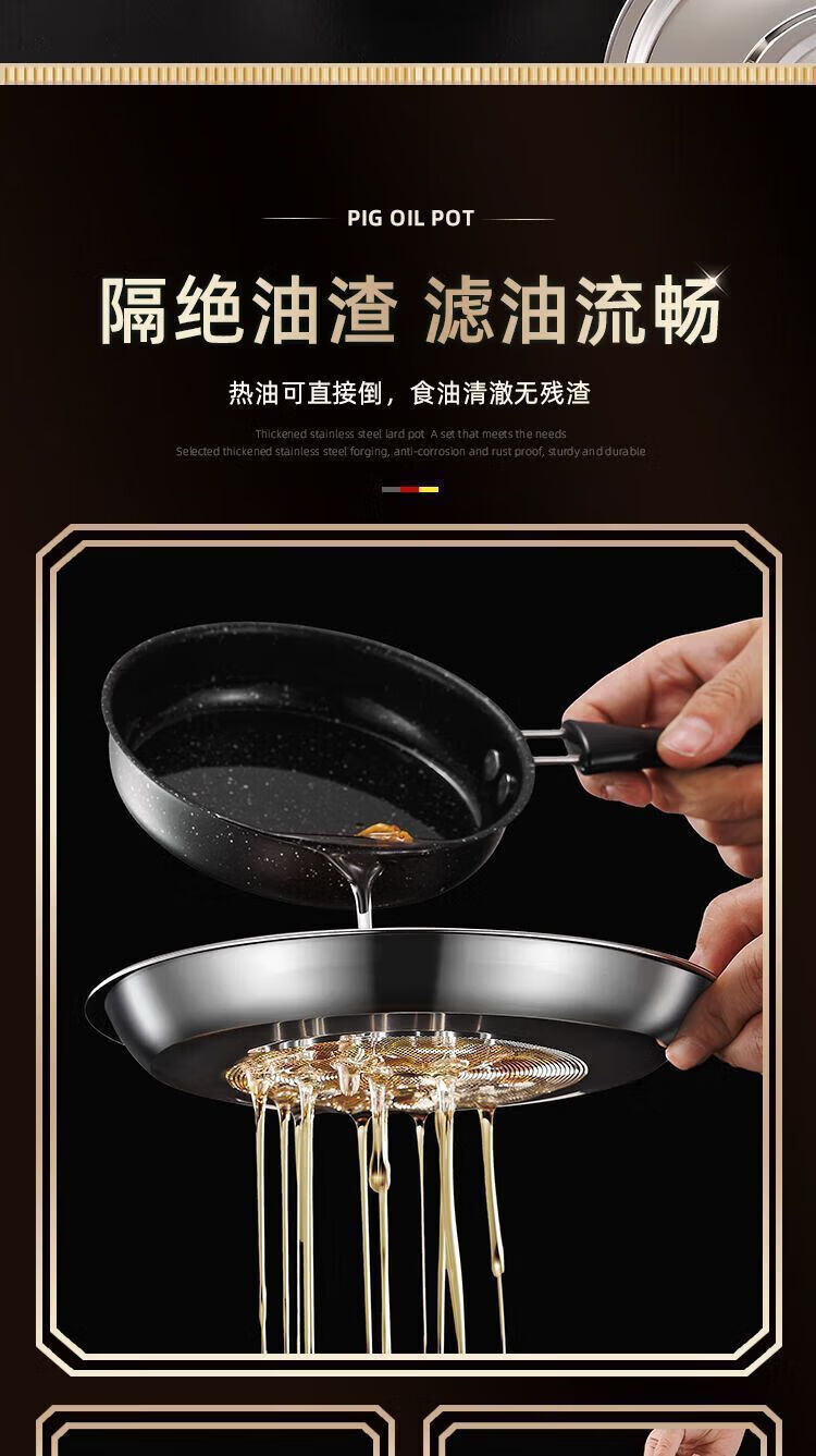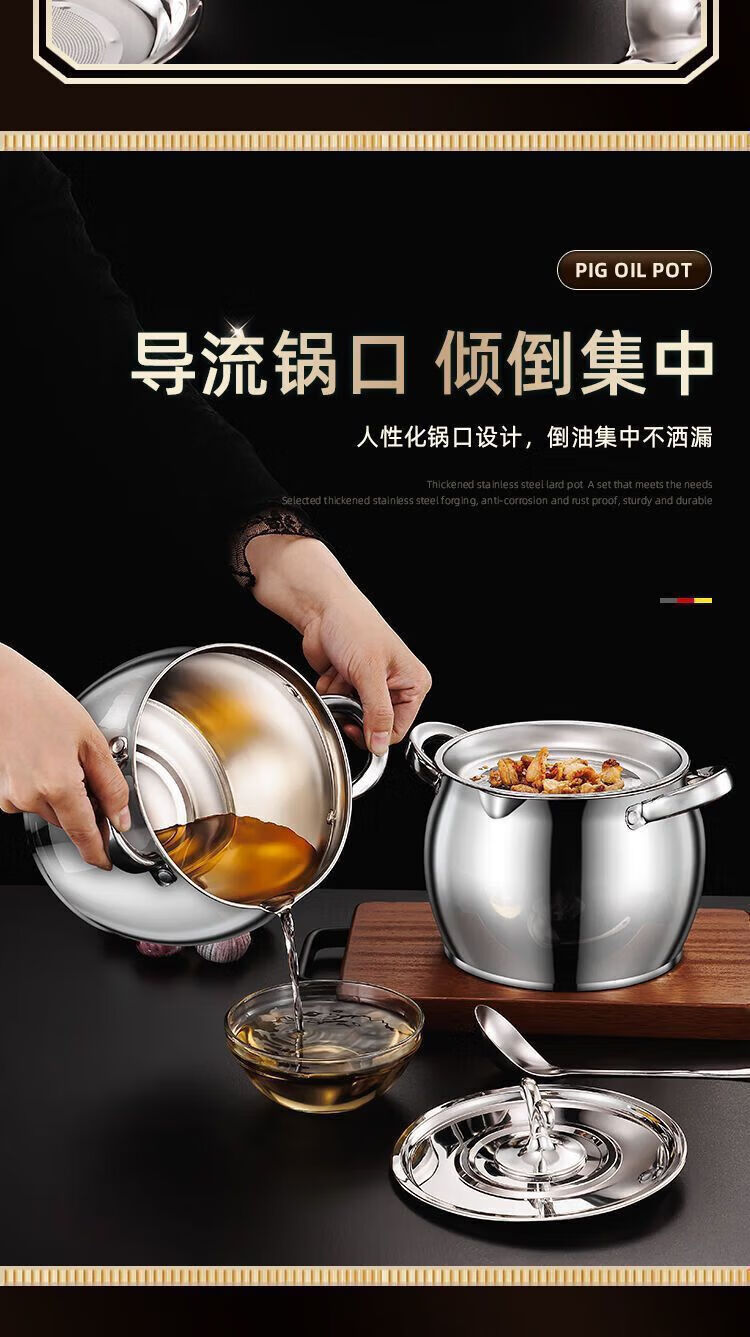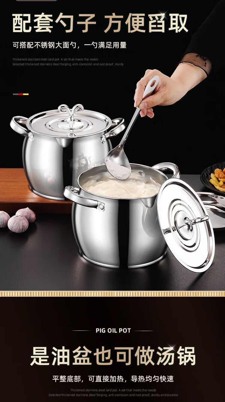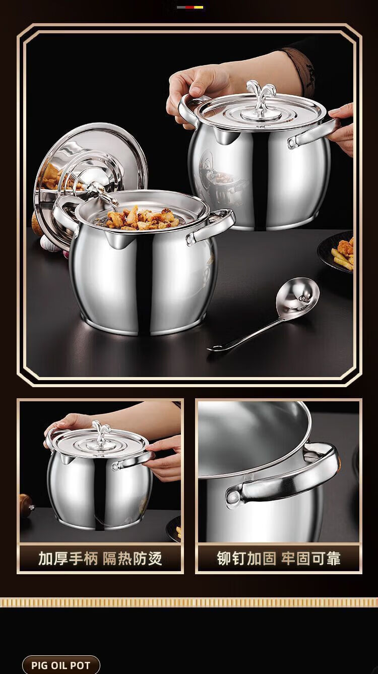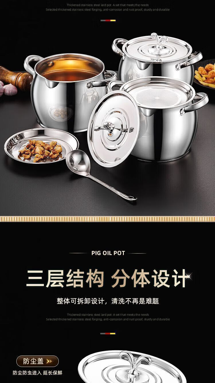Jidaocook stainless steel 304 lard tank with lid and filter oil pot oil tank household kitchen oil basin leak-proof large capacity oil tank stainless steel oil storage pot 1500ml comes with filter + oil spoon