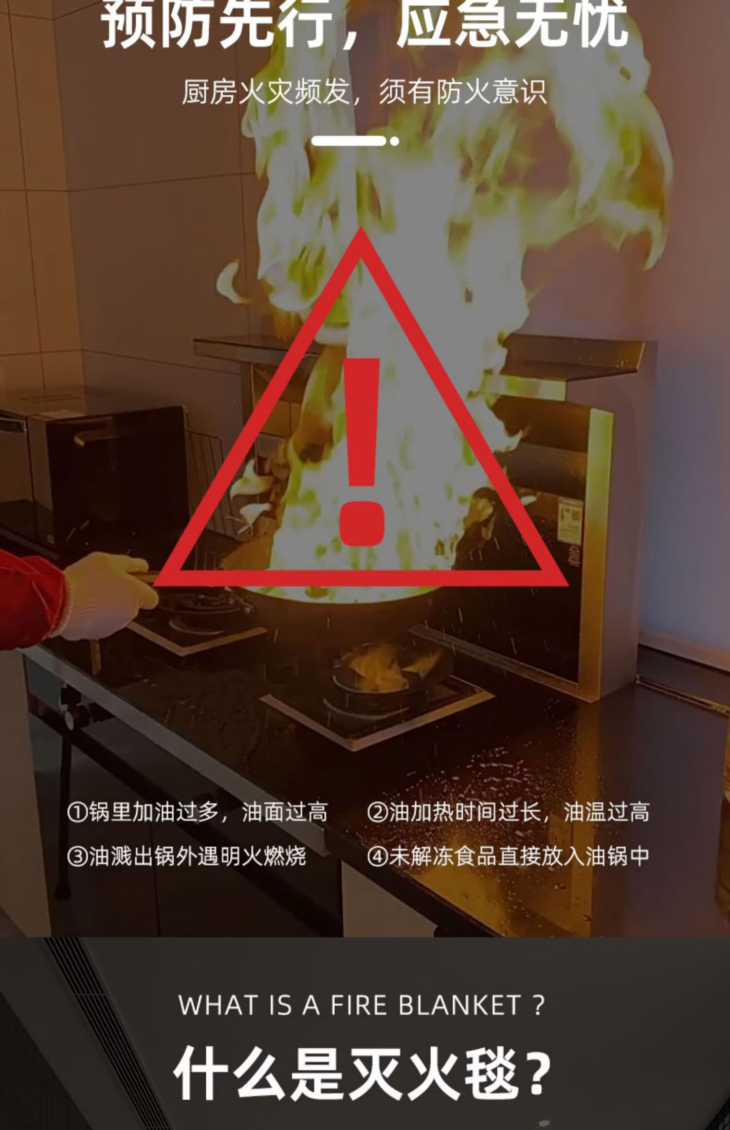 Special fire extinguishing blanket for fire protection, home kitchen, hotel emergency escape, flame retardant fiberglass fire blanket, high temperature resistance, 11m fire extinguishing blanket, soft bag (no glove hook)