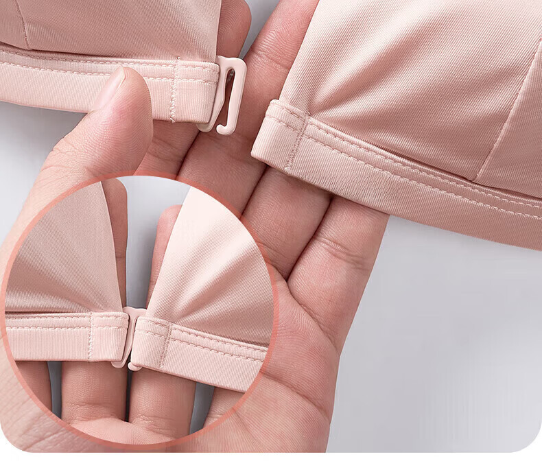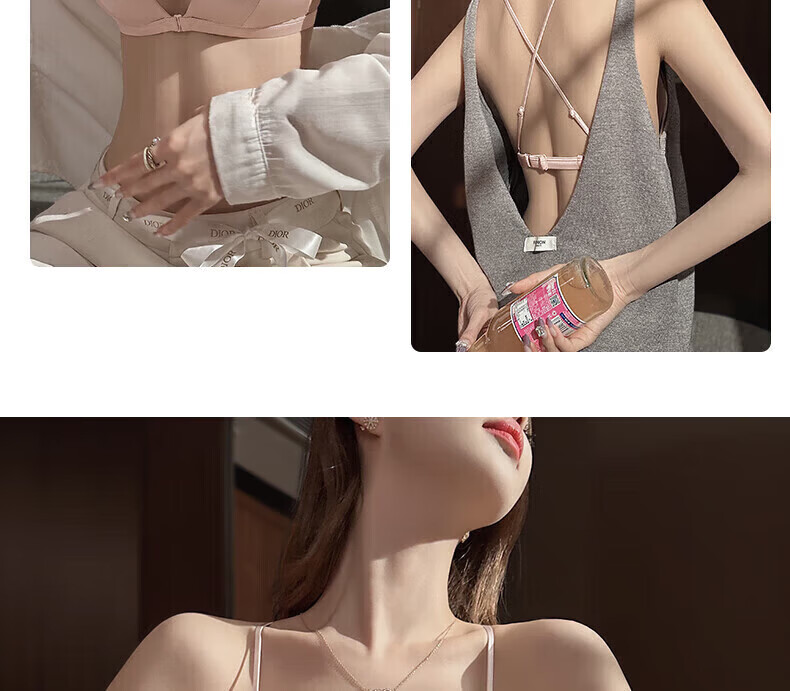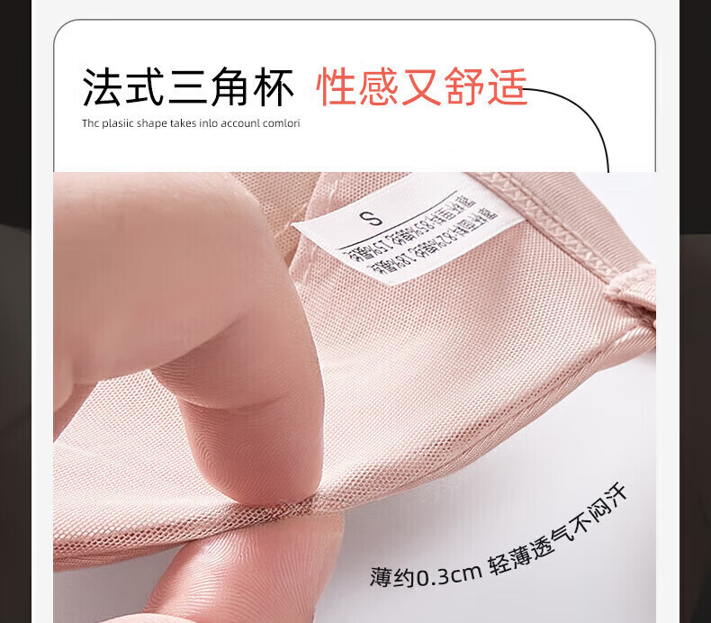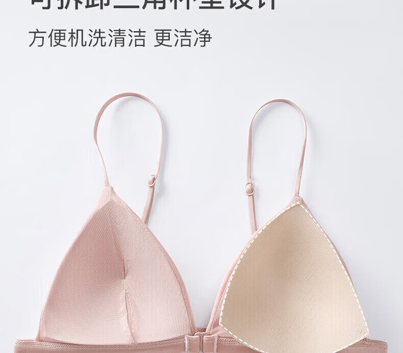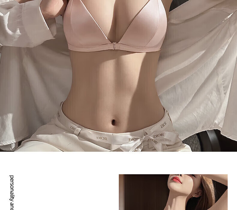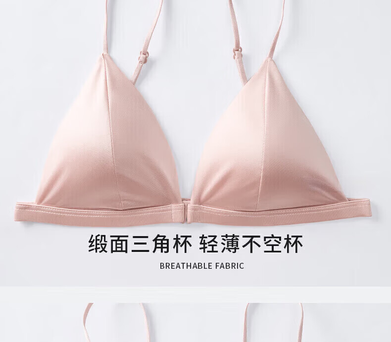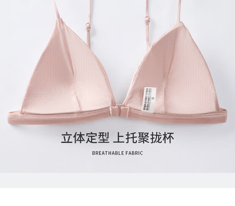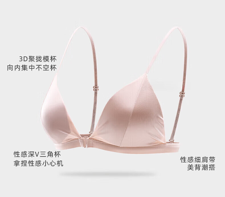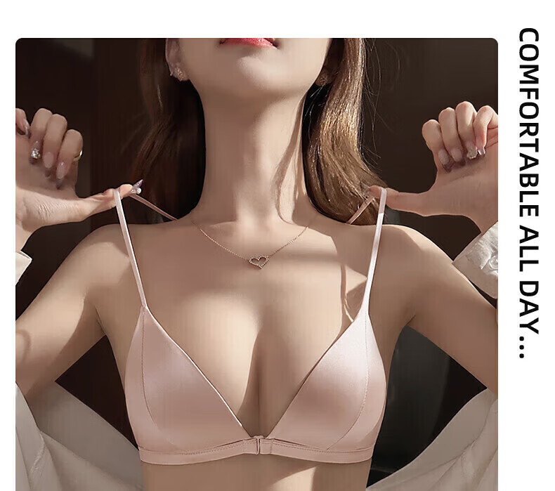 ZOEACE Bra Set French Triangular Cup Underwear Women's Small Breast Gathering Sexy Beautiful Back Front Button Thin Shoulder Straps Champagne Pink-Set S (Suitable for 70AB)