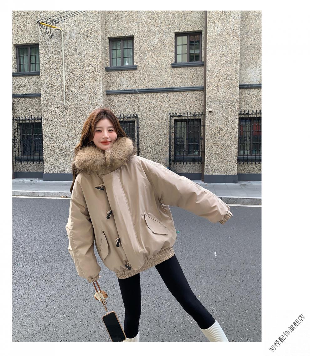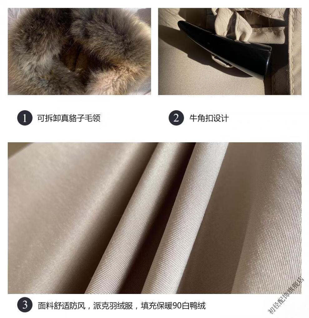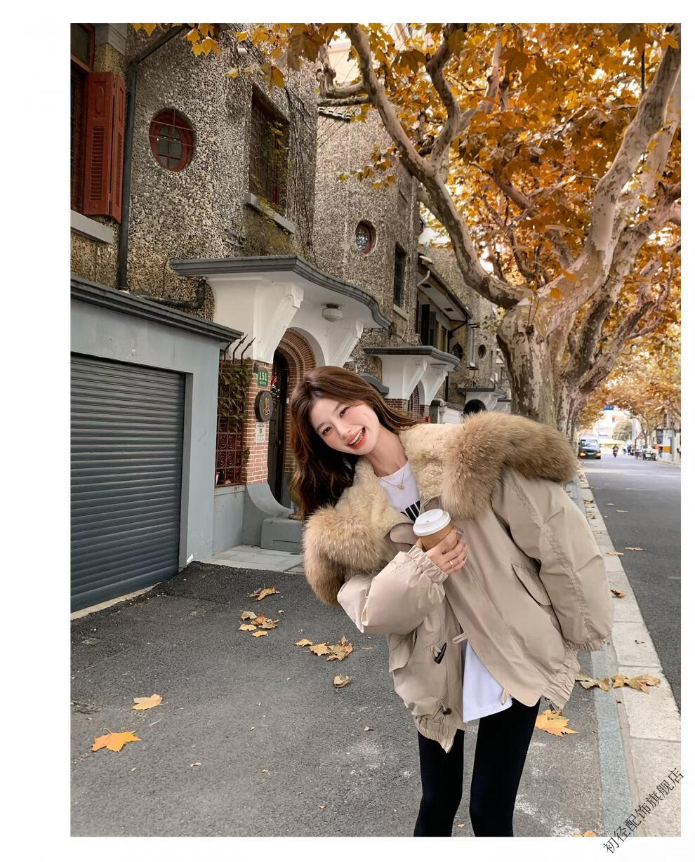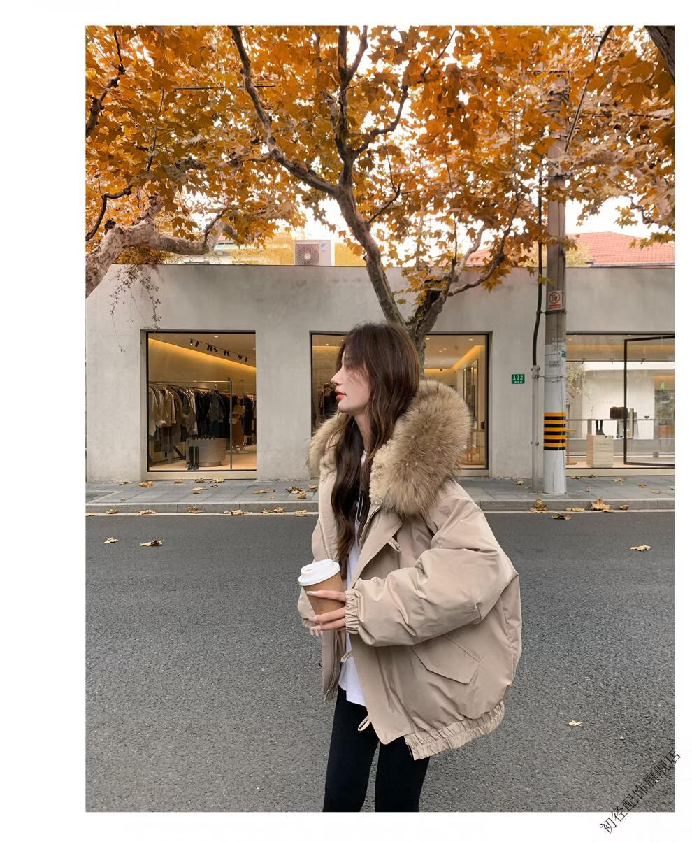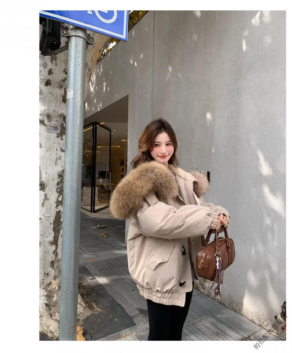 Chujing's new high-quality and good-looking thick winter coat Korean short style parka large fur collar warm down jacket khaki 90 white duck down upgraded model XL recommended within 145 pounds