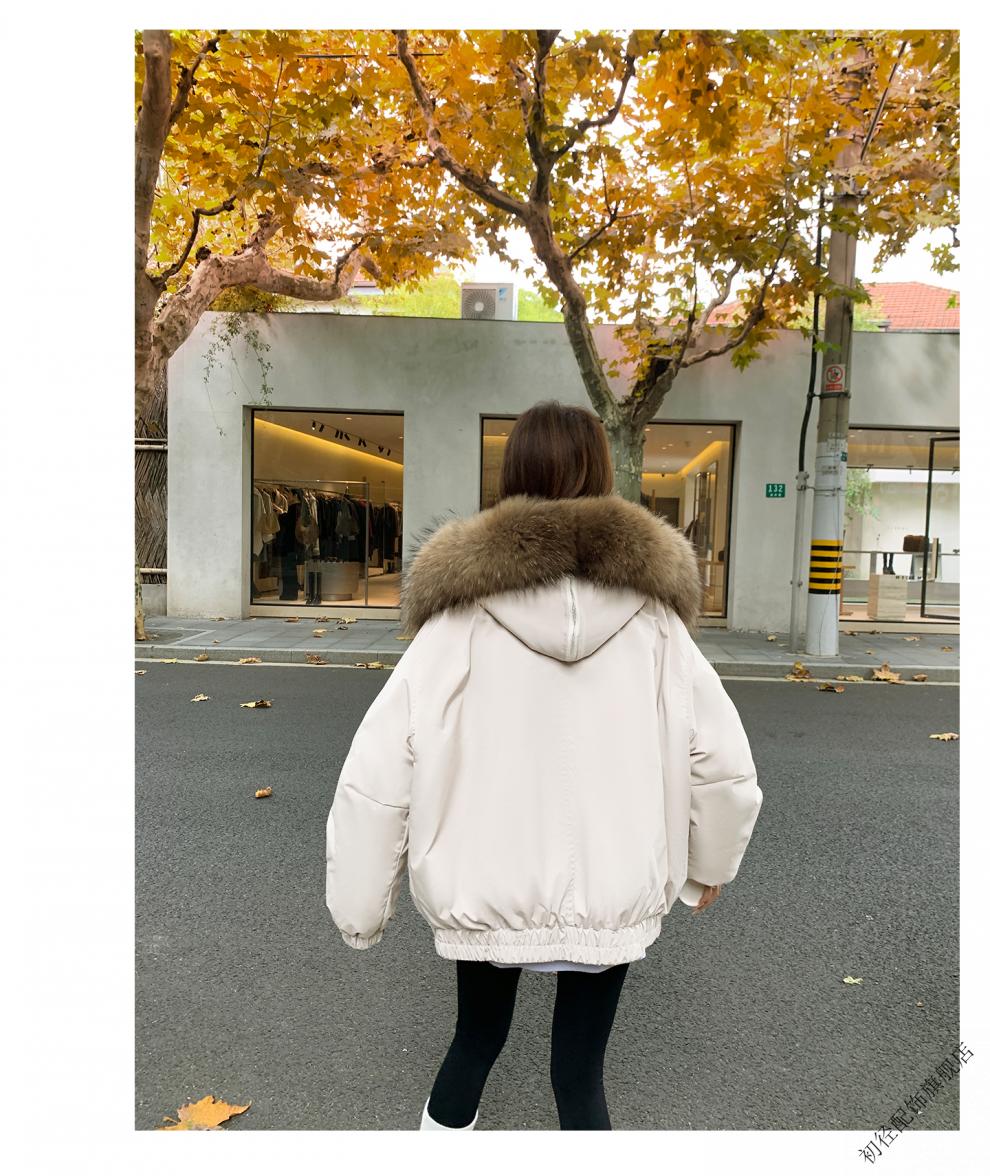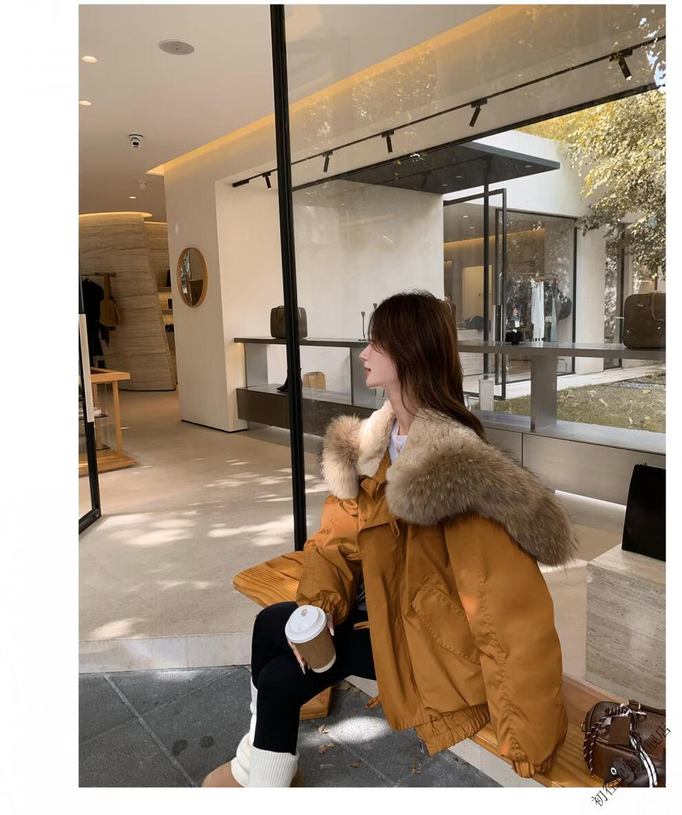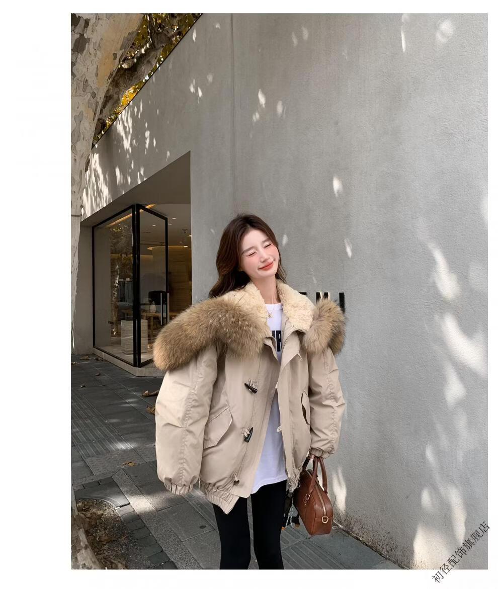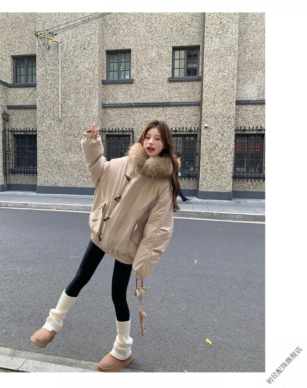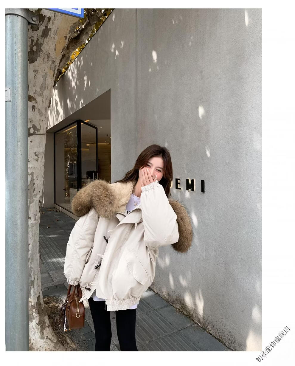 Chujing's new high-quality and good-looking thick winter coat Korean short style parka large fur collar warm down jacket khaki 90 white duck down upgraded model XL recommended within 145 pounds