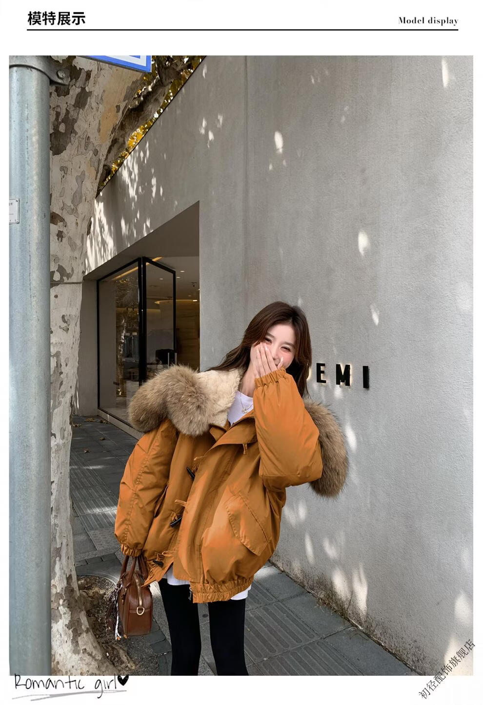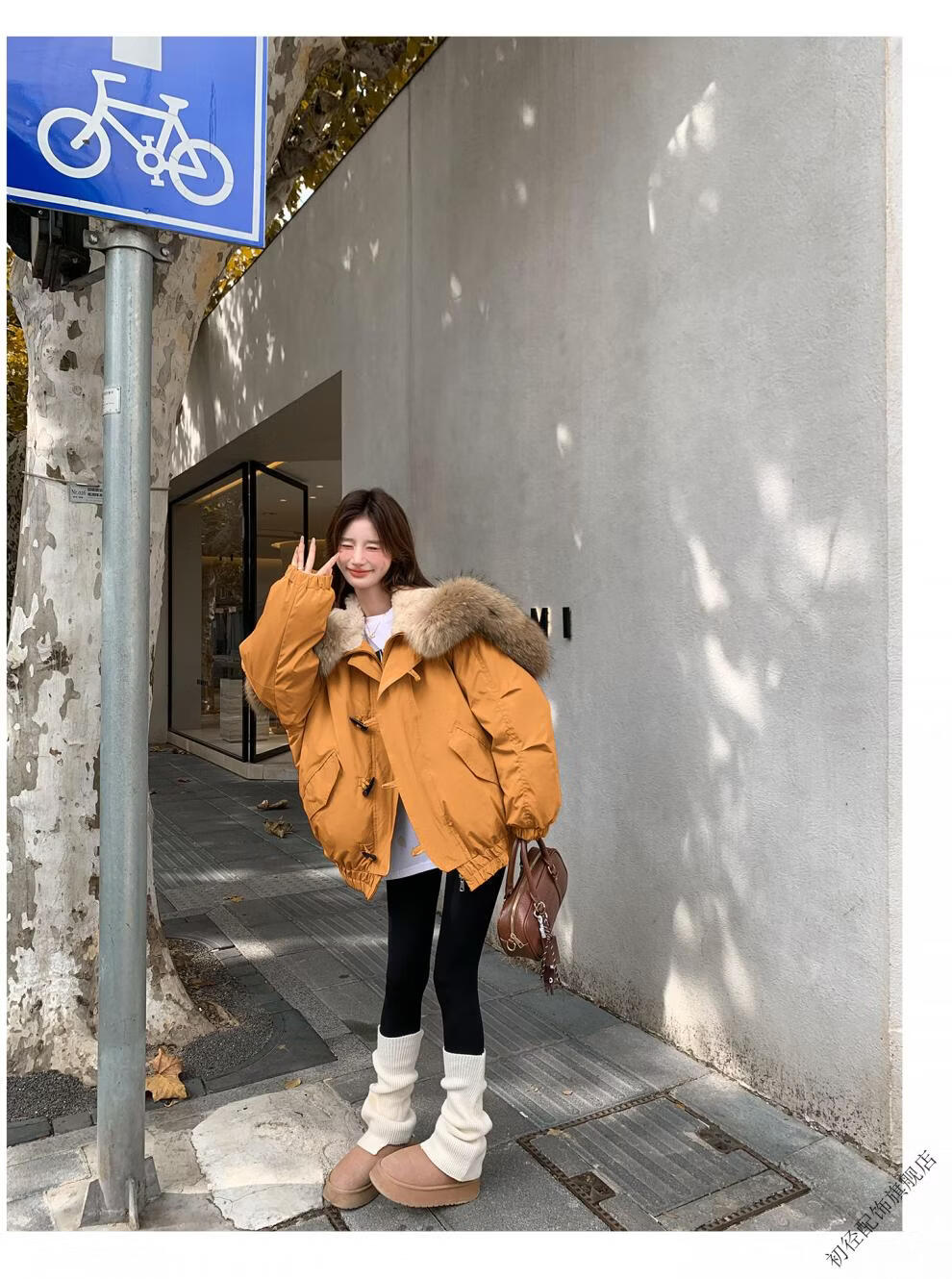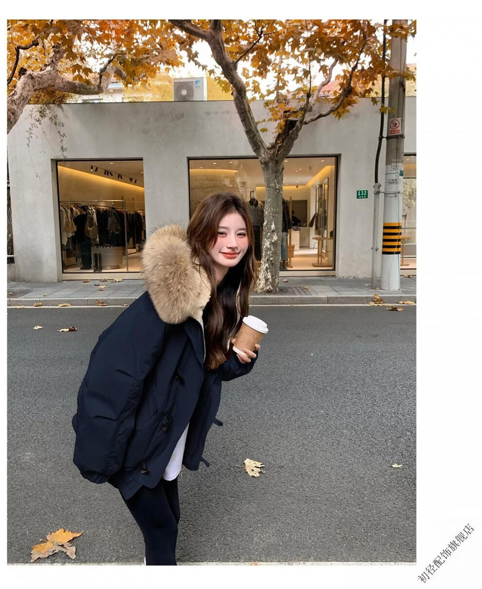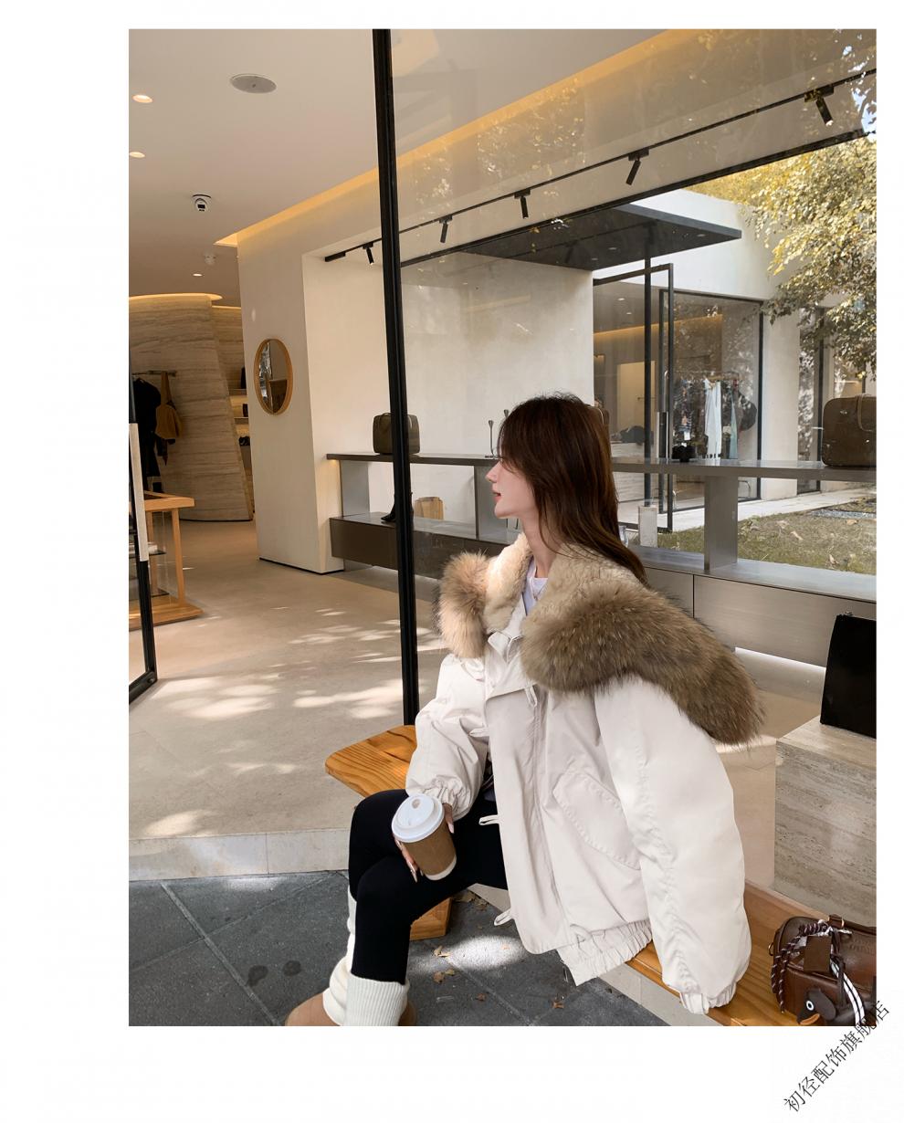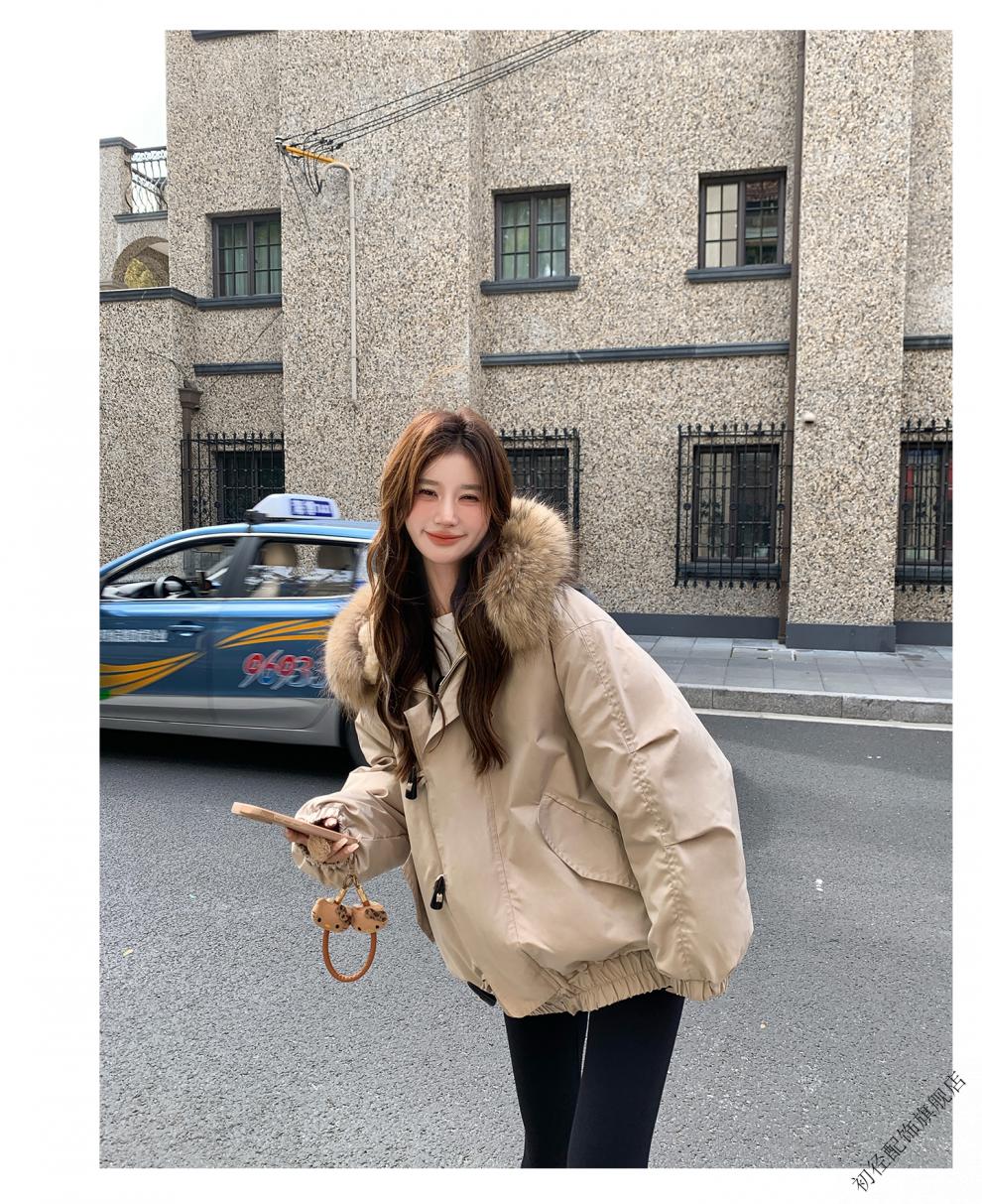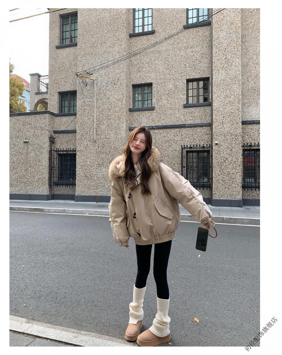 Chujing's new high-quality and good-looking thick winter coat Korean short style parka large fur collar warm down jacket khaki 90 white duck down upgraded model XL recommended within 145 pounds