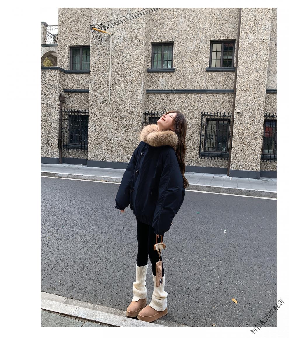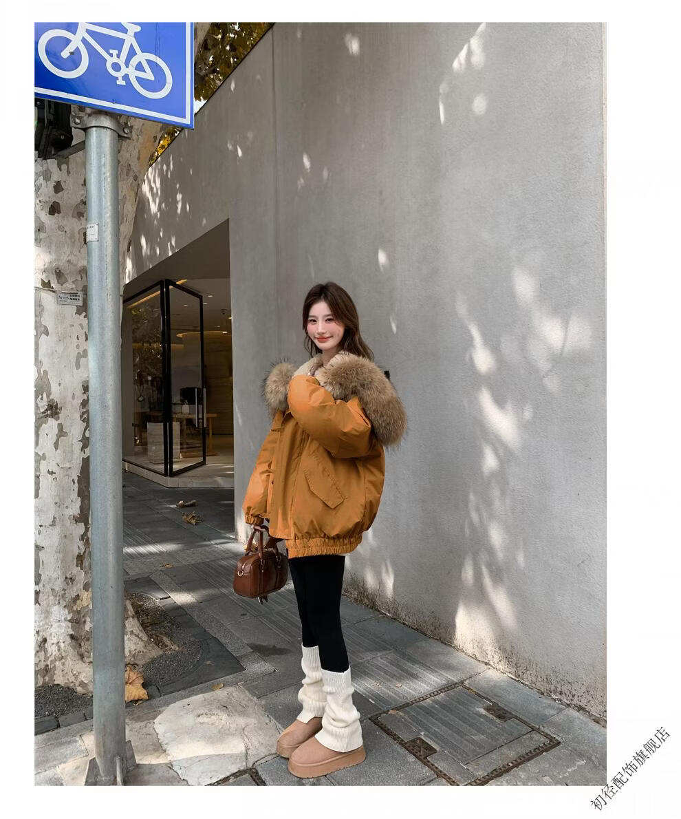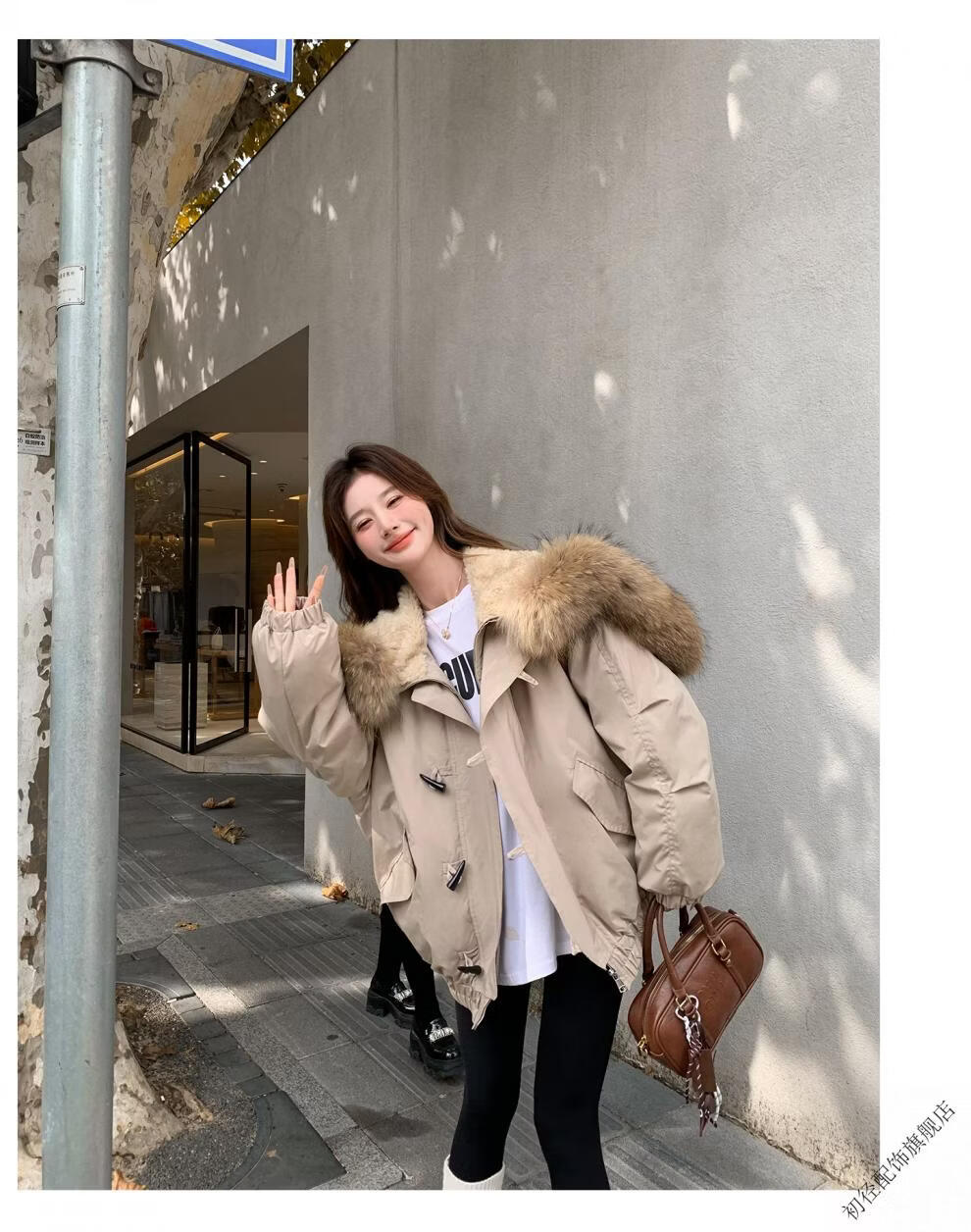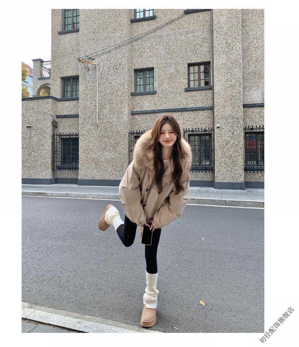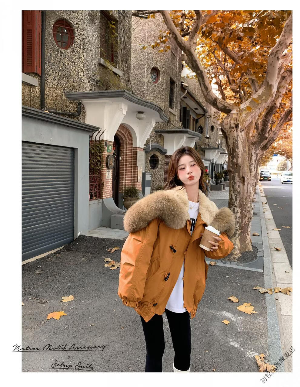Chujing's new high-quality and good-looking thick winter coat Korean short style parka large fur collar warm down jacket khaki 90 white duck down upgraded model XL recommended within 145 pounds