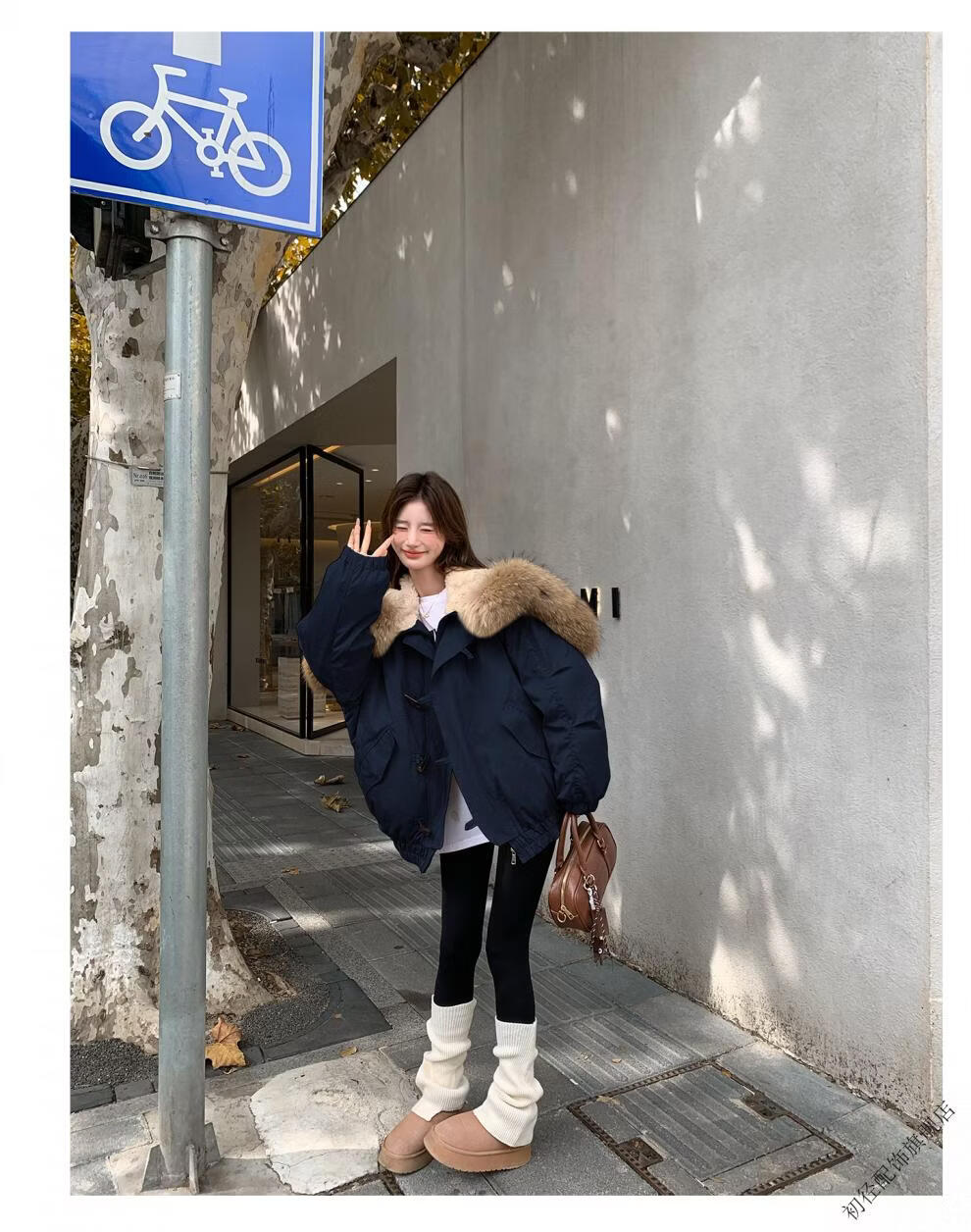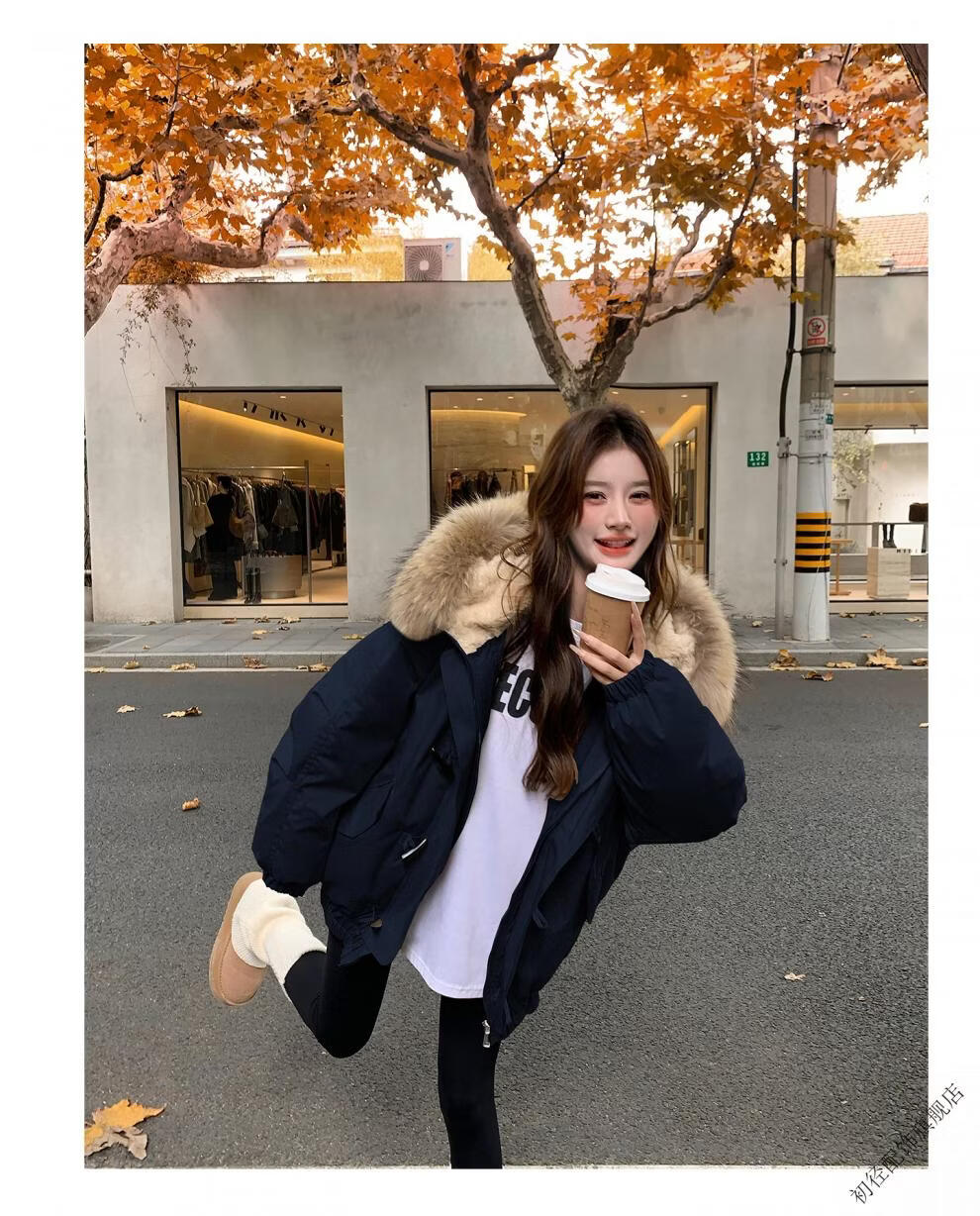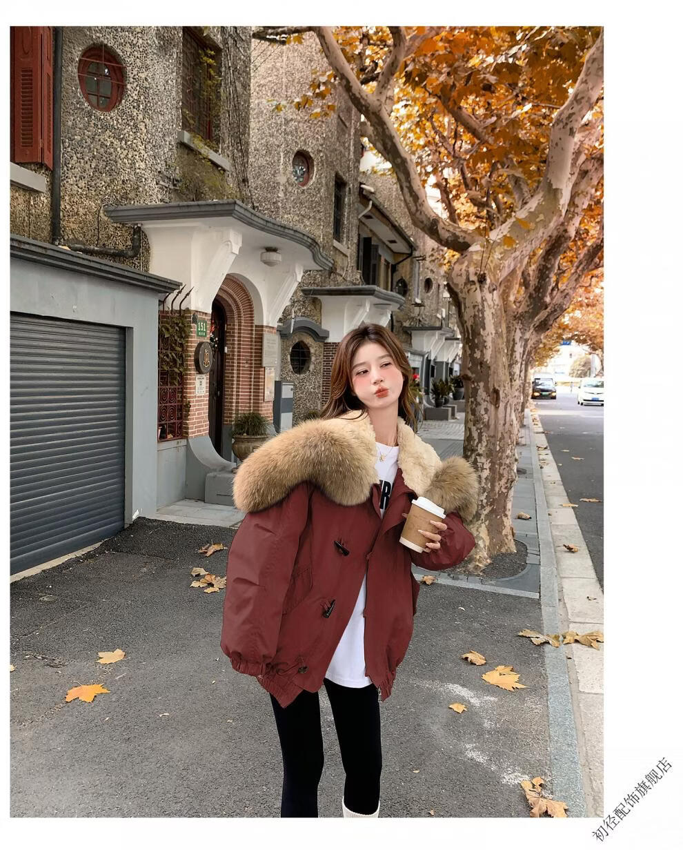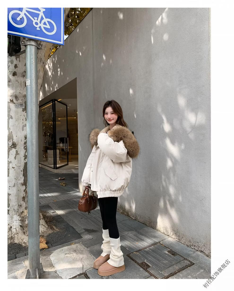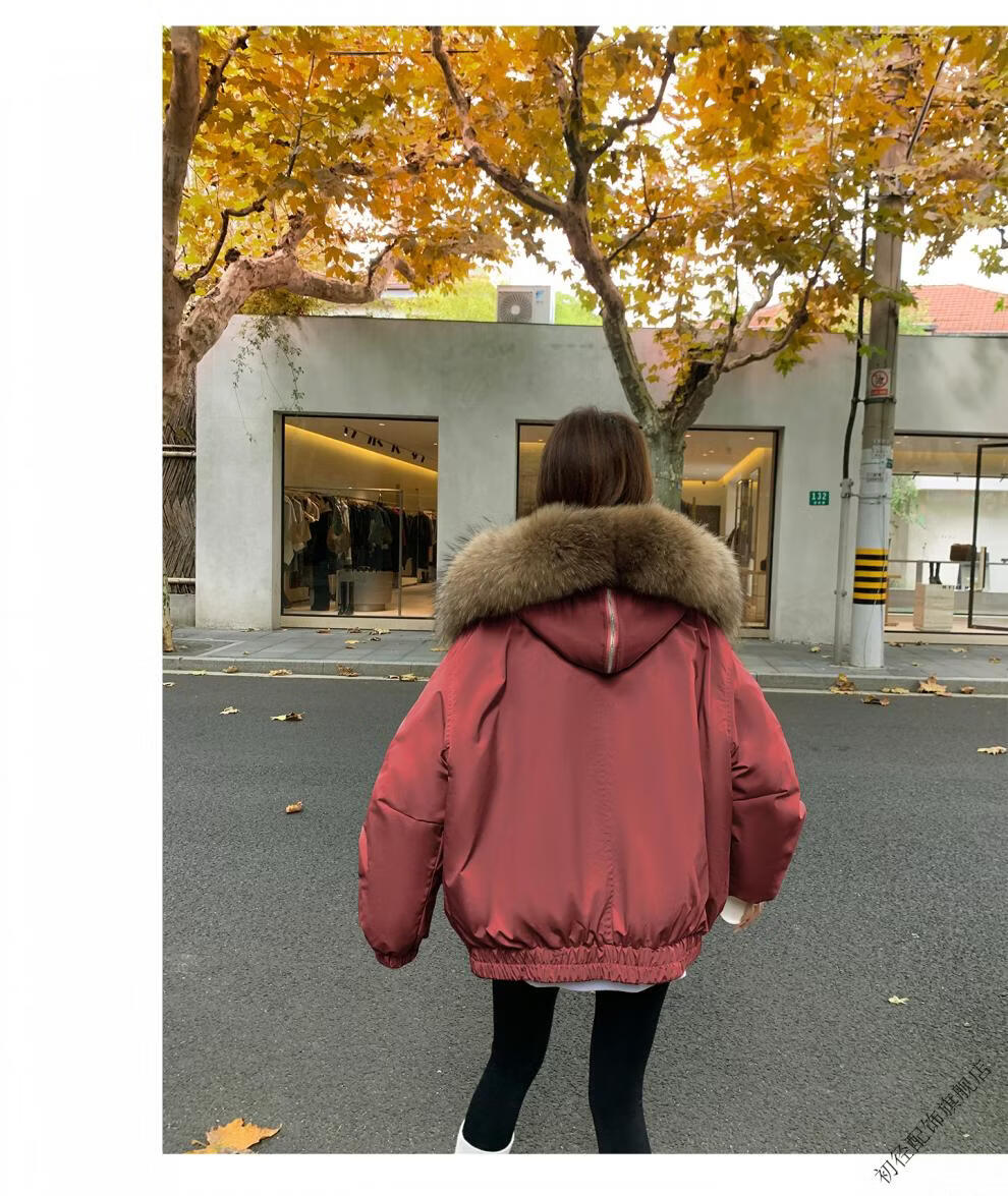 Chujing's new high-quality and good-looking thick winter coat Korean short style parka large fur collar warm down jacket khaki 90 white duck down upgraded model XL recommended within 145 pounds