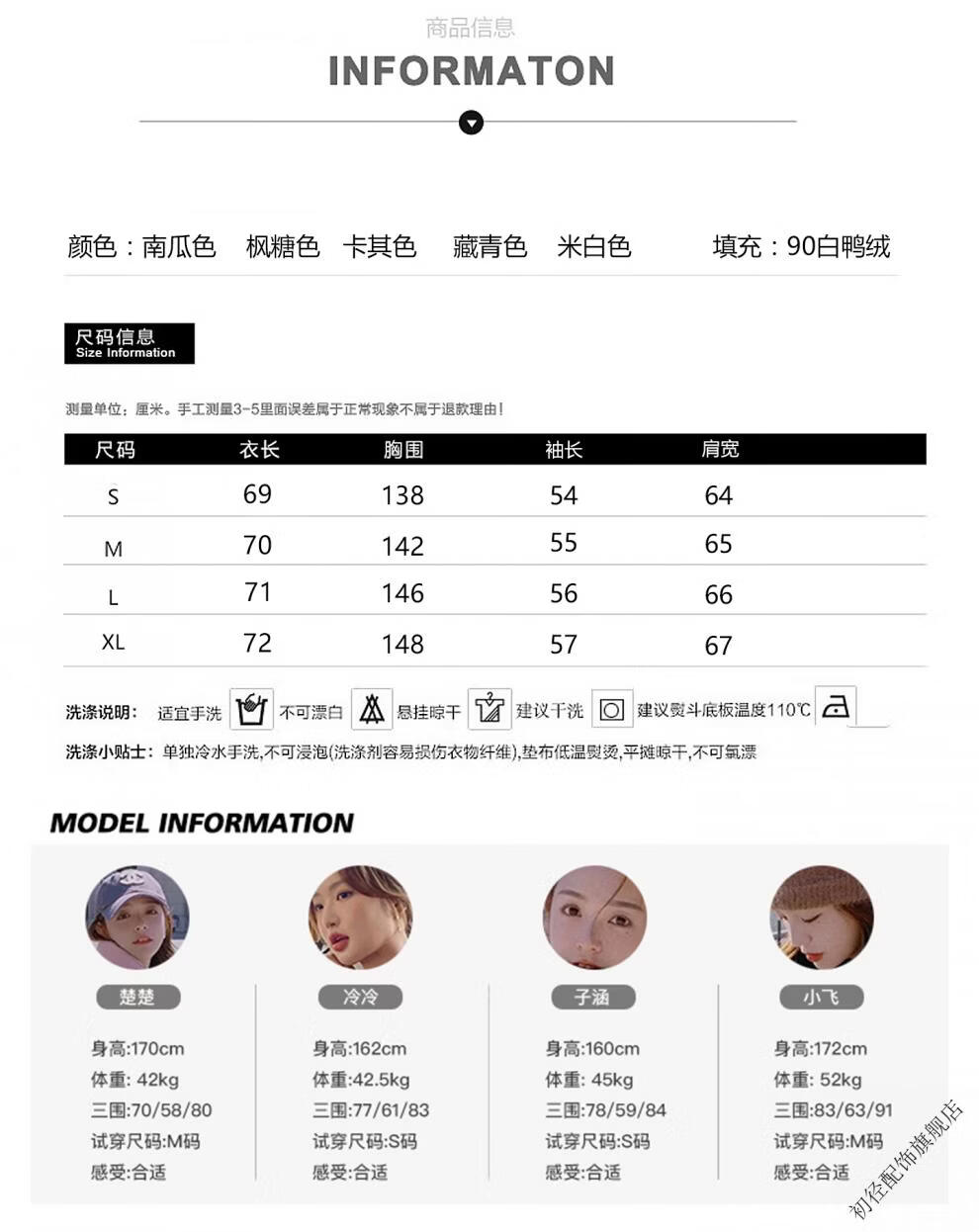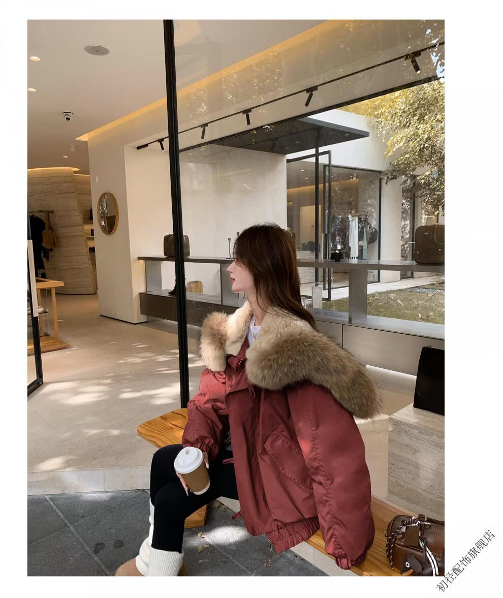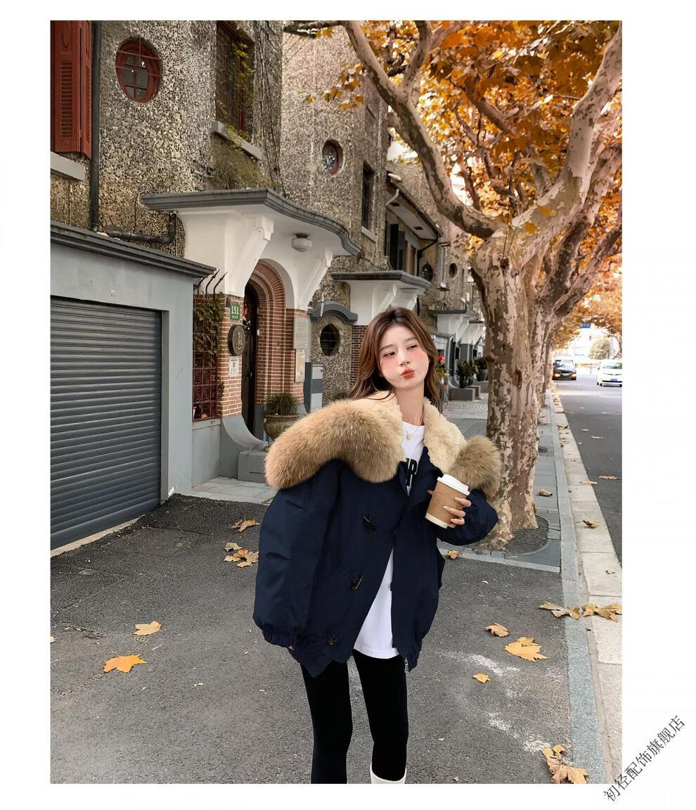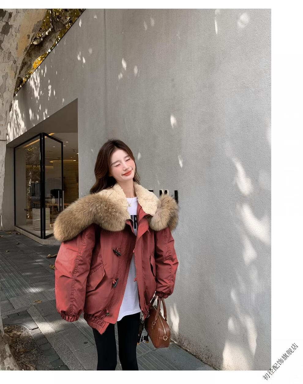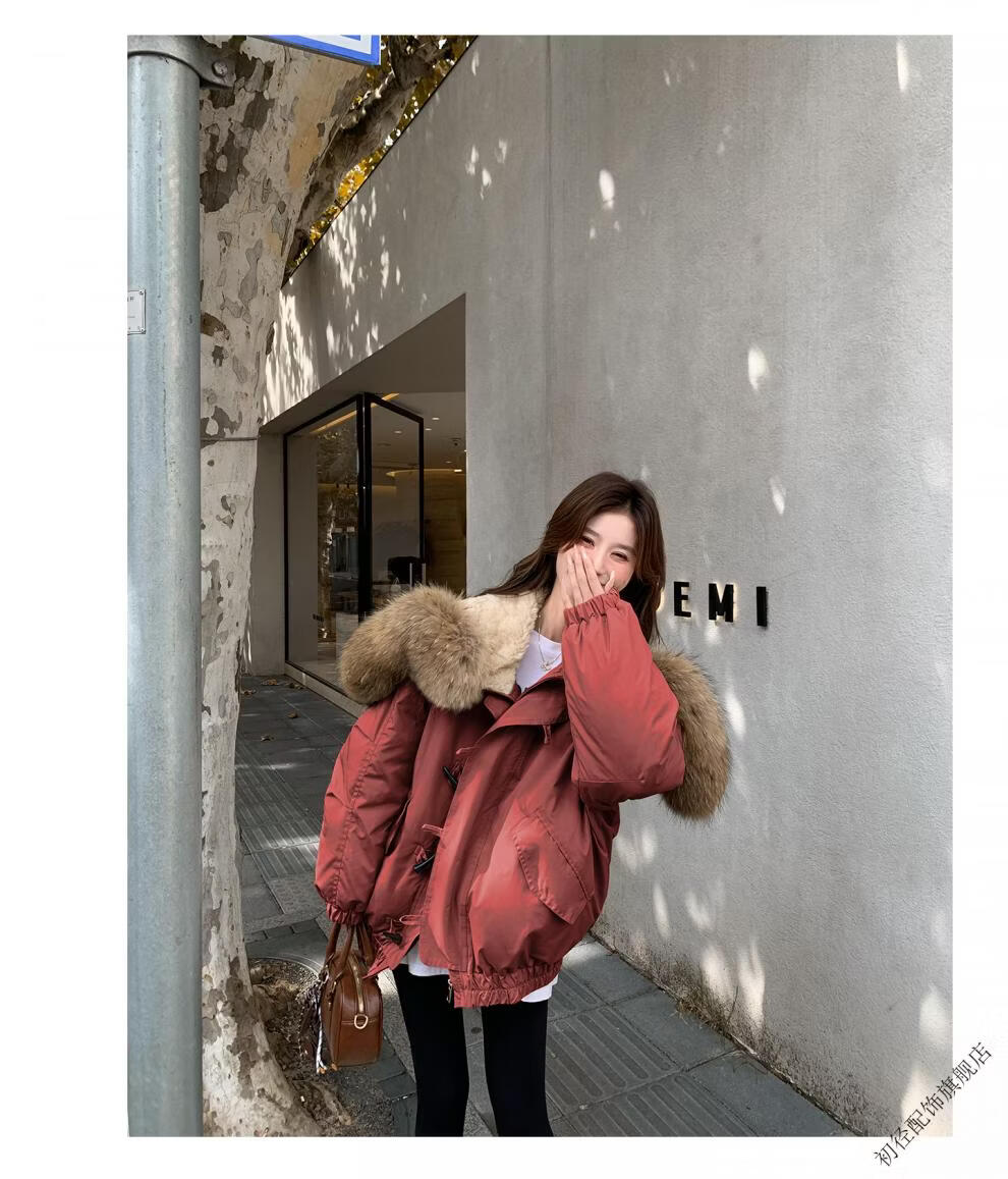 Chujing's new high-quality and good-looking thick winter coat Korean short style parka large fur collar warm down jacket khaki 90 white duck down upgraded model XL recommended within 145 pounds