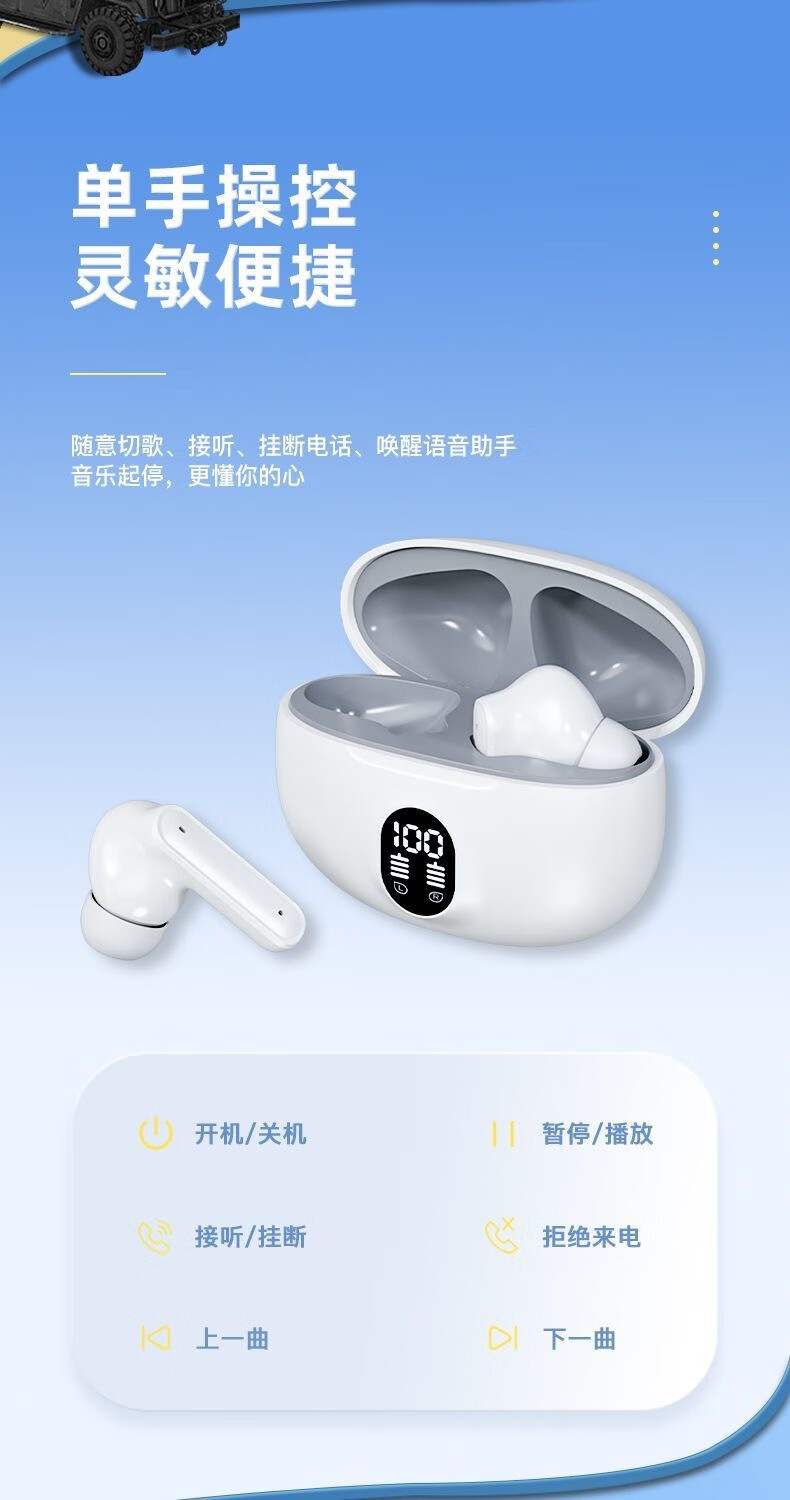 Car 2025 new Bluetooth headset wireless short handle in-ear noise reduction long endurance sports student running warm apricot skin