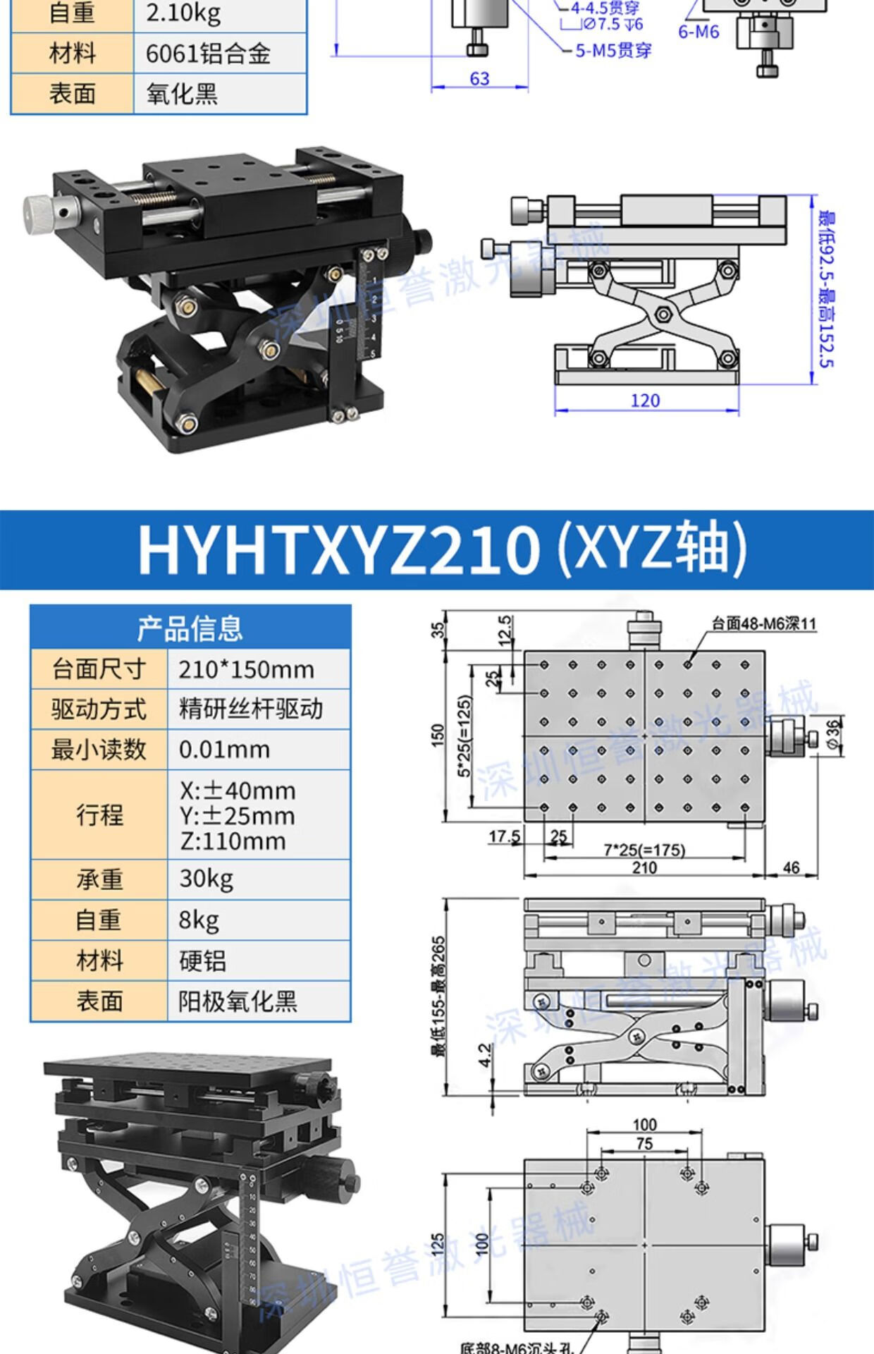 High-precision lifting platform, precision displacement lifting platform, manual Z-axis lifting platform, optical experiment lifting platform, upgraded model HYHTXZ210