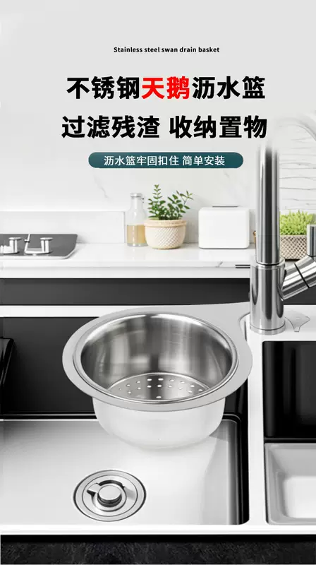 Yusenyi Swan Sink Drain Basket Stainless Steel Kitchen Hanging Drain Rack Dry and Wet Separation Hook Garbage Filter Basket Thickened (Small Size 1 Pack) Stainless Steel Swan Drain Basket
