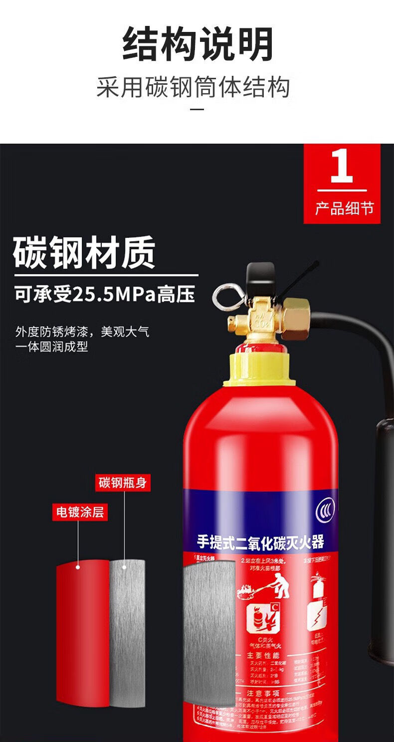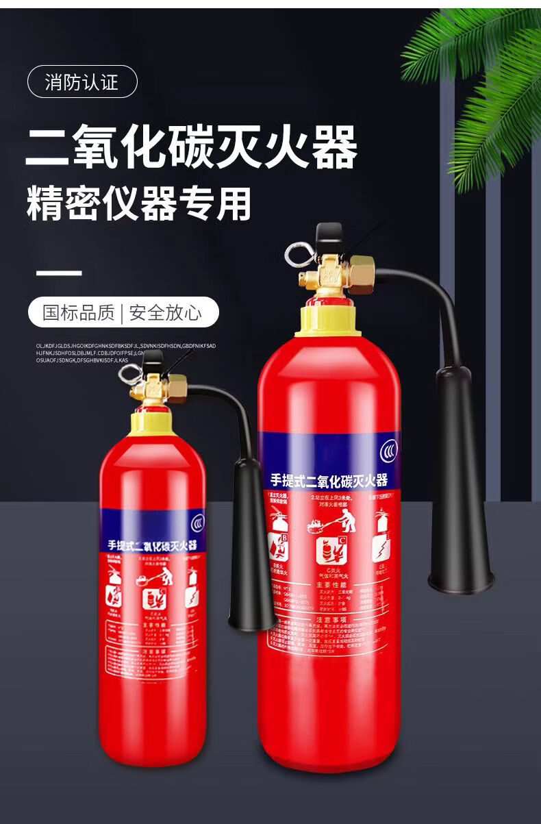 Carbon dioxide fire extinguisher 3/7/5kg two kilograms portable trolley type CO2 dry ice gas machine room factory-specific upgrade 2kg carbon dioxide fire extinguisher*2+fire extinguisher box (24-year national standard)