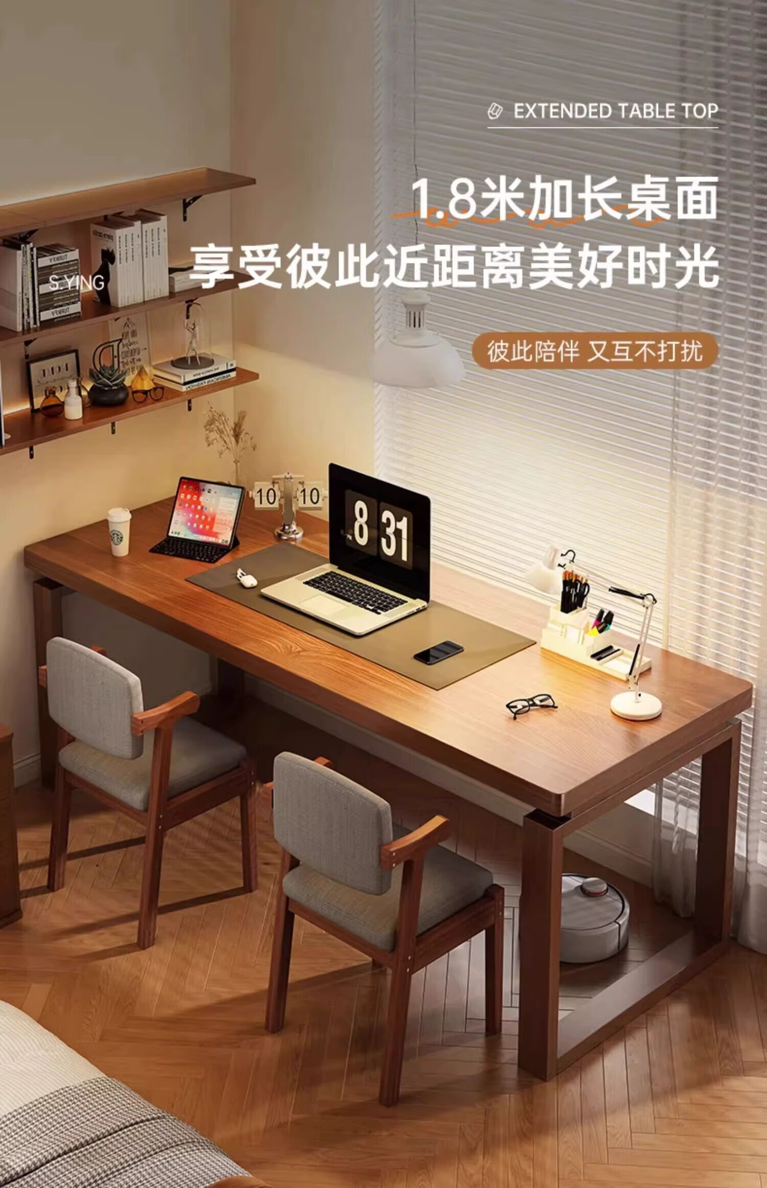 Large table to the living room double desk home solid wood leg long table computer desk study writing desk dark walnut color 180*60cm|rubber wood legs