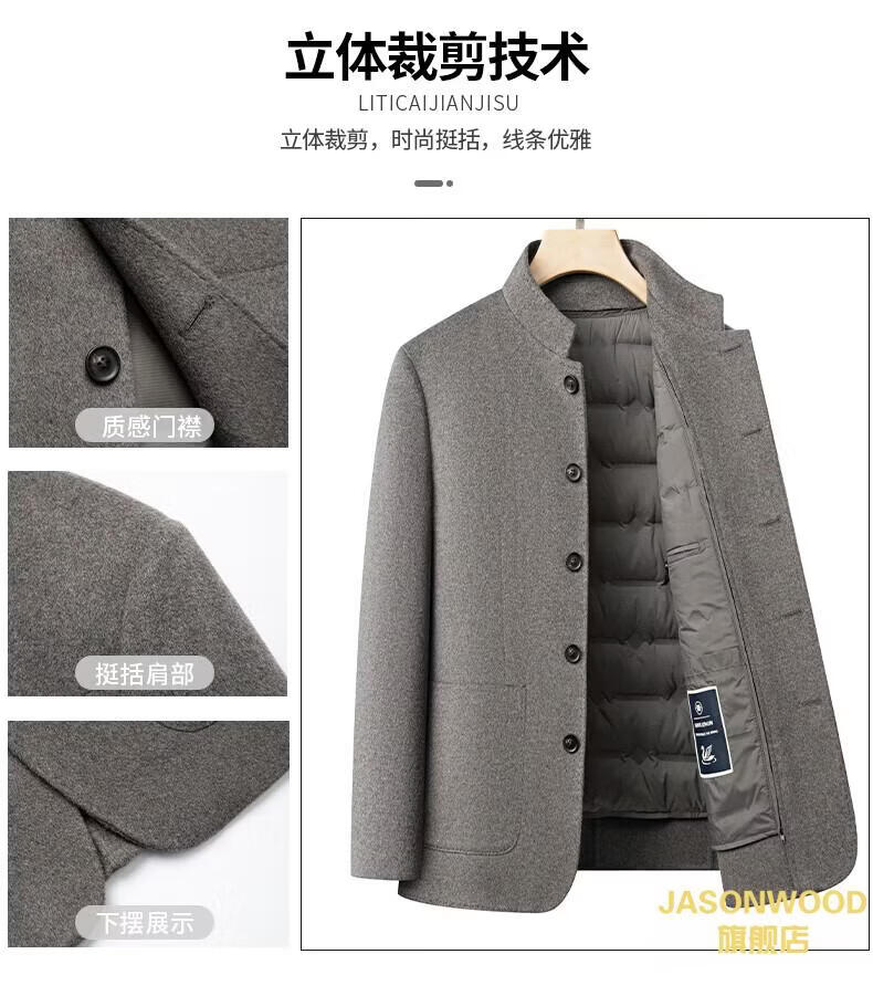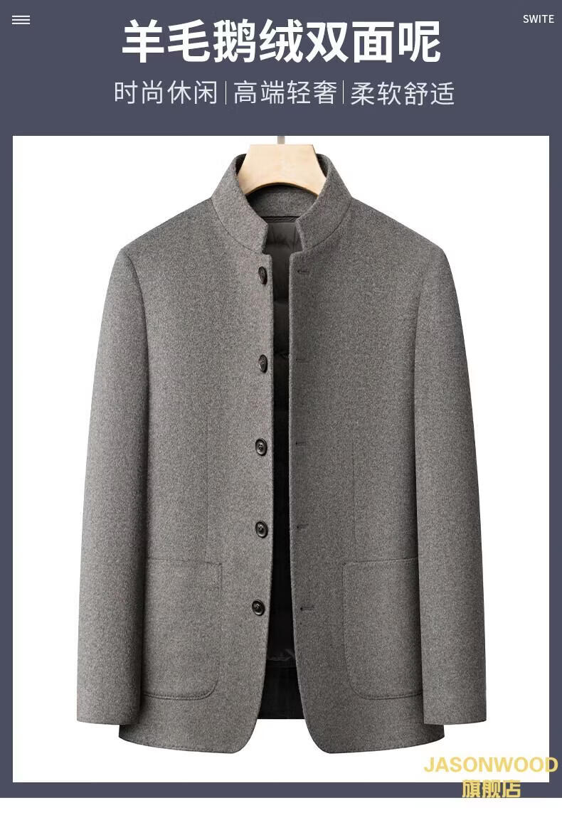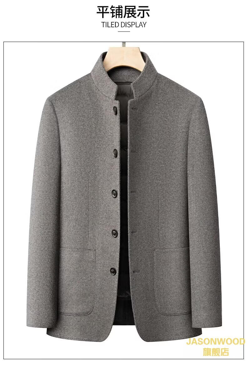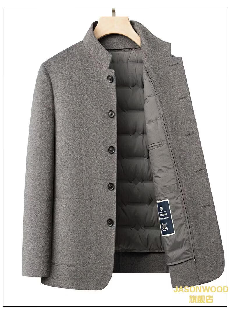 JASONWOOD luxury high-end brand woolen jacket tunic autumn and winter goose down lining stand-up collar double-sided woolen men's jacket high-end coffee color ready stock thickened autumn and winter M recommended 110-130 pounds