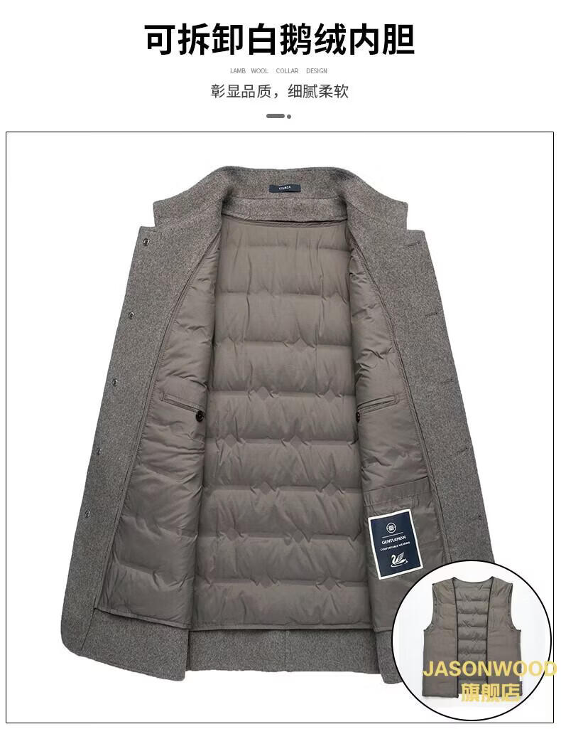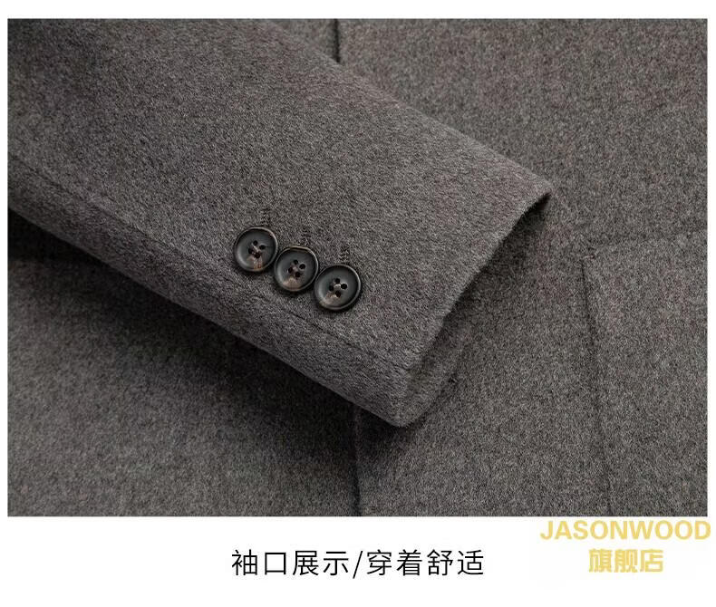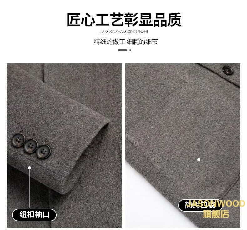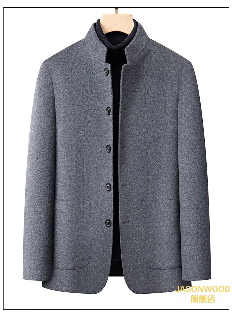 JASONWOOD luxury high-end brand woolen jacket tunic autumn and winter goose down lining stand-up collar double-sided woolen men's jacket high-end coffee color ready stock thickened autumn and winter M recommended 110-130 pounds