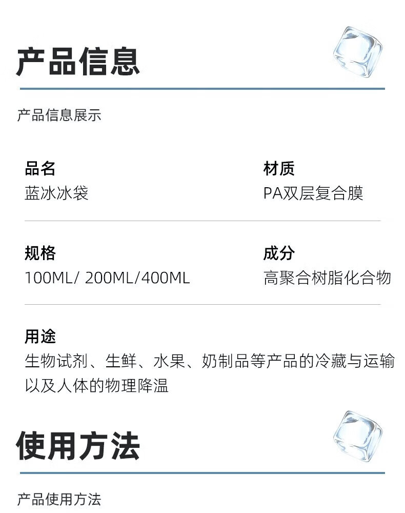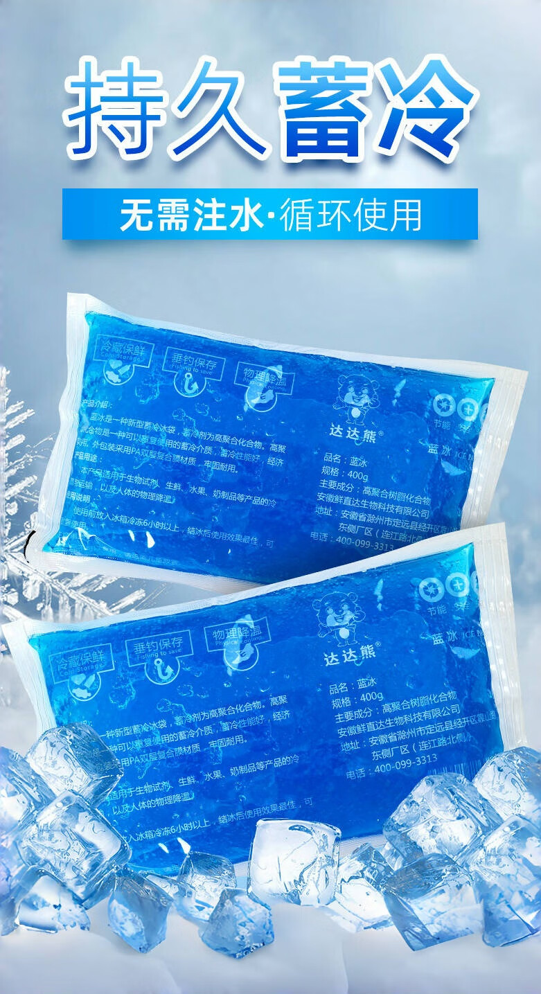 Dada Bear Blue Ice Biological Ice Bag No need to add water to refrigerate fruit, fresh food, fresh cold compress, express camping outdoor wholesale 100ML 50 bags