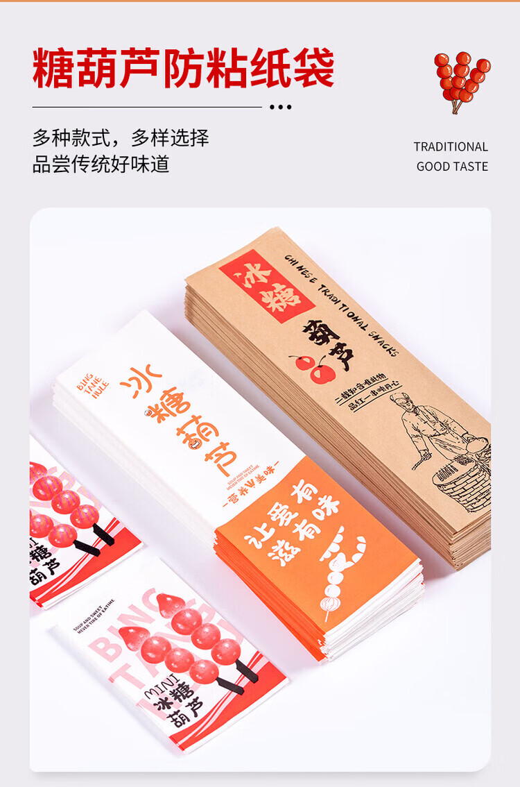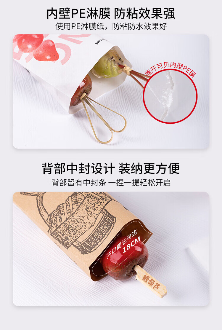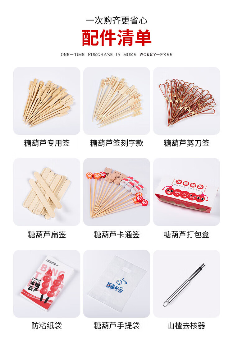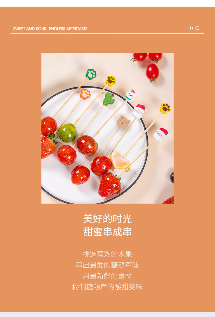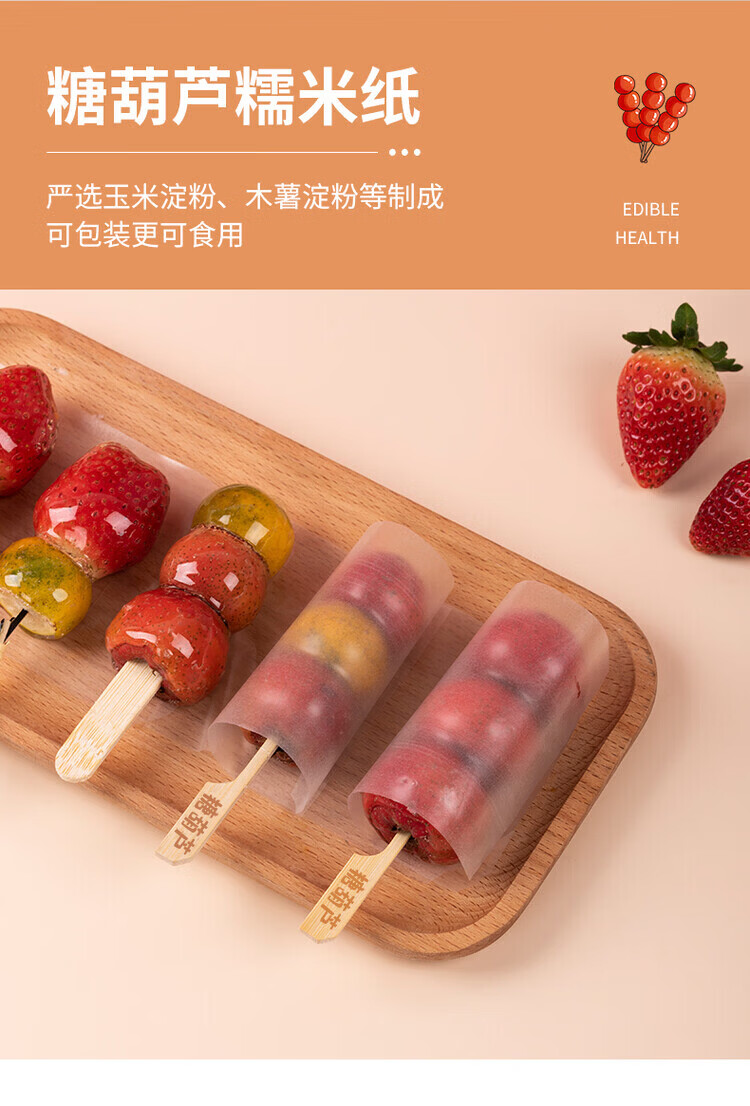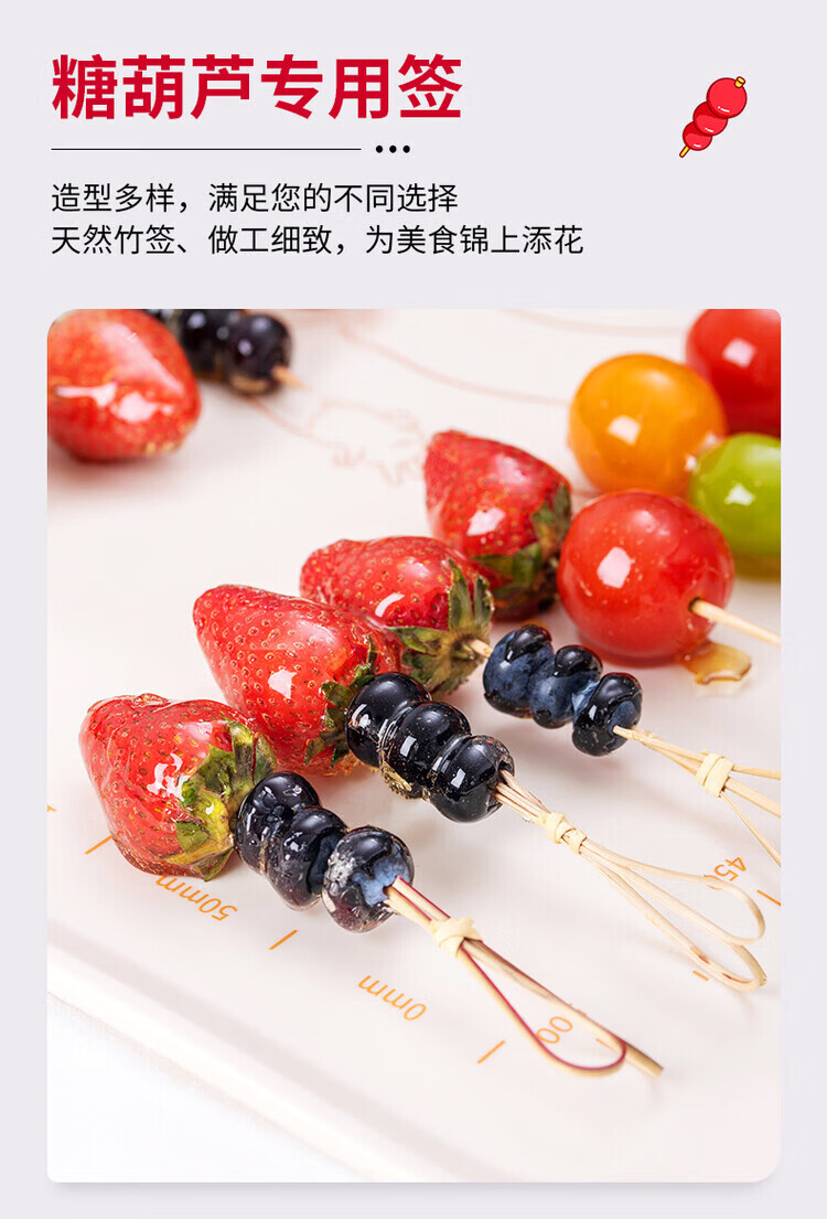 Aigechen candied haws making material complete set of candied haws bamboo skewers glutinous rice paper packaging bag special fruit skewers random packaging box - 100 pieces
