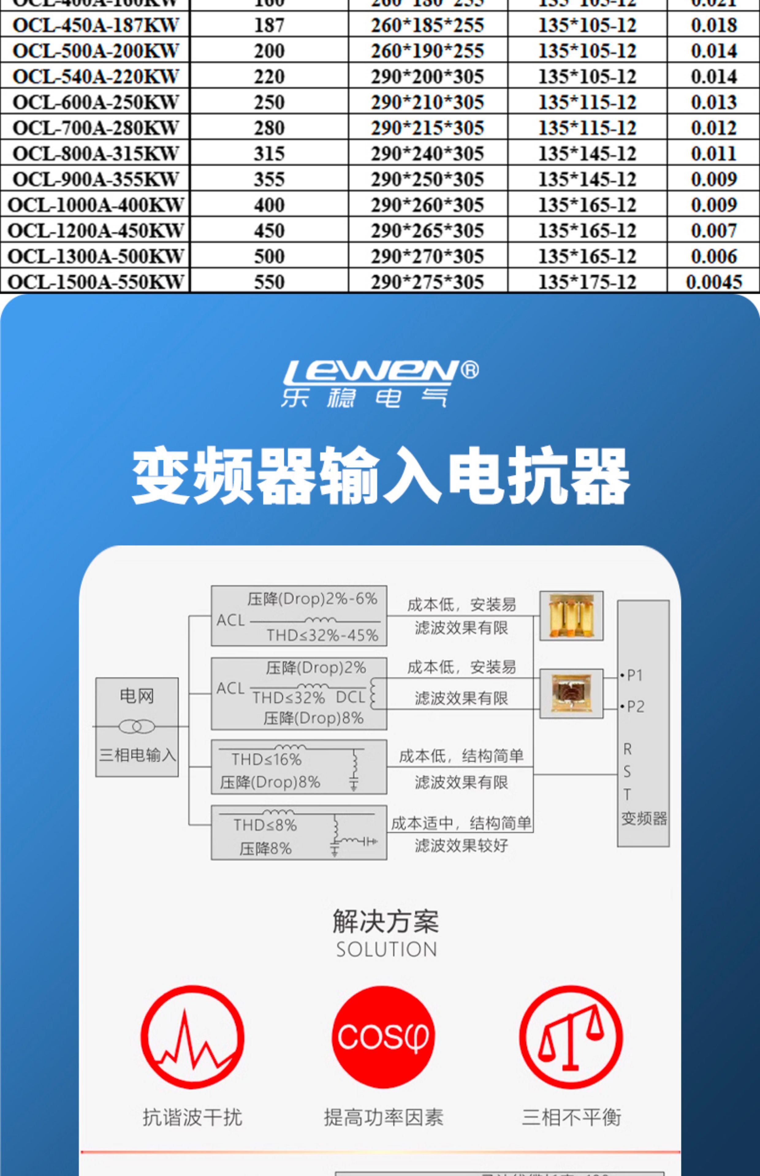 Three-phase ACL input incoming line reactor OCL output outgoing line reactor dedicated for inverter 1.5KVA-400KW upgraded version ACL-20A-7.5KW