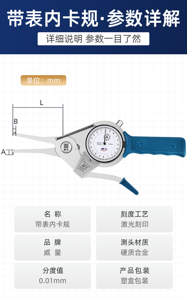 Powerful power high precision 0.01 with meter inner caliper outer caliper inner and outer diameter thickness measuring instrument with meter caliper thickness gauge with meter outer caliper 120-140 95