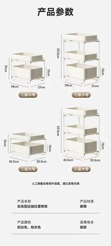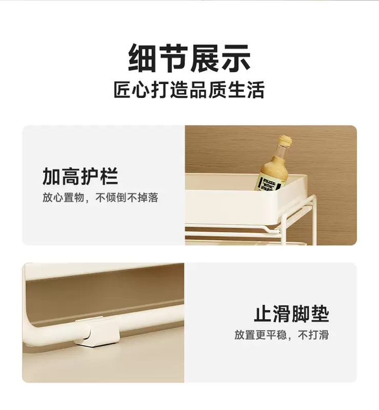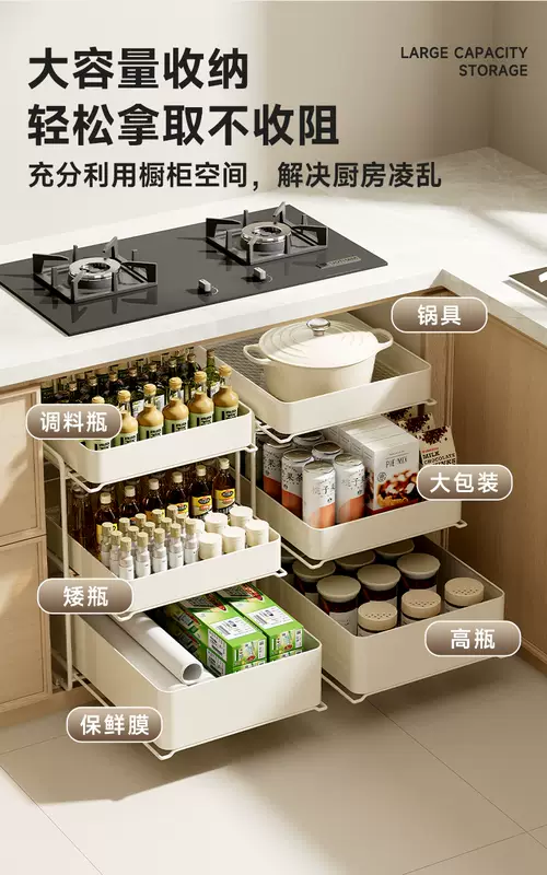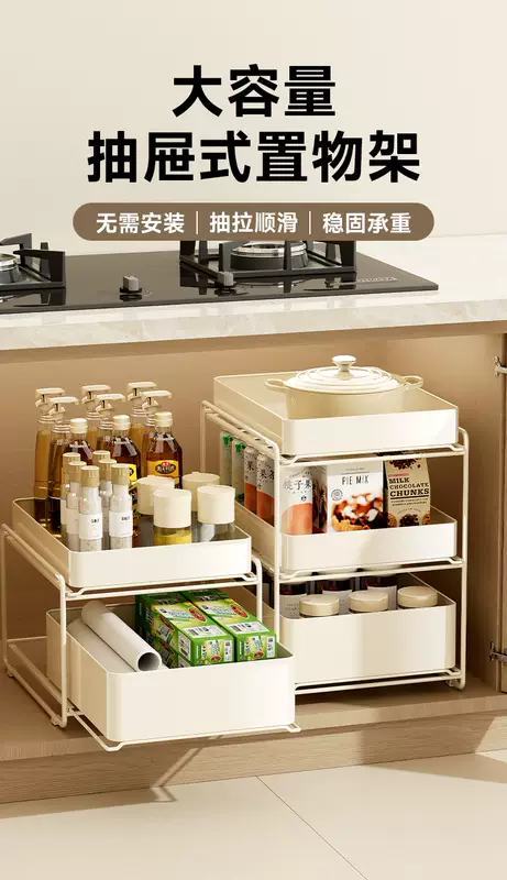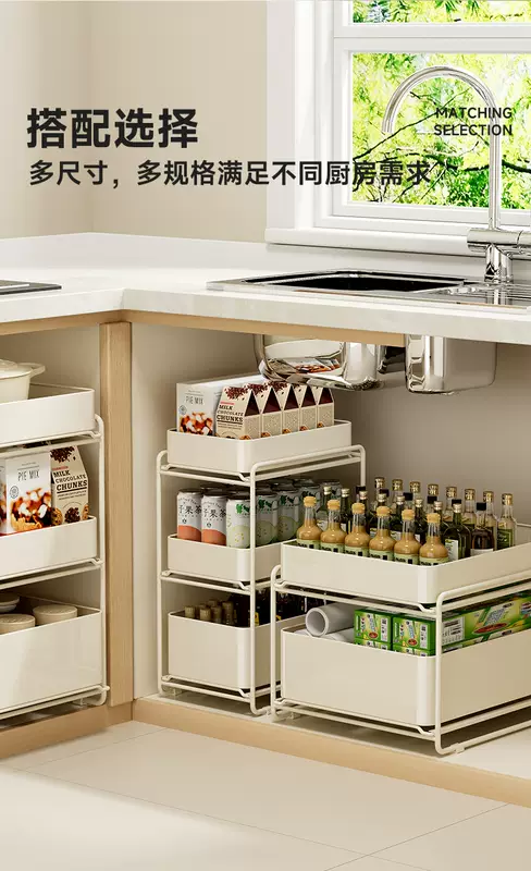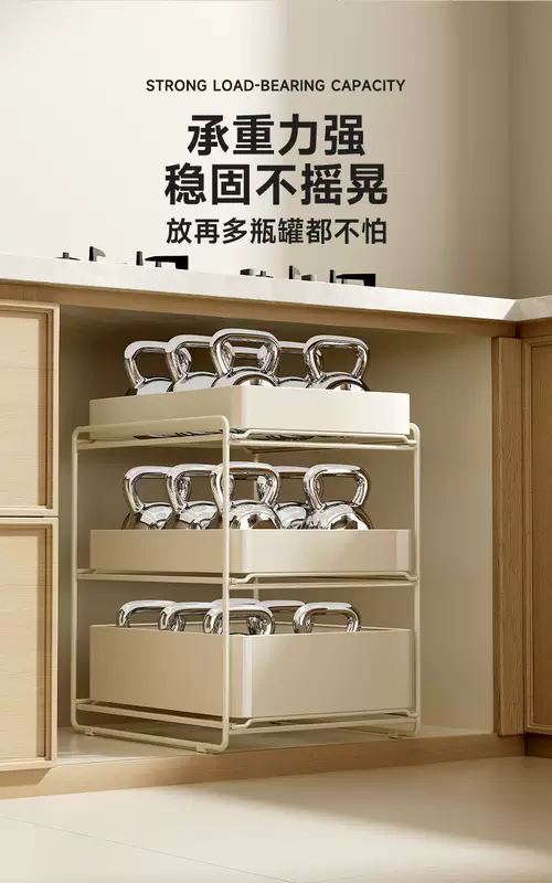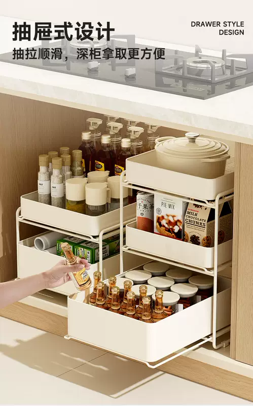 Yusenyi kitchen sink storage rack pool multi-functional seasoning storage shelf pots and pans integrated cabinet pull-out basket milk white large 3-layer (no need to install drawer type)