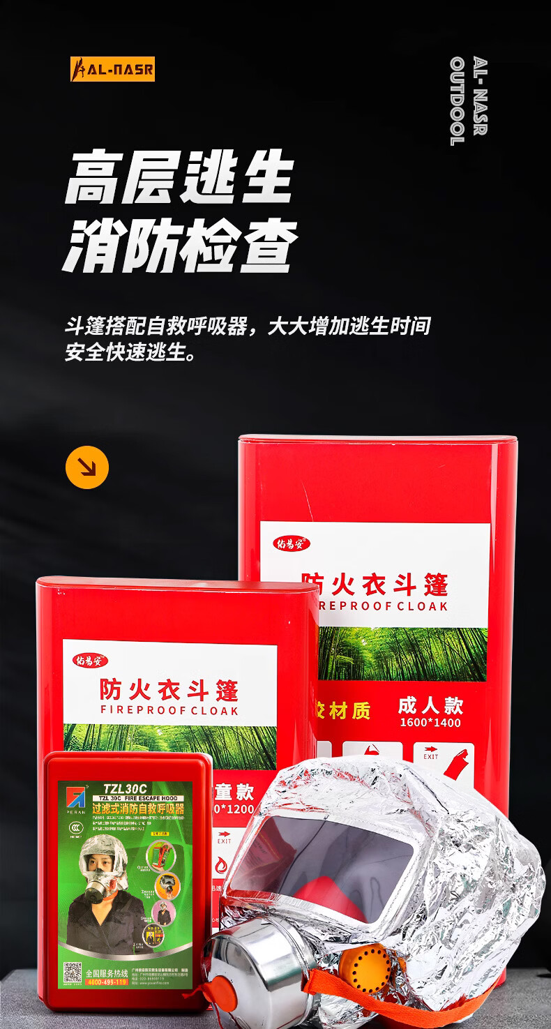 Fireproof clothing, insulated fireproof cloak, household fire high-rise escape fire blanket, cloak, smoke mask, respirator upgrade, children's fireproof cloak 1 upgraded version