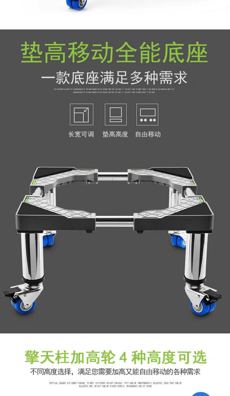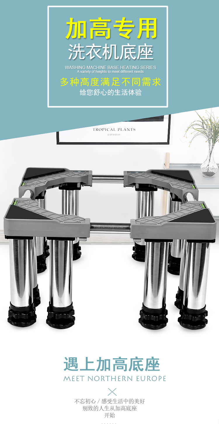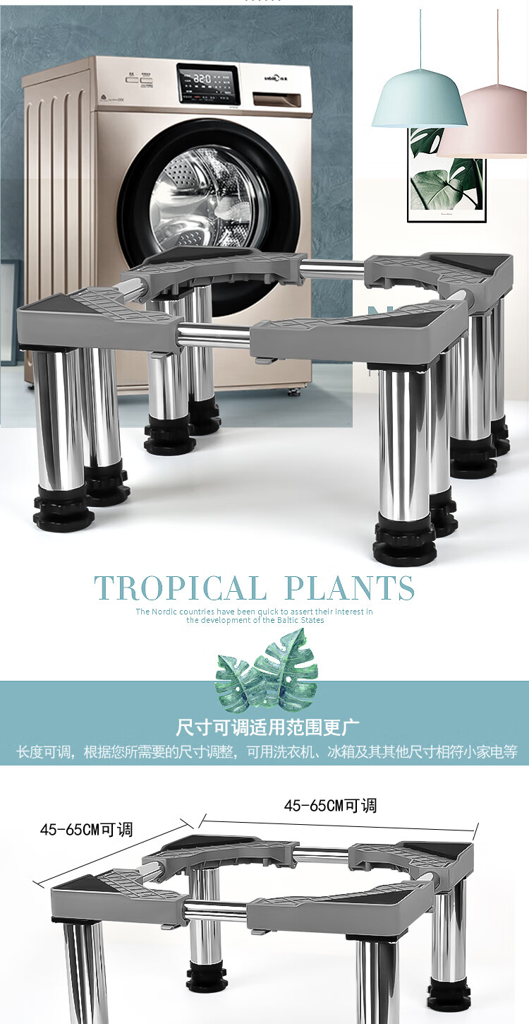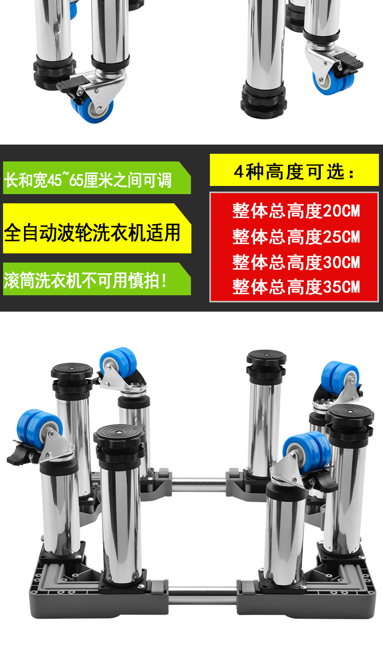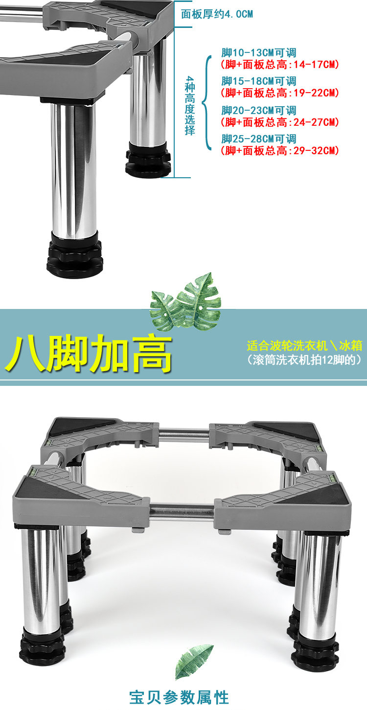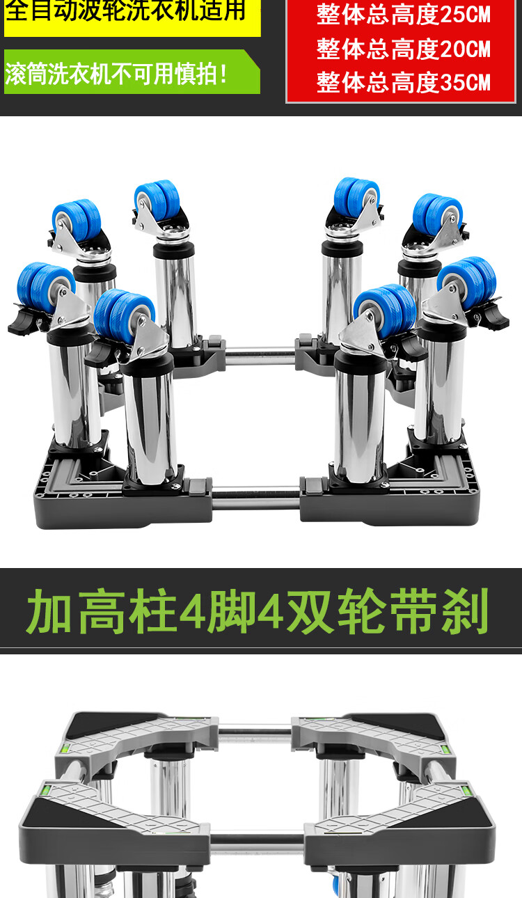 Washing machine base stainless steel heightened mobile tripod automatic drum adjustable bracket refrigerator ice machine bracket heightened 4 feet 4 double wheels total height 20cm gray 25 round tube L9+G