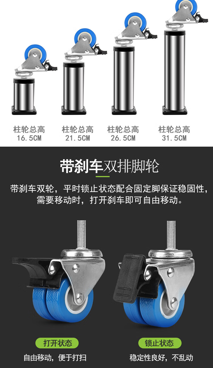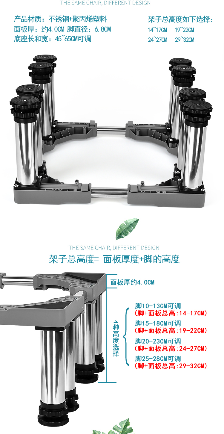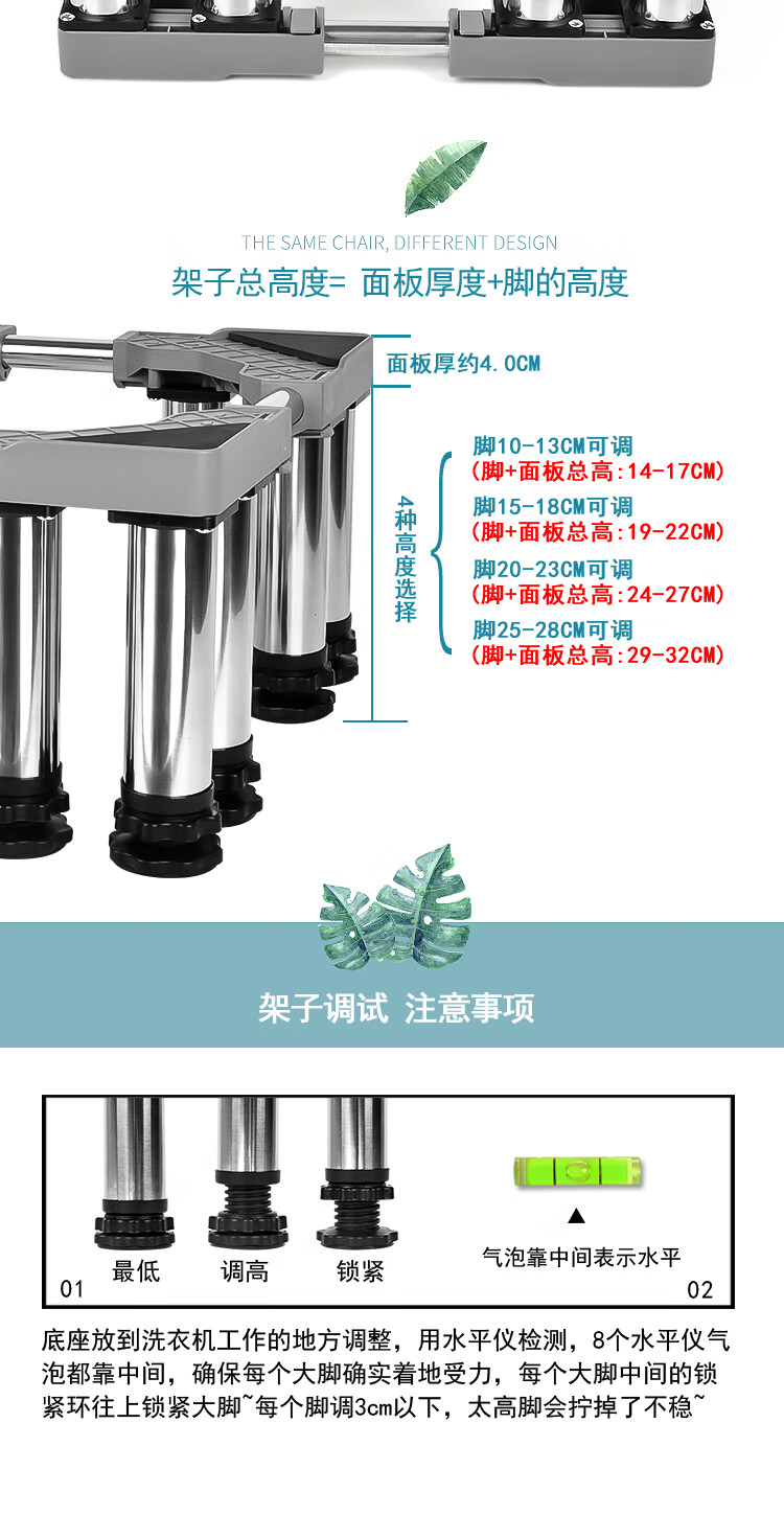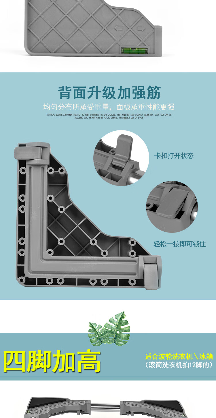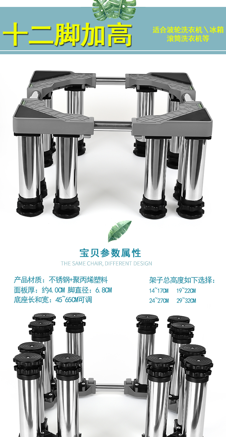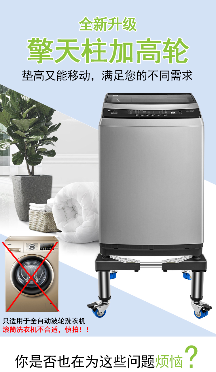 Washing machine base stainless steel heightened mobile tripod automatic drum adjustable bracket refrigerator ice machine bracket heightened 4 feet 4 double wheels total height 20cm gray 25 round tube L9+G