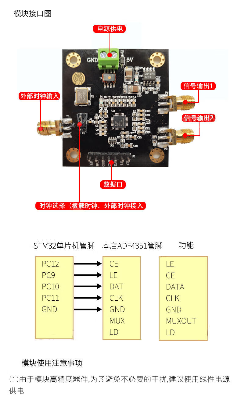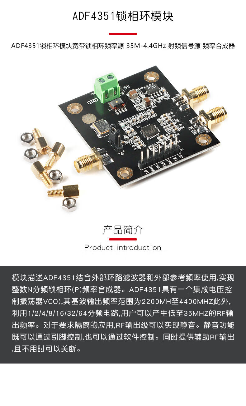 ADF4351 phase locked loop module broadband phase locked loop frequency source 35M-4.4GHz RF signal source