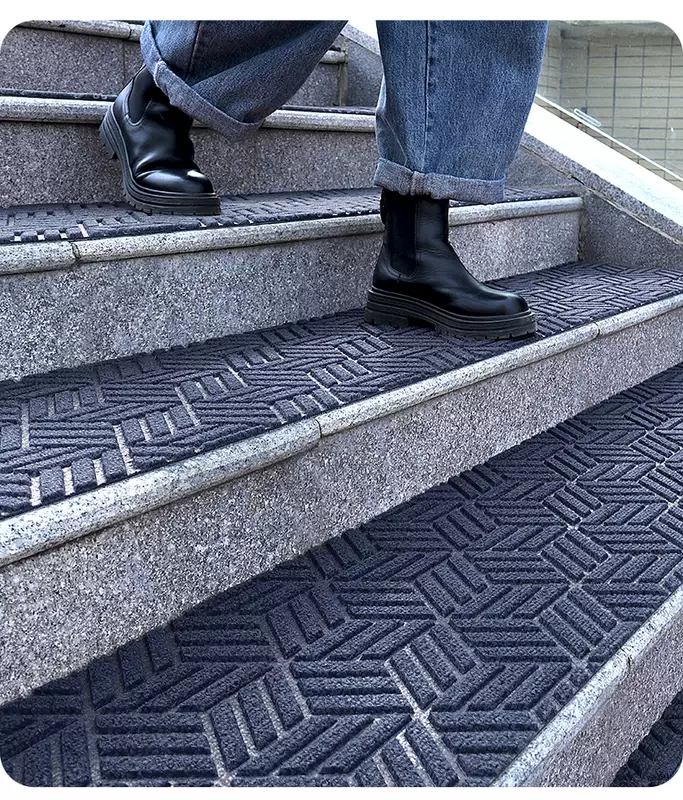 Yusenyi Marble Entry Door Anti-slip Mat Outdoor Customized Long Step Mat Commercial Step Stairs Outdoor Feet Double Stripe Gray 28x150cm (Outdoor Step Carpet)
