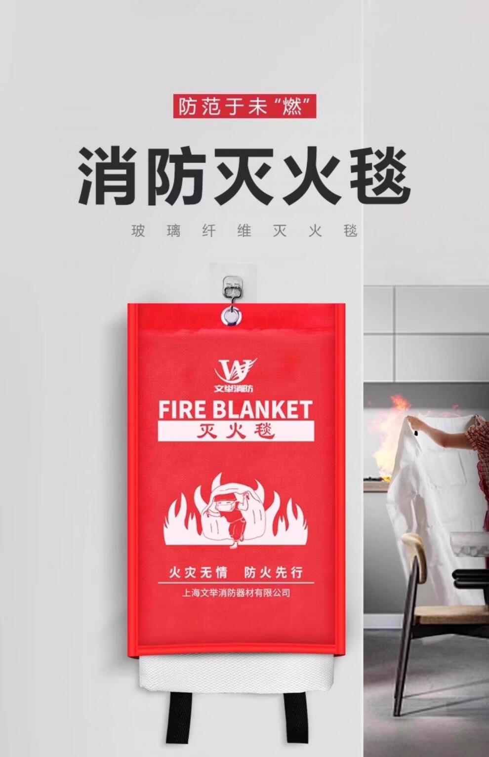 Fire blanket fire certification household general commercial national standard catering kitchen escape whole body nano glass fiber 1.0*1.0 meter fire blanket