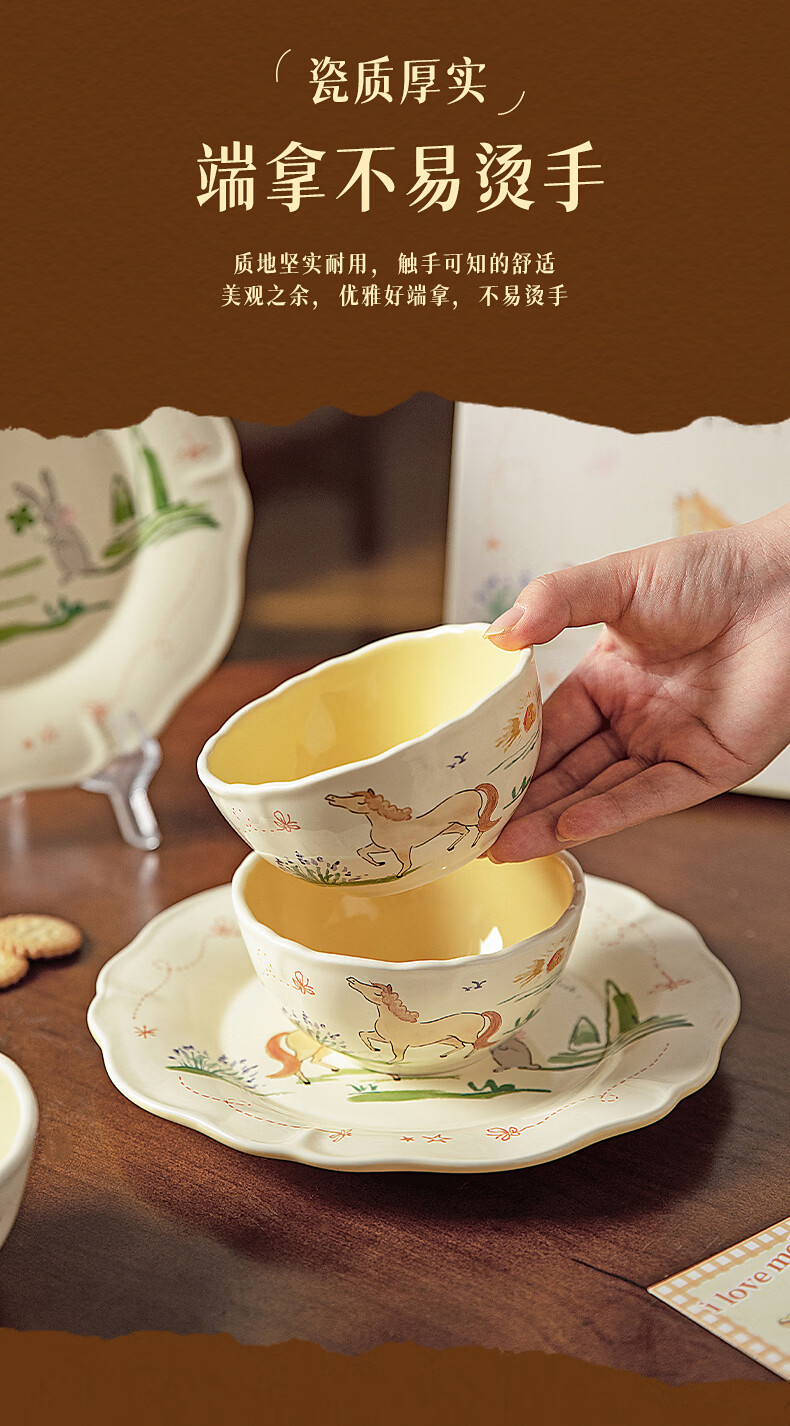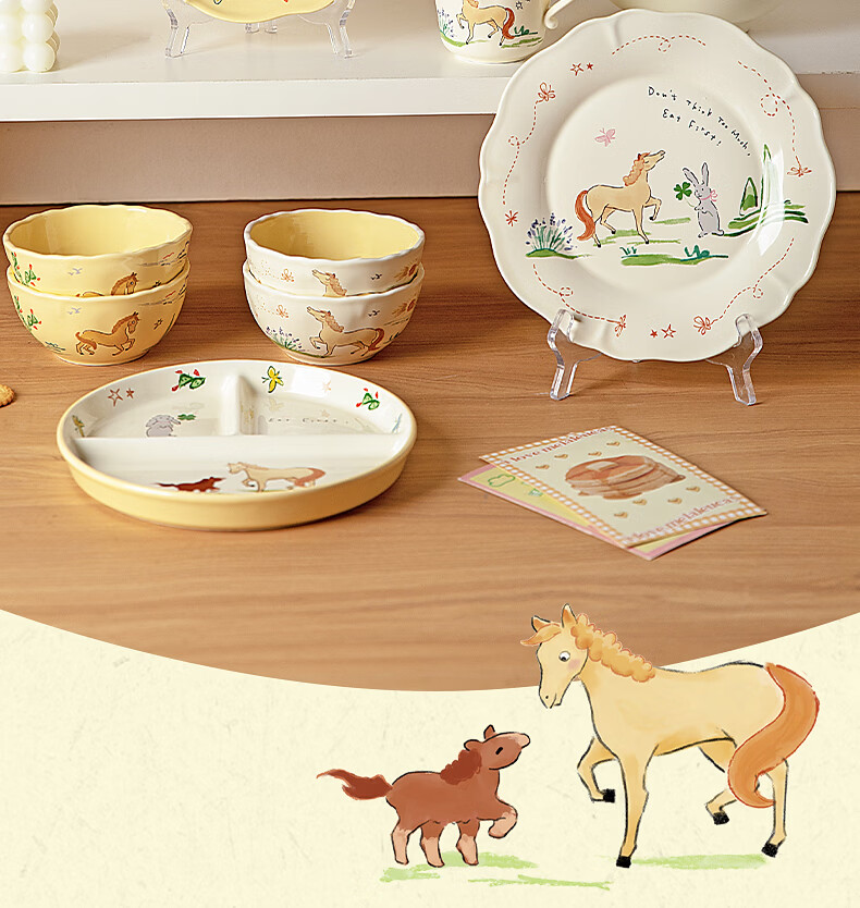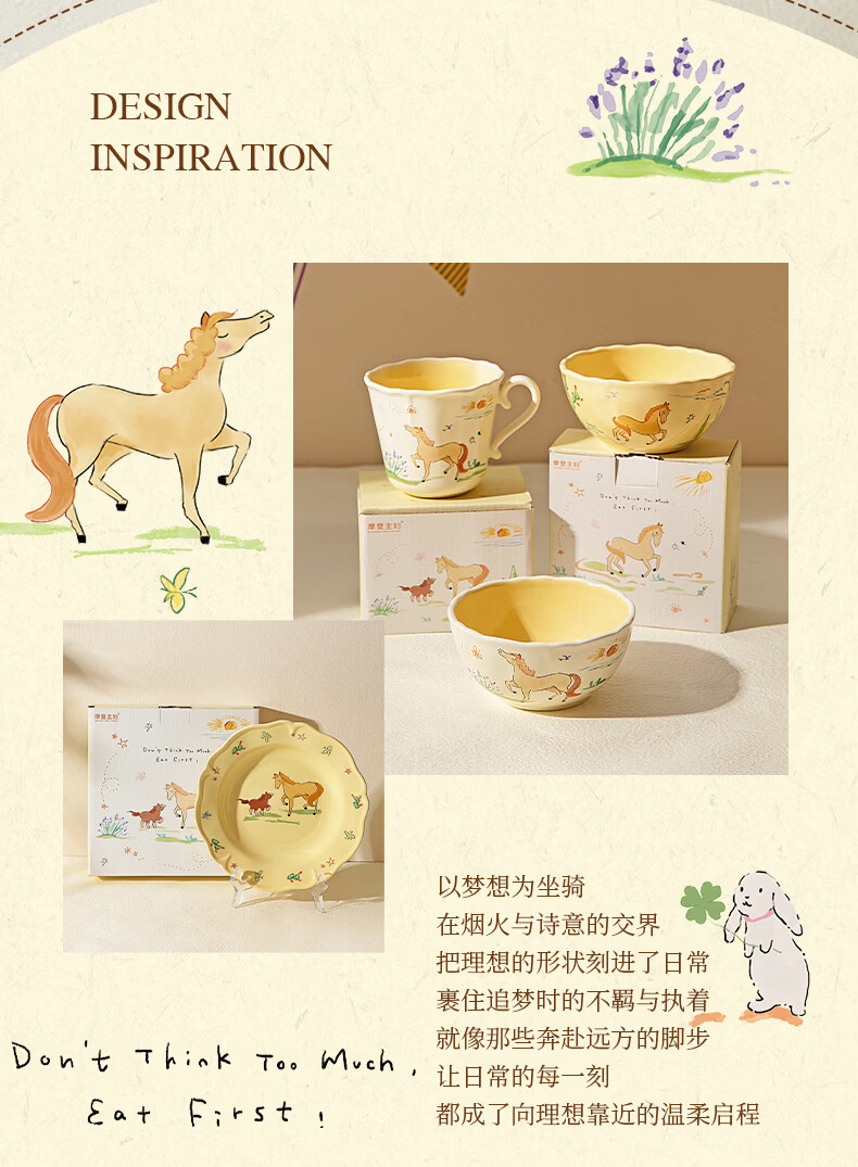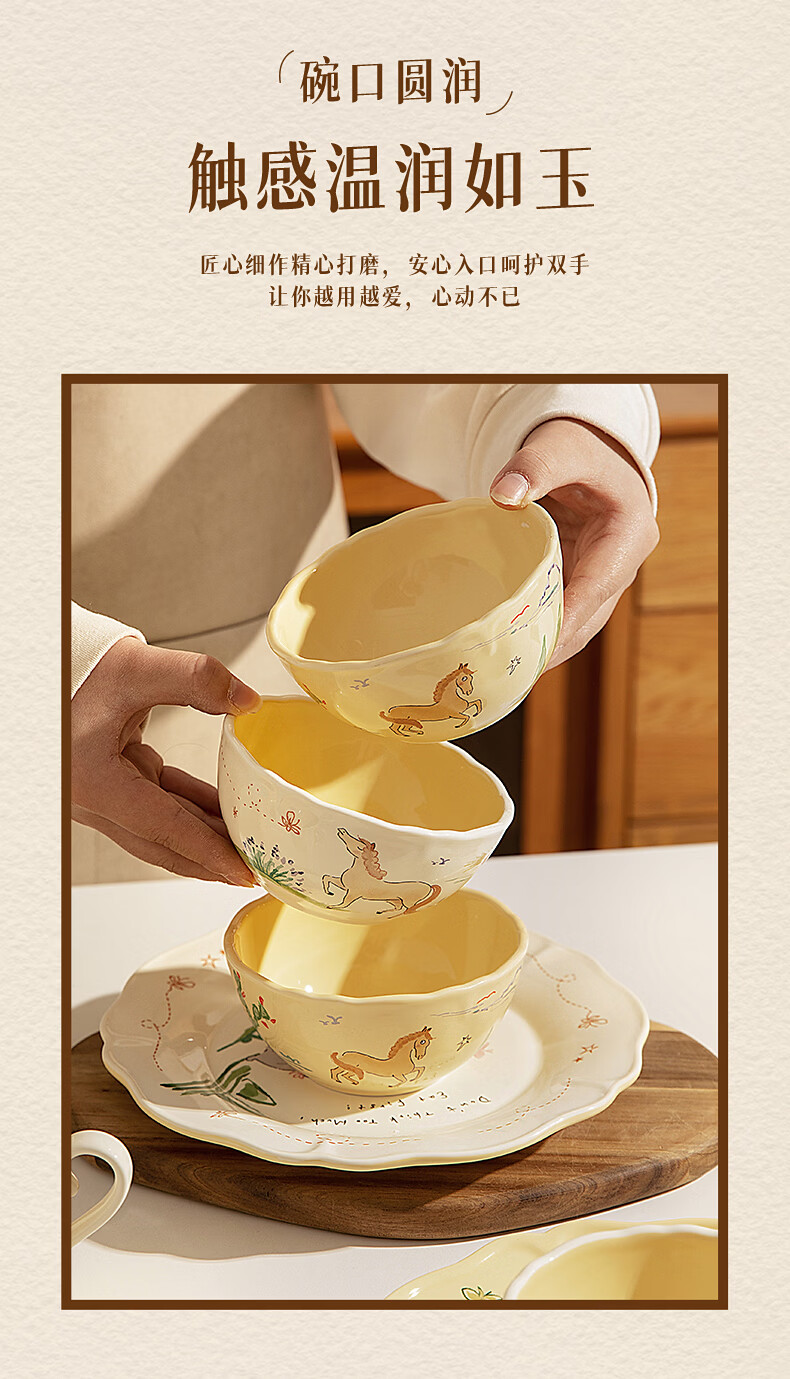 Modern housewife Year of the Horse New Year tableware bowls and plates for home use 2026 new high-looking bowls housewarming birthday gift Dream for Horse 4.6-inch rice bowl-Secret Pony