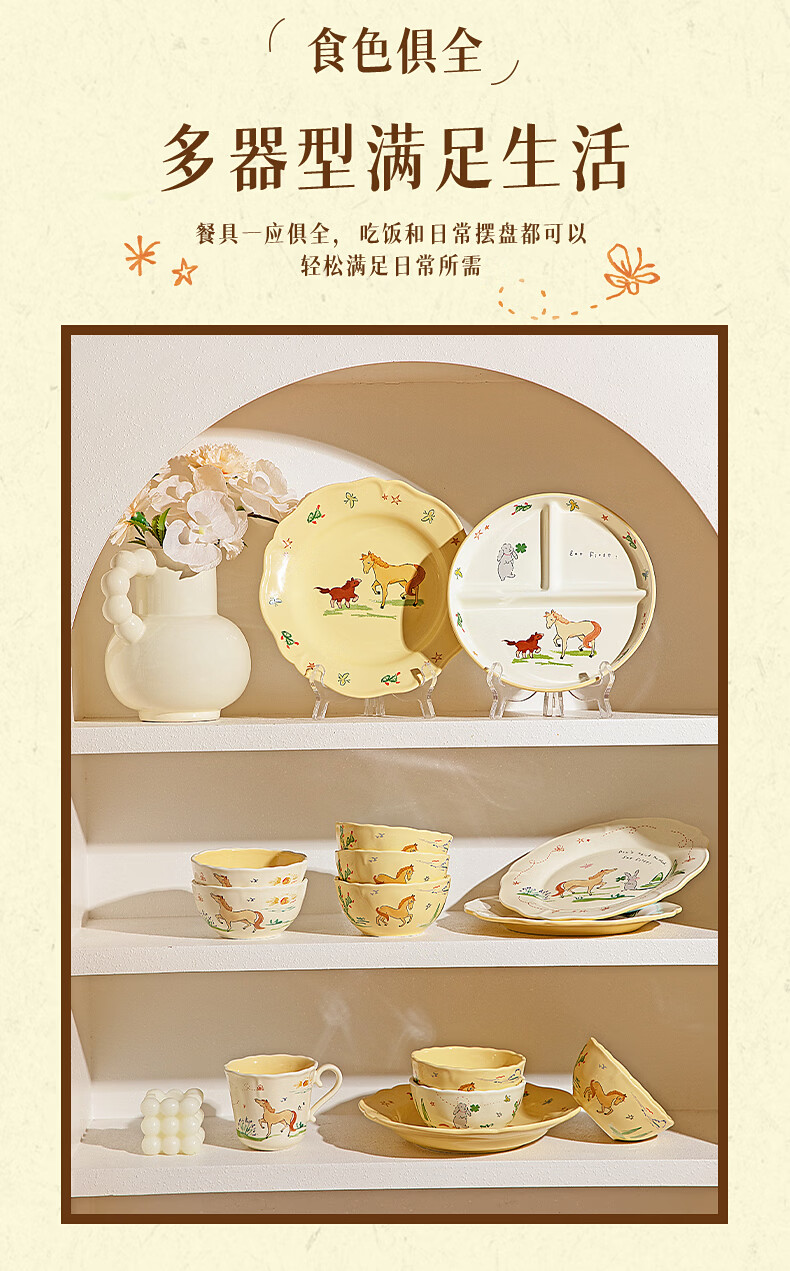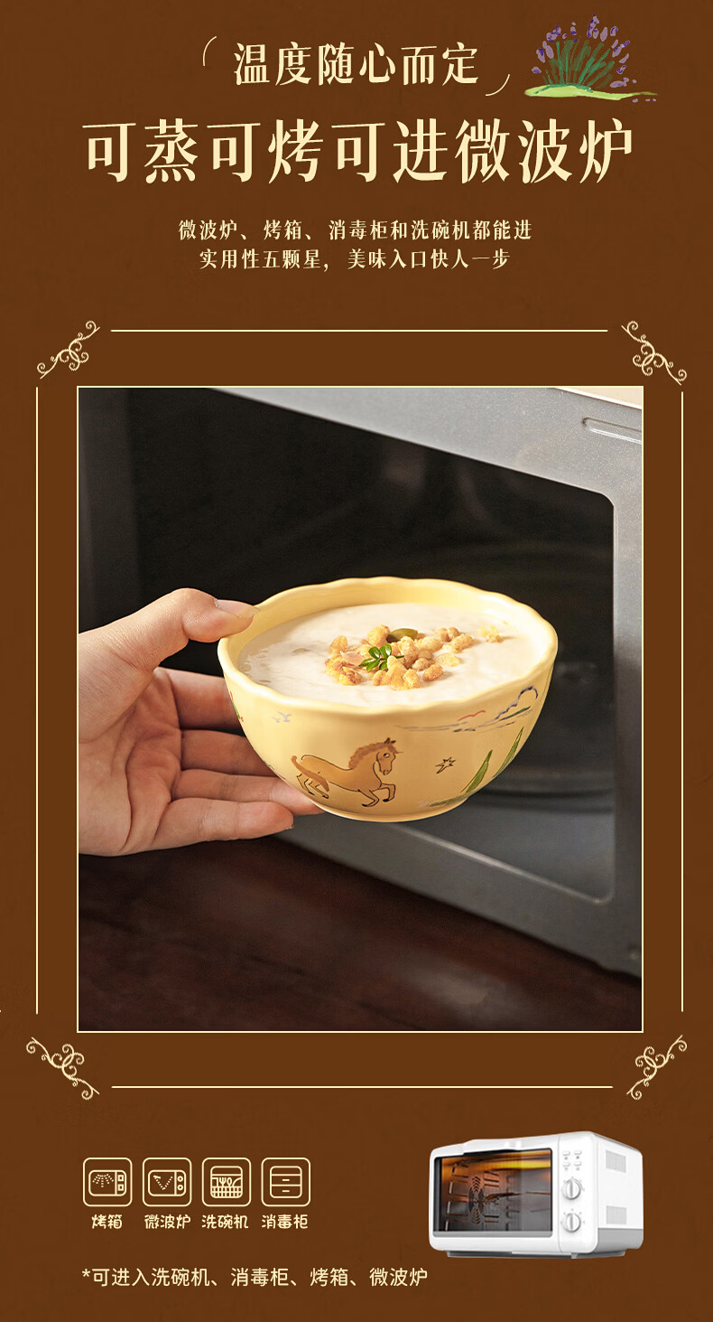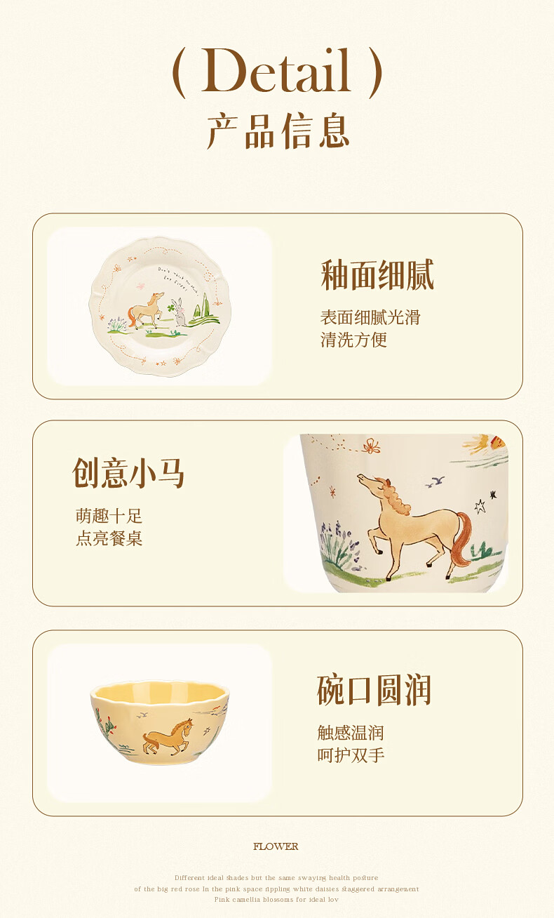Modern housewife Year of the Horse New Year tableware bowls and plates for home use 2026 new high-looking bowls housewarming birthday gift Dream for Horse 4.6-inch rice bowl-Secret Pony