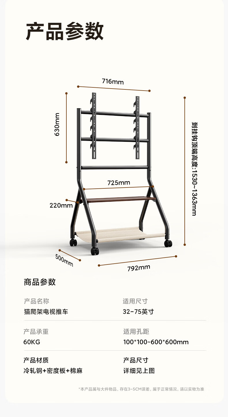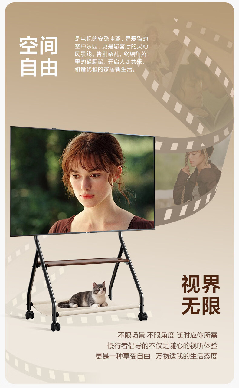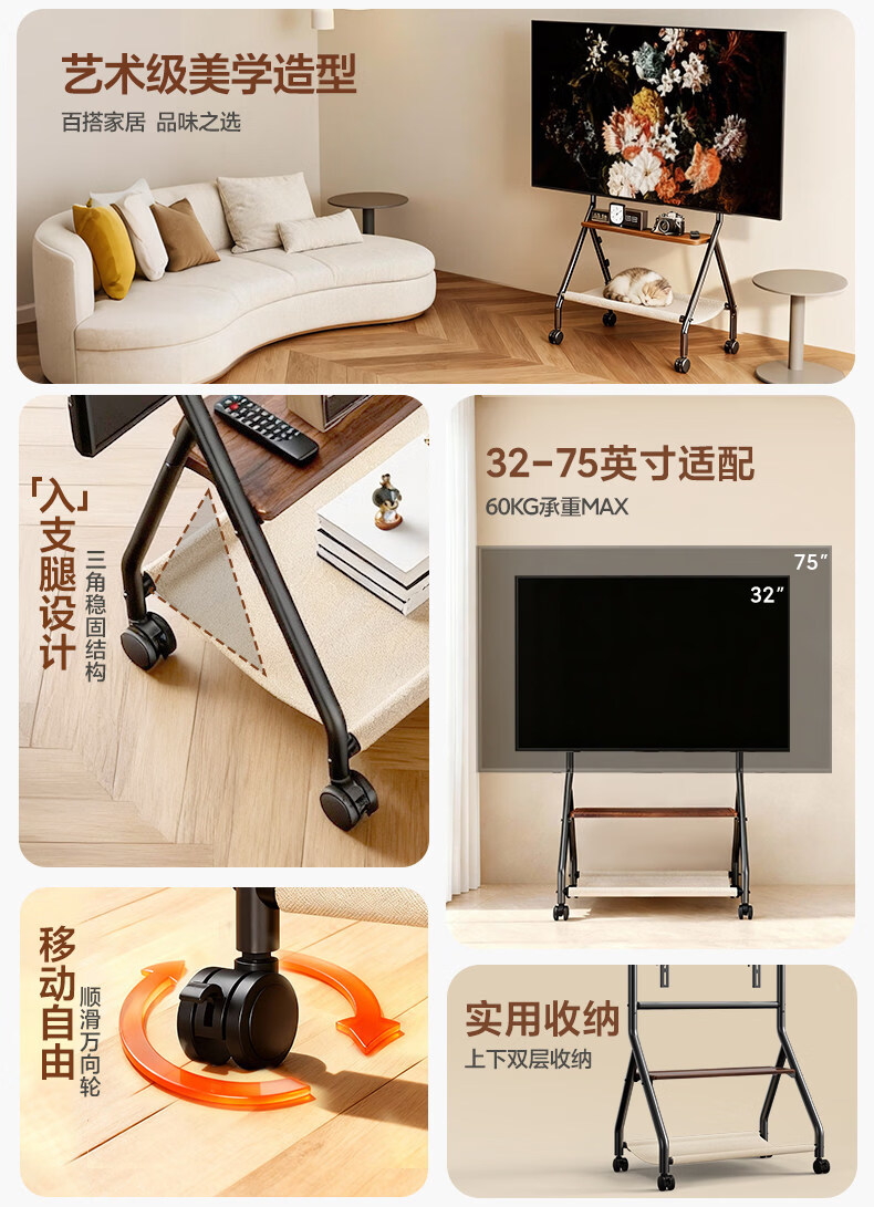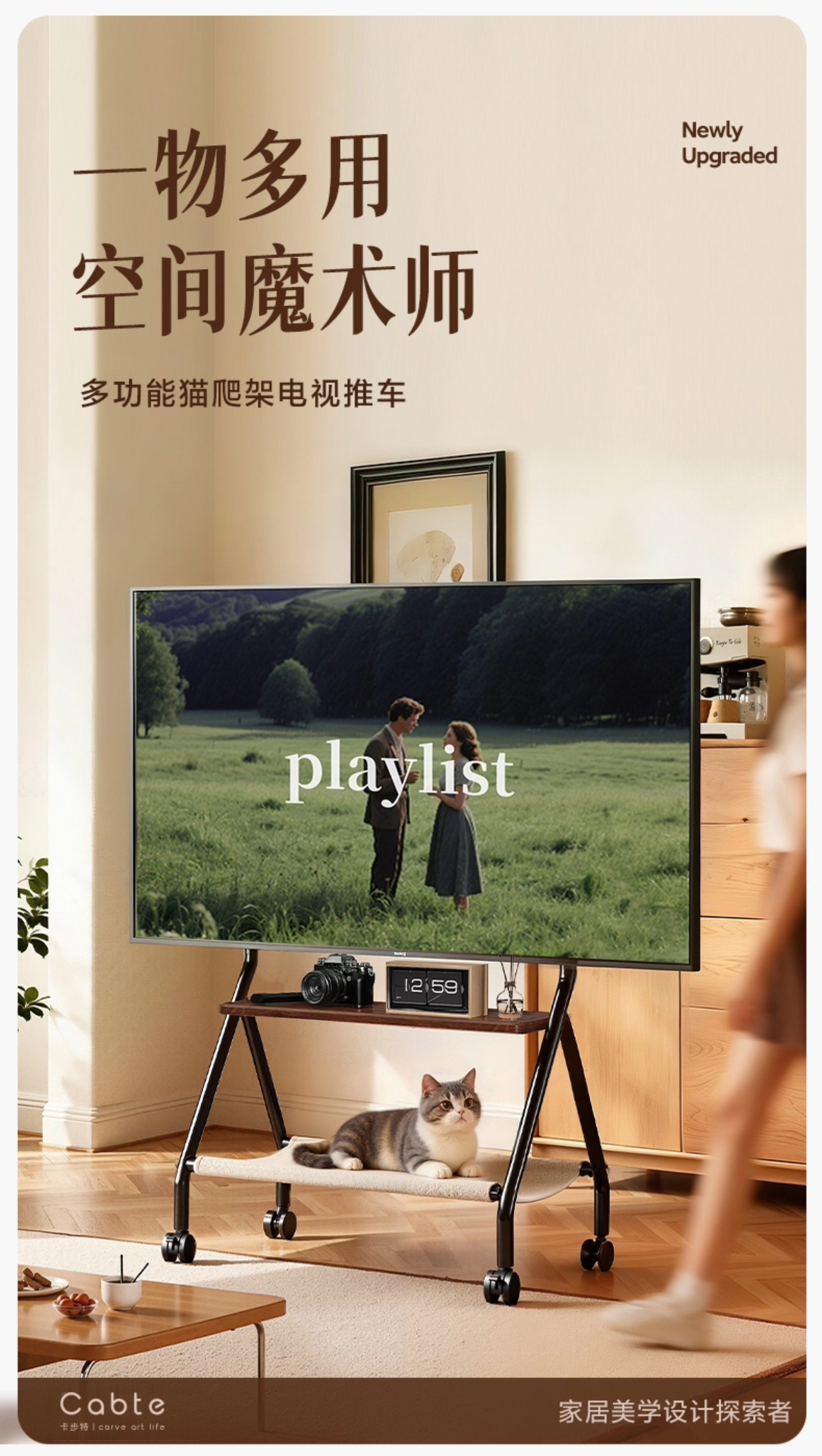CABTE movable TV stand 32-85 inches TV cabinet rotating TV cart floor stand cat nest model cat nest rack small丨32-75 inches Dreamland cat nest