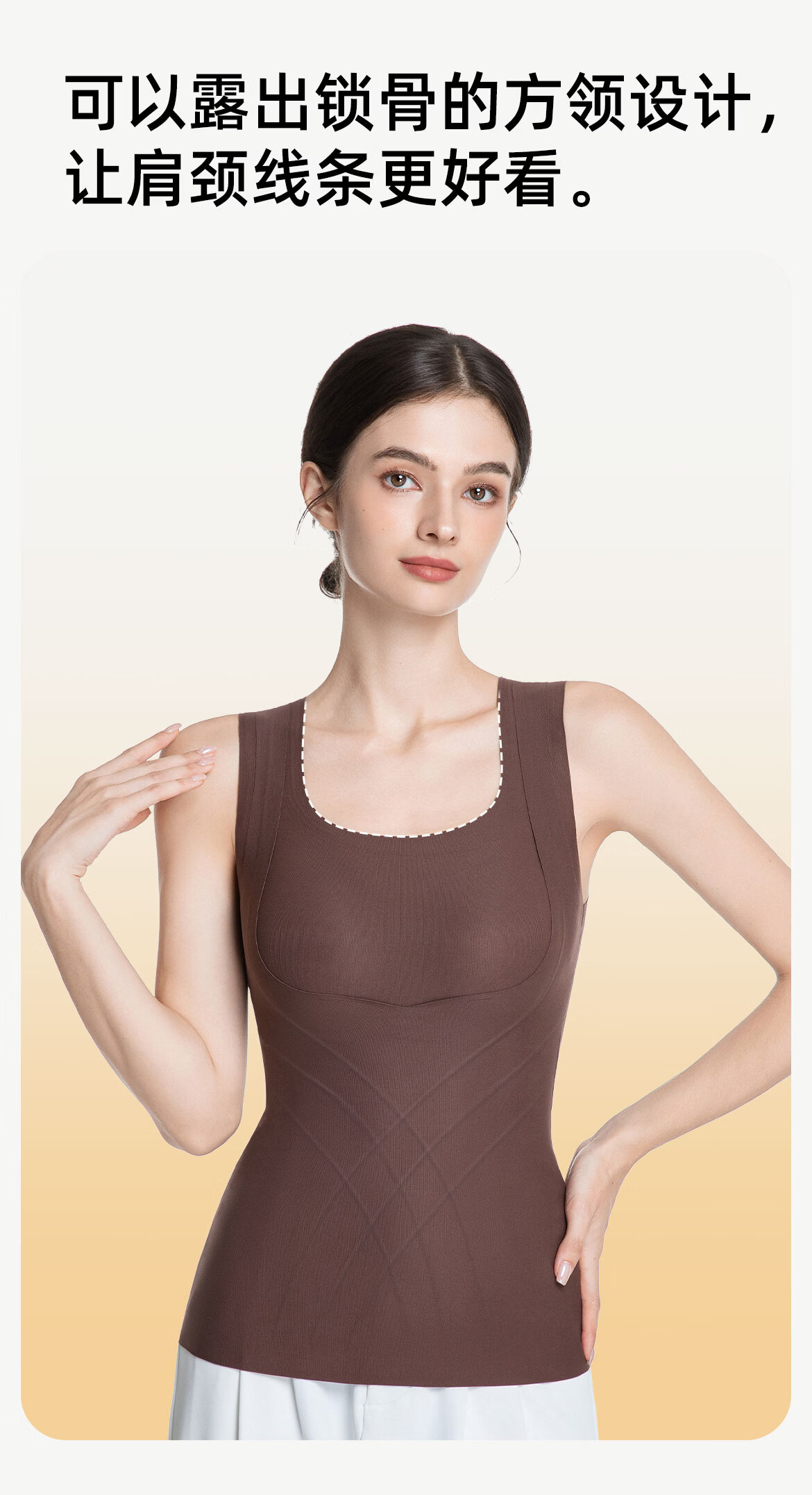 Tingmei (GRACEWELL) Thermal Vest Women's Integrated Bottoming Top with Breast Pads Women's Autumn and Winter 2026 New Bra-Free Body Shaping Muscle Bottom Top Body Shaping and Warmth Two-in-One + Bra-free Coffee Color L Recommended Weight 105-120 Jin