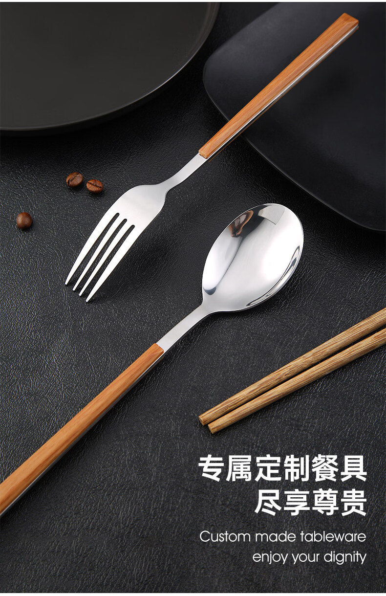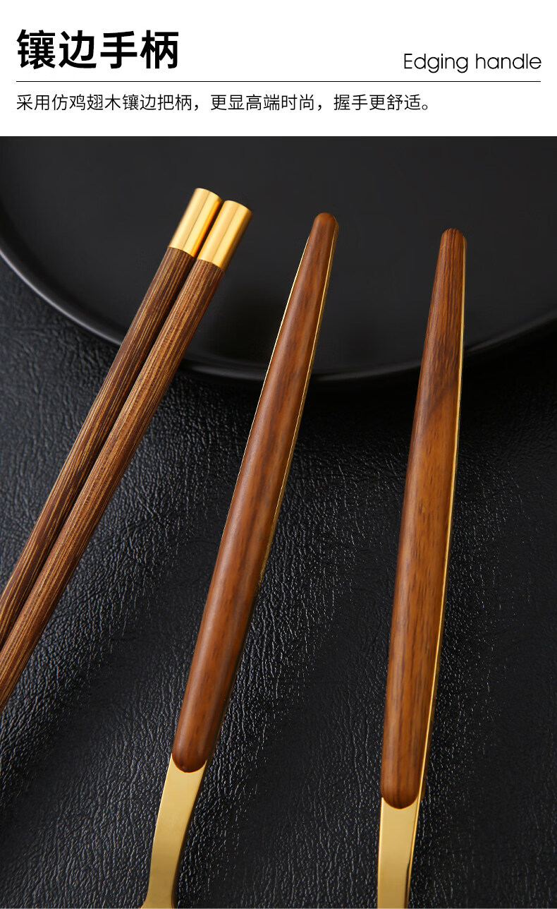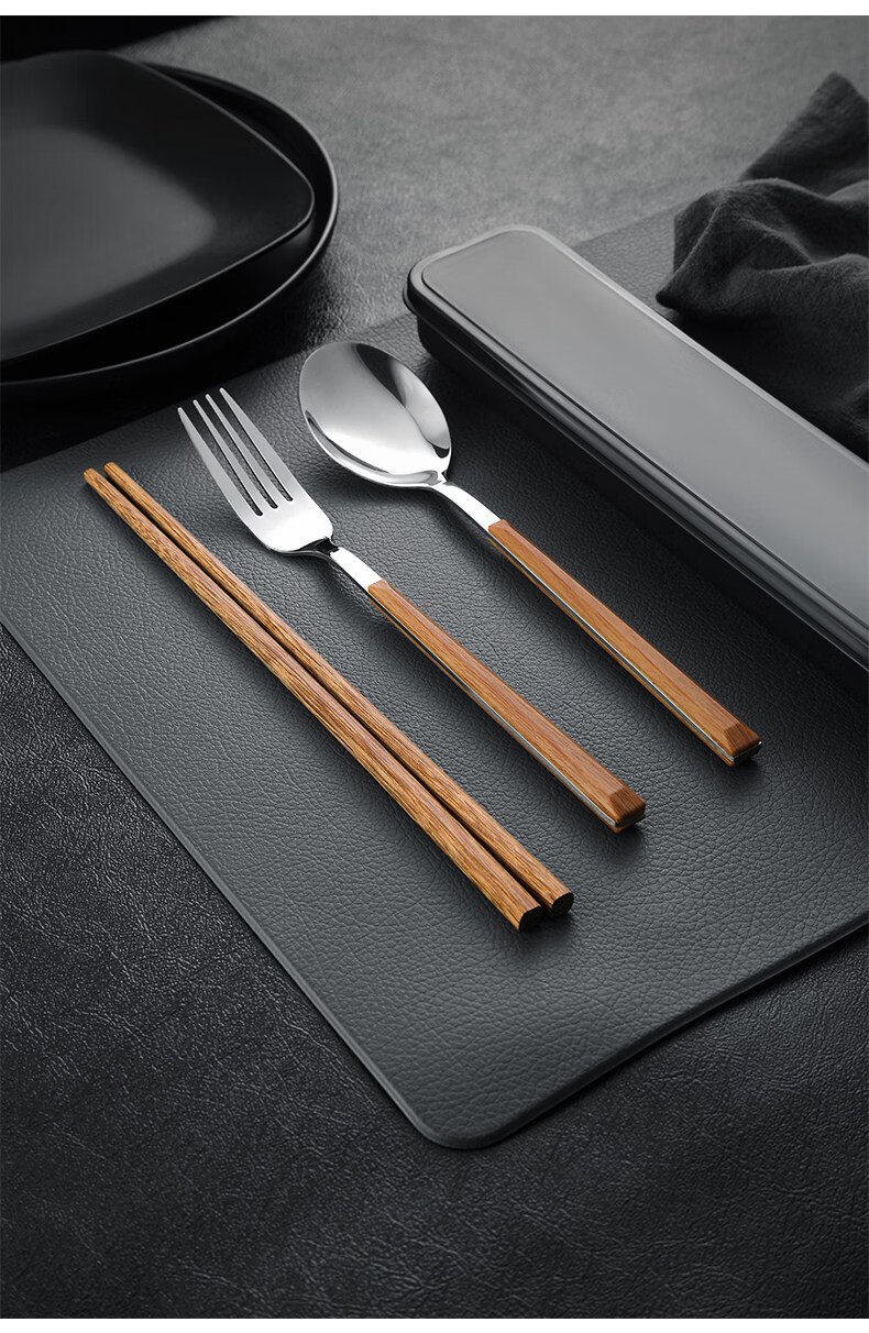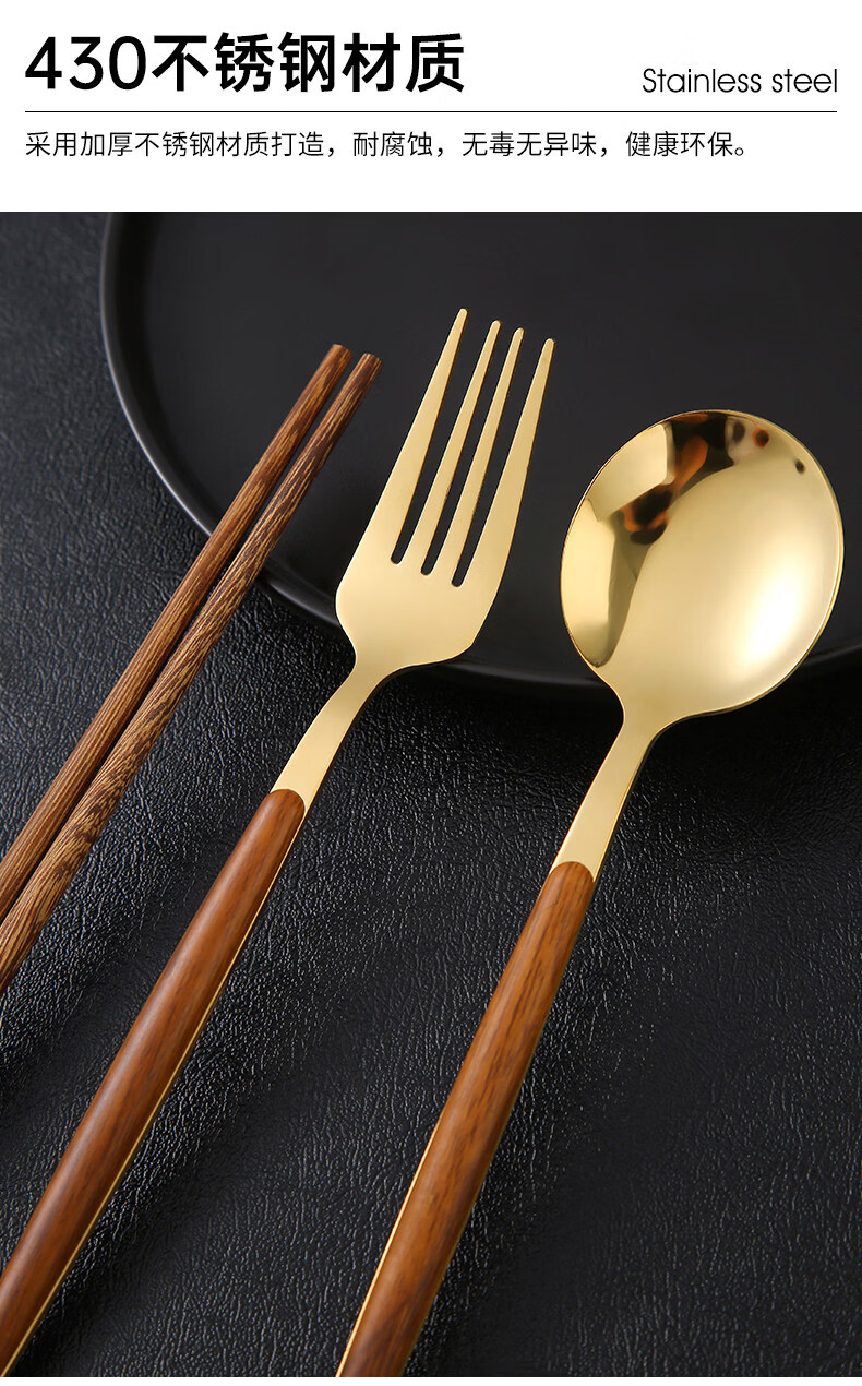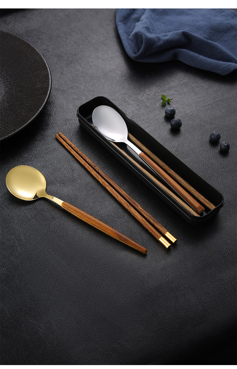 Tuojin Germany imported quality chopsticks and spoon set food grade stainless steel portable tableware student storage box fork gold 3-piece set (round chopsticks + spoon + cutlery box) comes with a portable bag