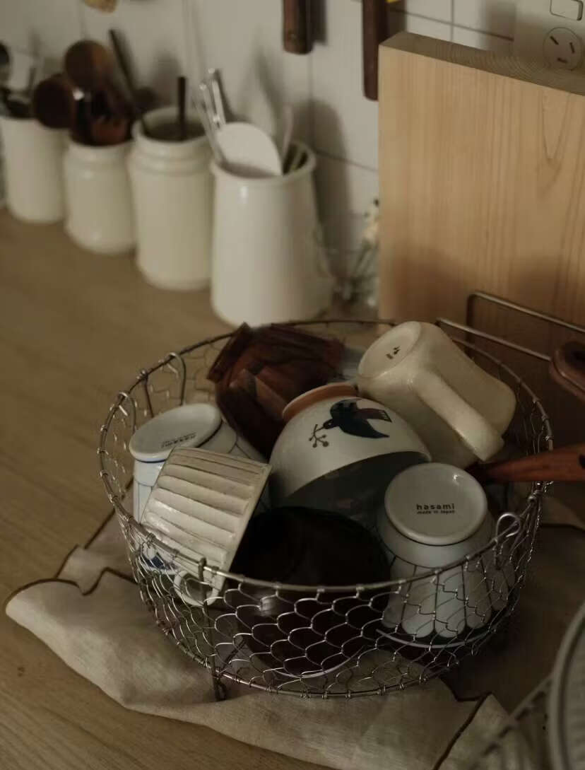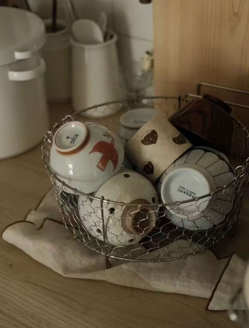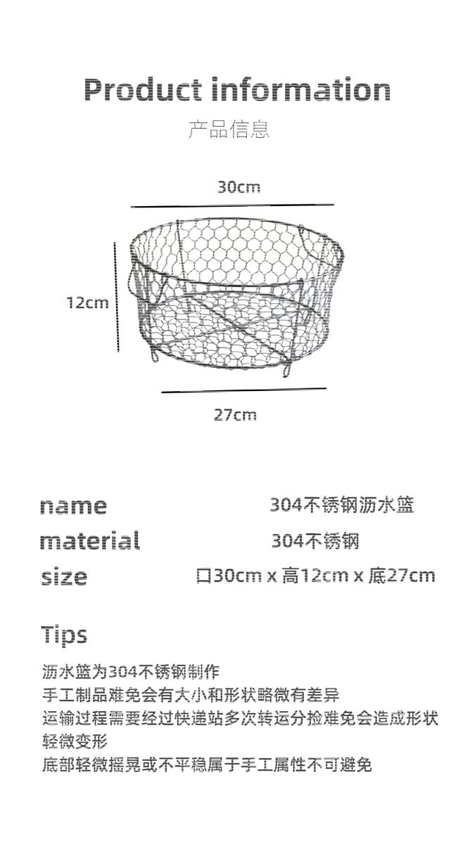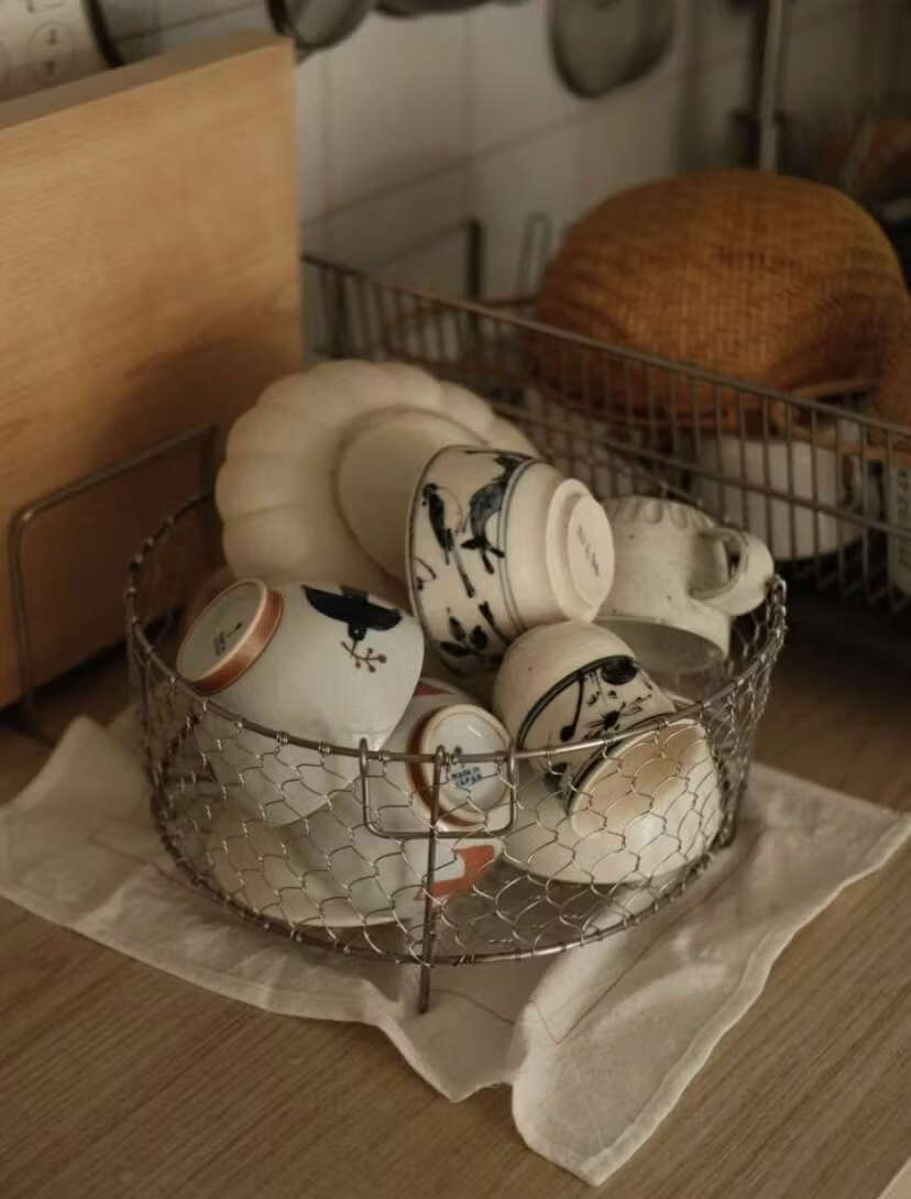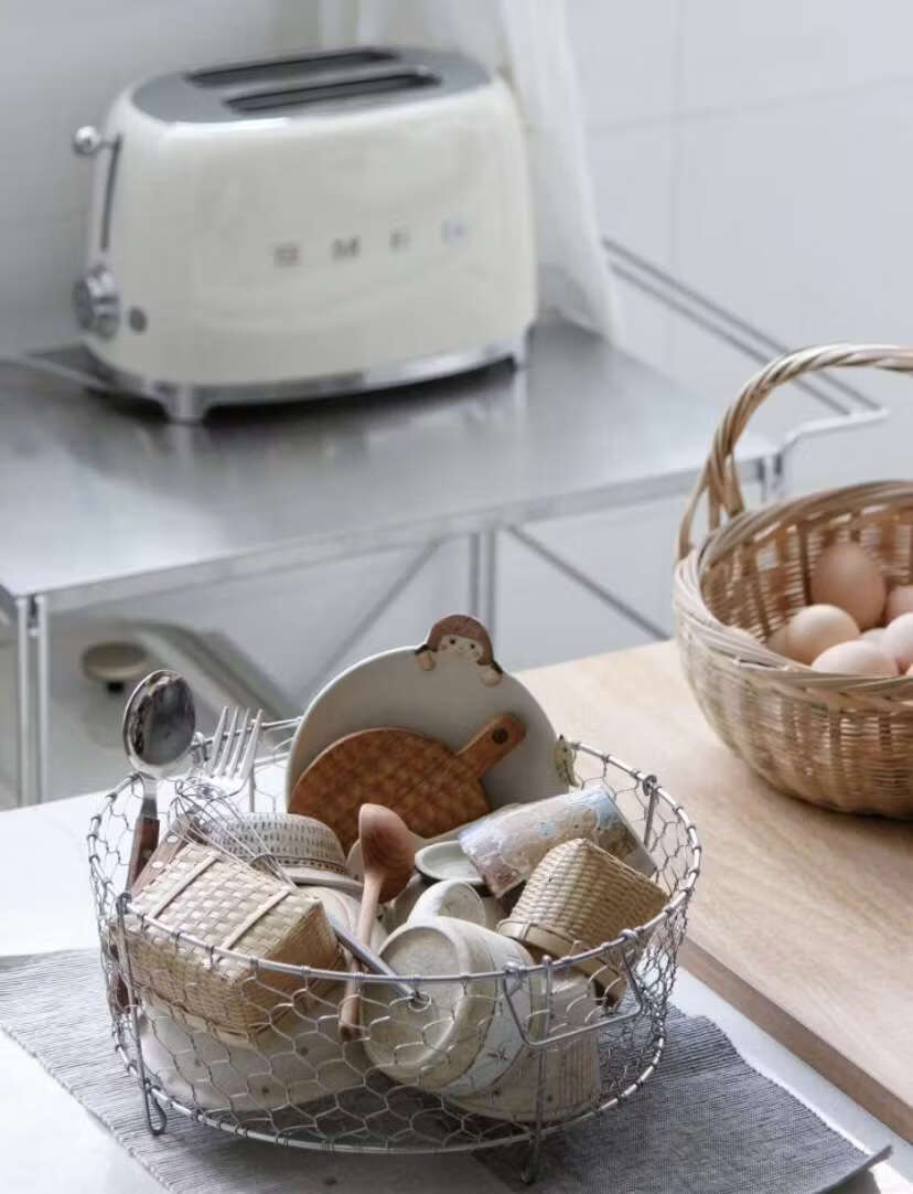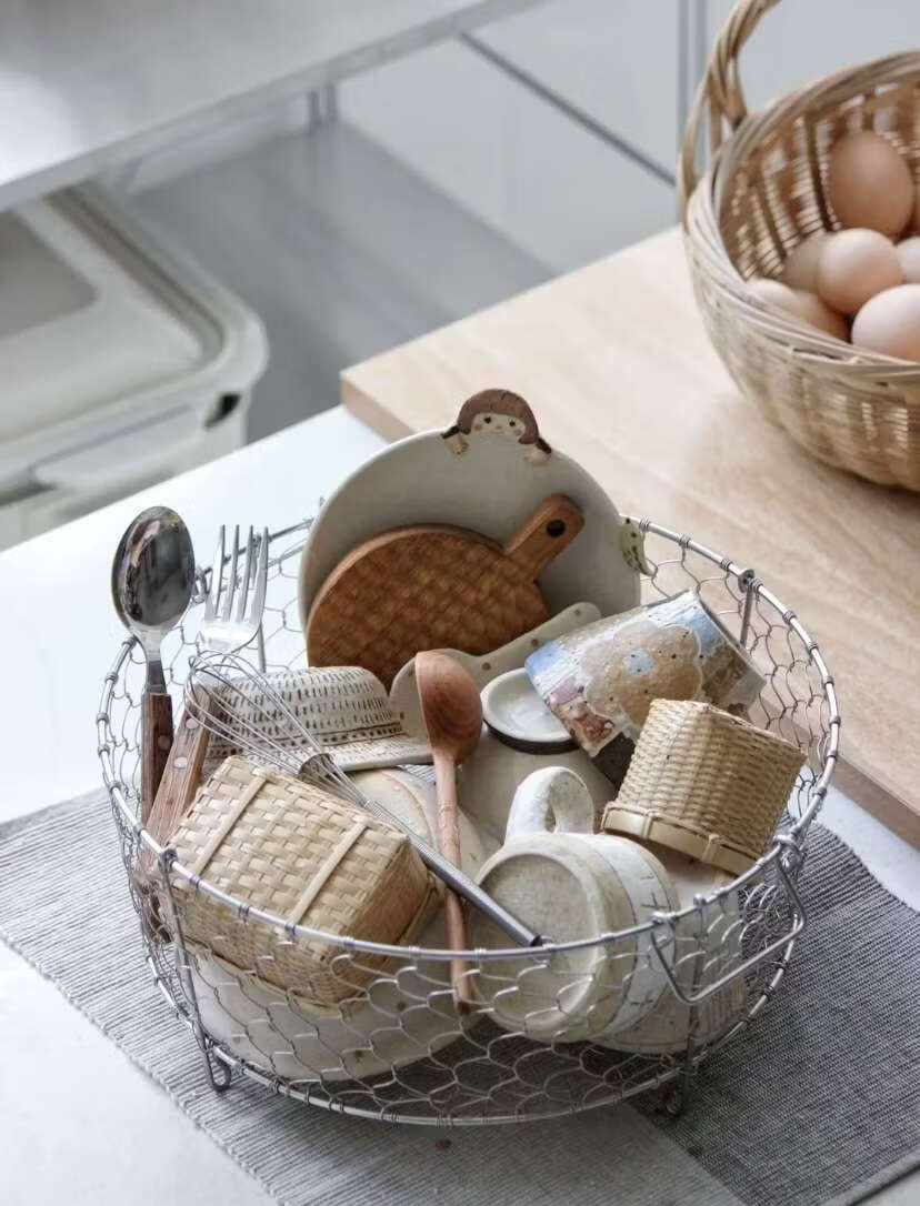 Yusenyi 3 stainless steel Japanese-style hand-woven storage basket fruit storage basket snack storage basket 25cm