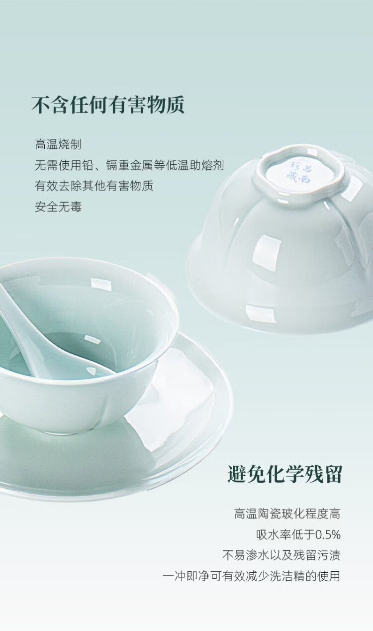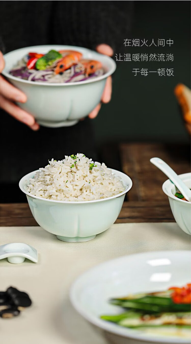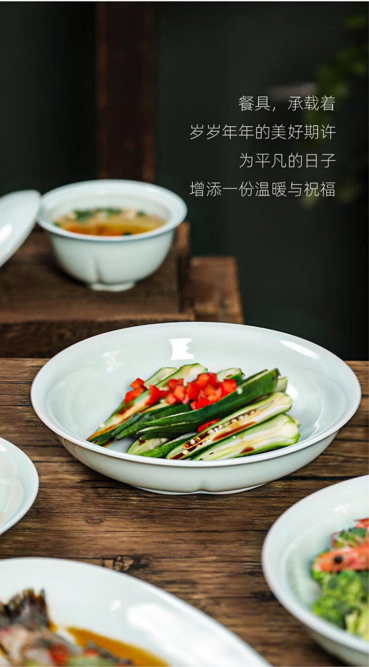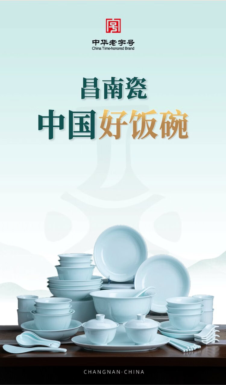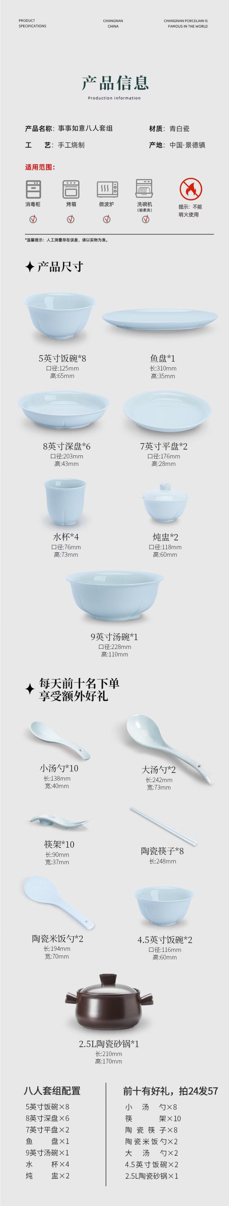 Changnan Jingdezhen ceramic tableware set celadon bowls and plates practical dinner plates and bowls set for eight persons housewarming gift Changnan Collection-Xin Shishi Ruyi Set for eight persons