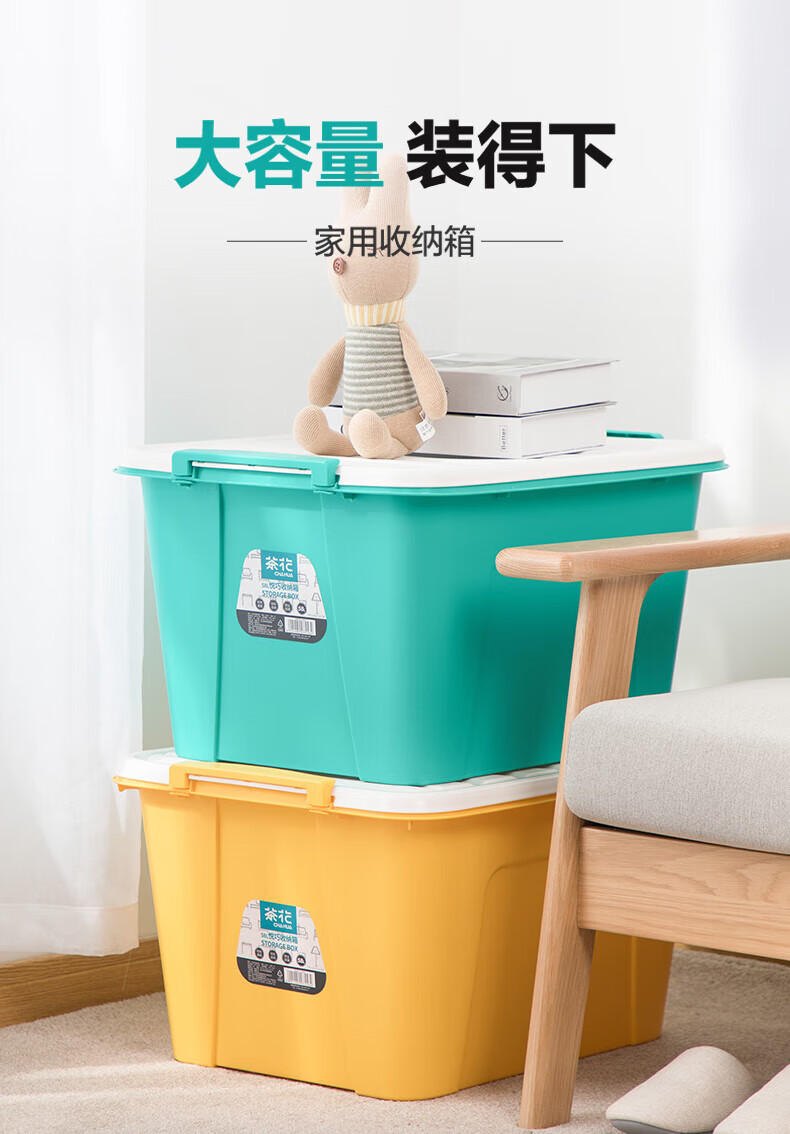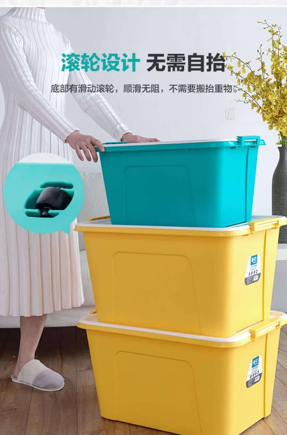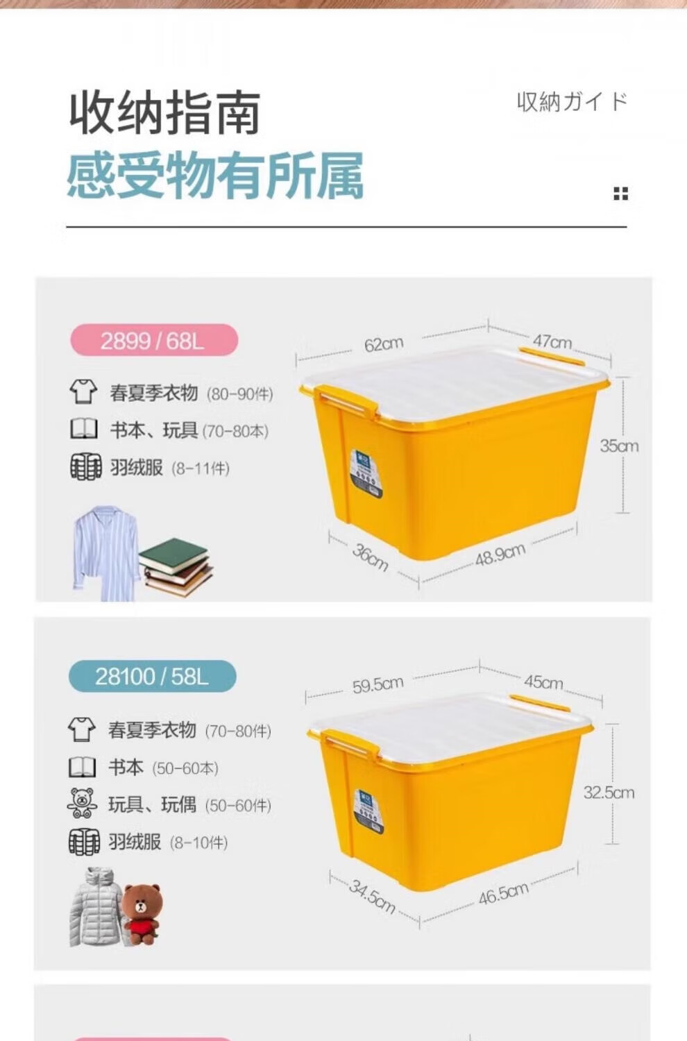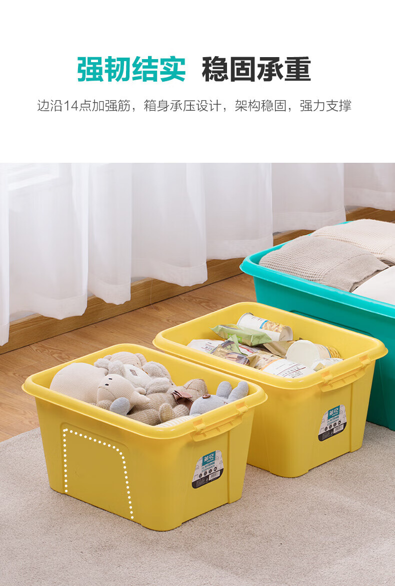 Camellia Storage Box Household Organizing Storage Box Toy Clothes Box Plastic Snack Extra Large Book Large Capacity 35L 3 Pack Yellow (No Wheels) Combination Pack