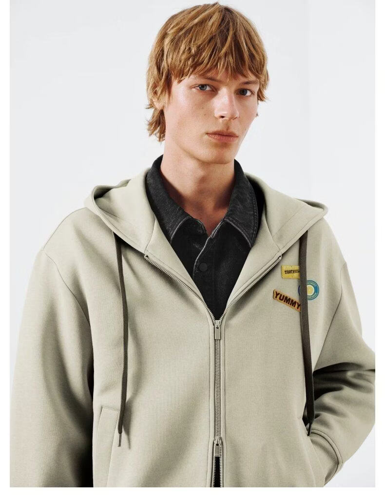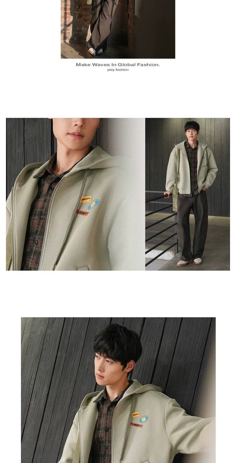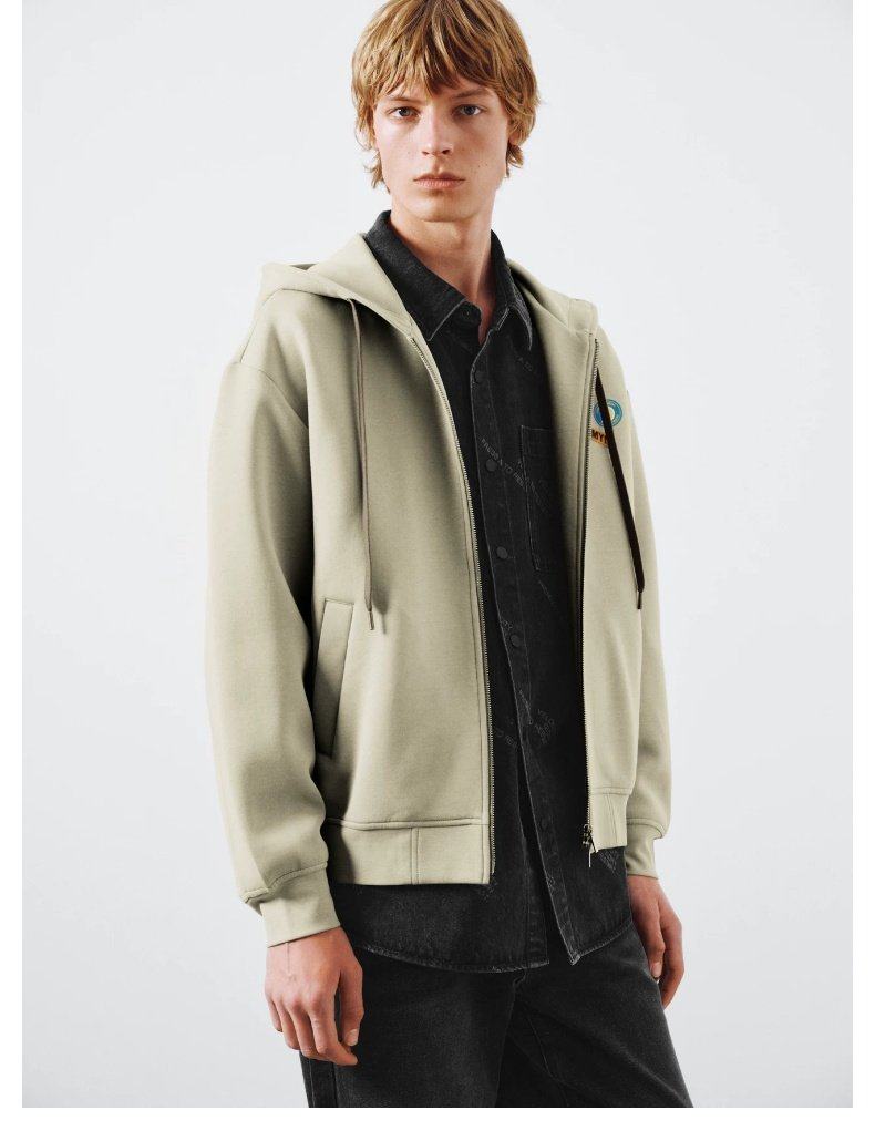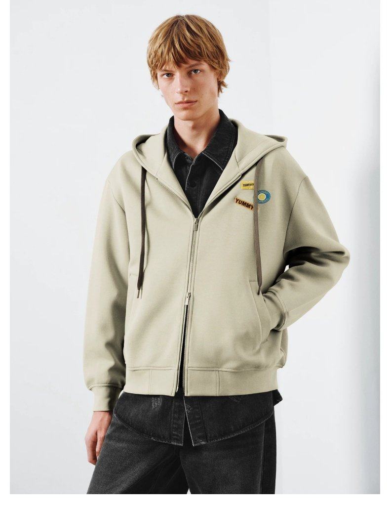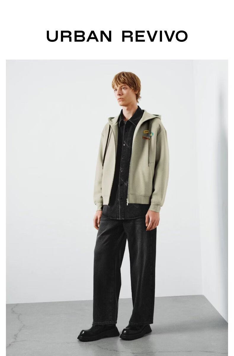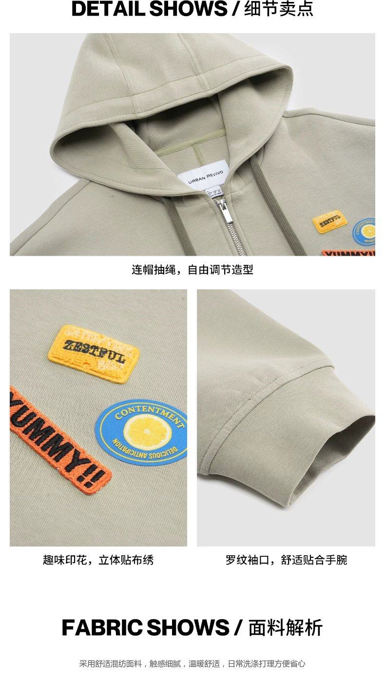 UR2026 Spring New Men's Trendy Hooded Drawstring Embroidered Super Loose Jacket UUV160007 Khaki S