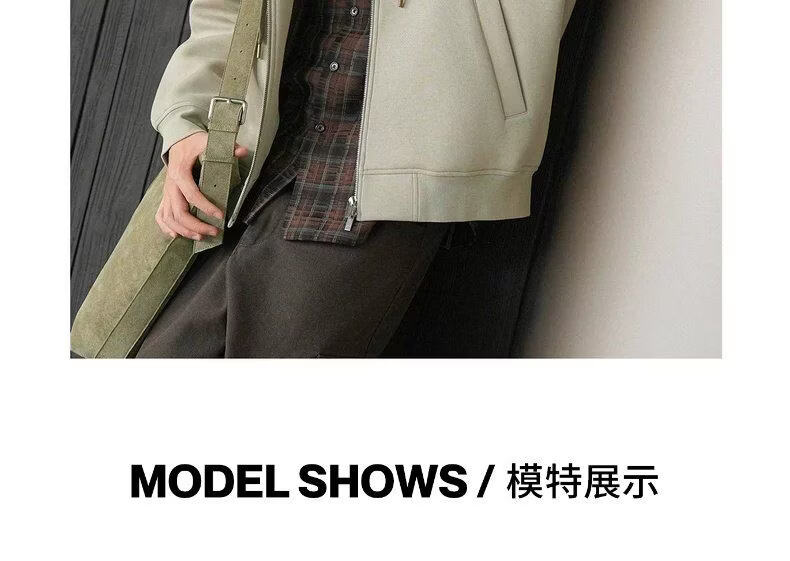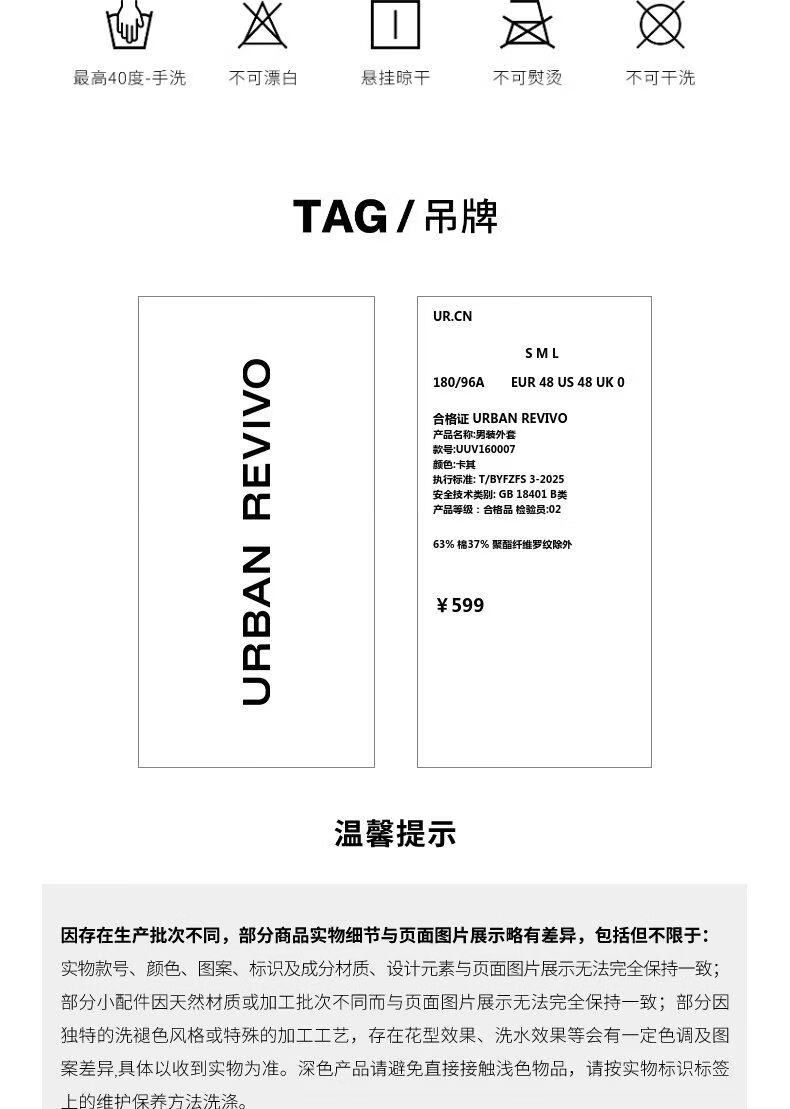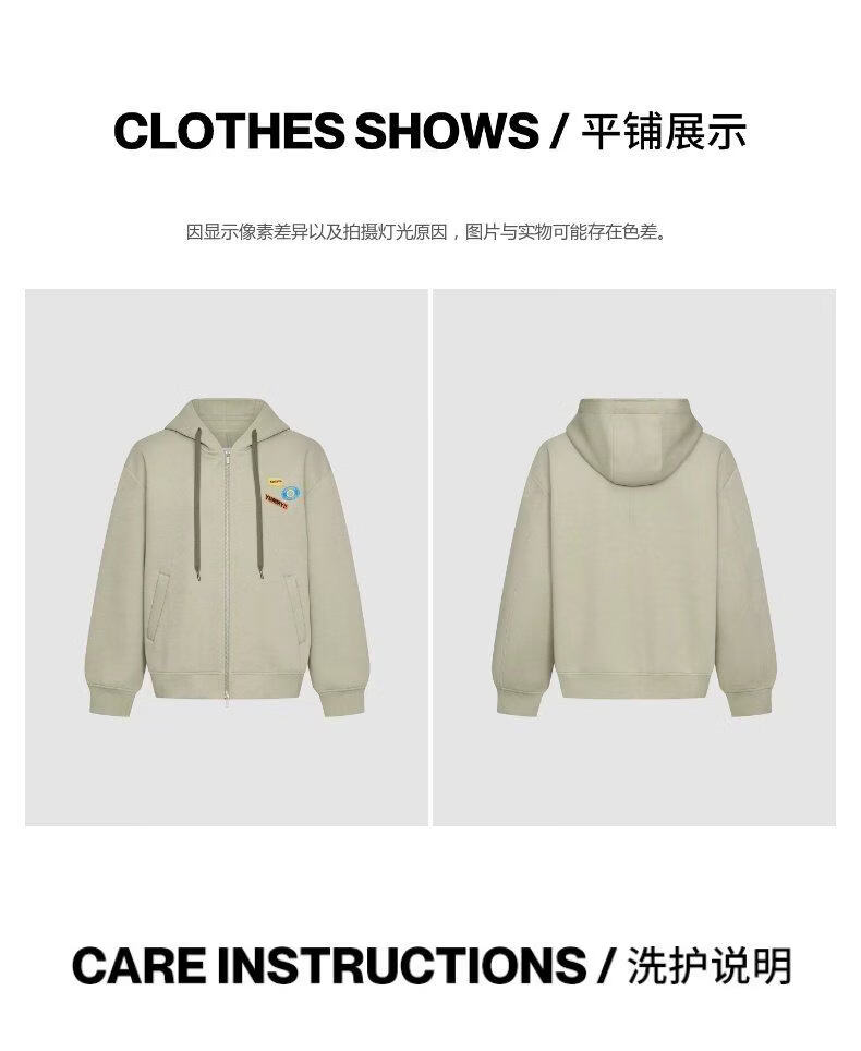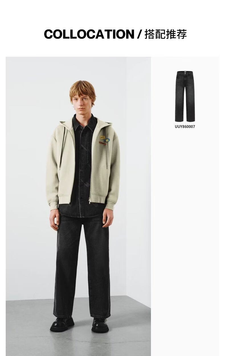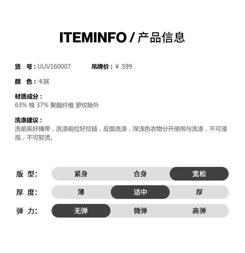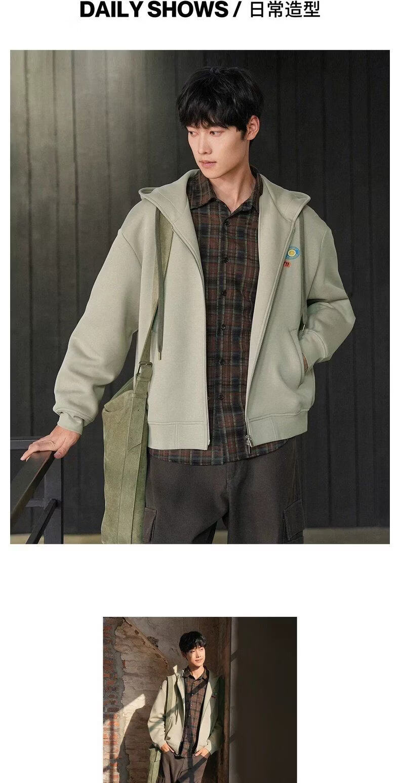 UR2026 Spring New Men's Trendy Hooded Drawstring Embroidered Super Loose Jacket UUV160007 Khaki S