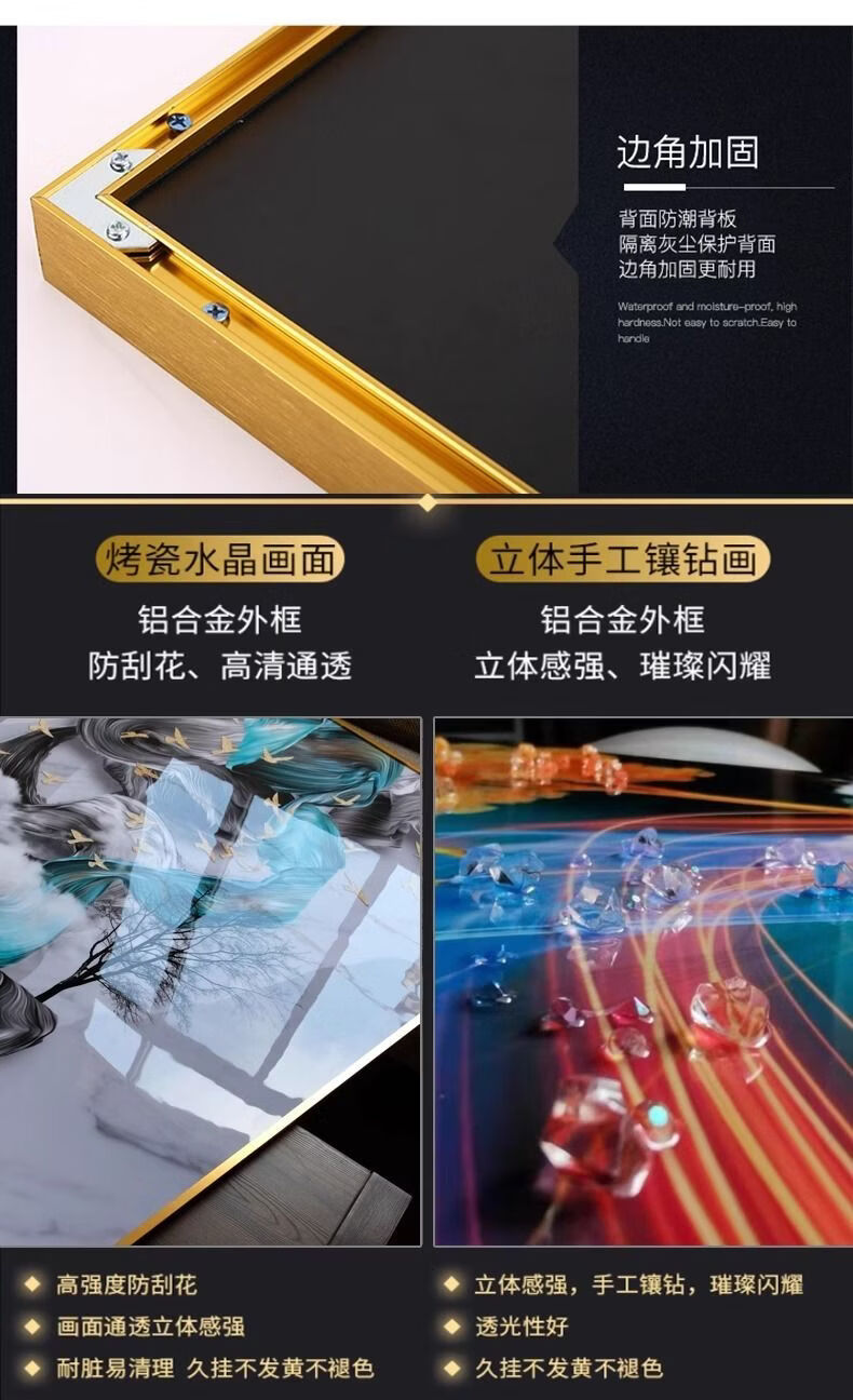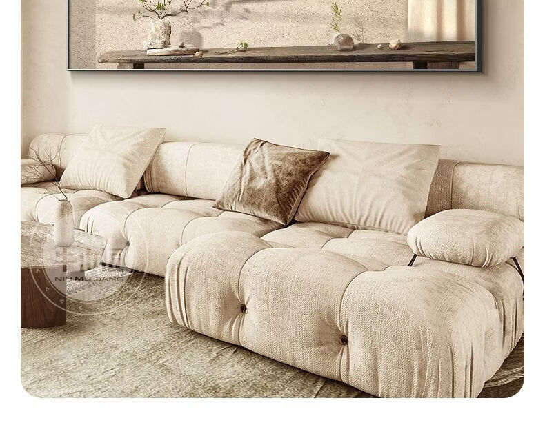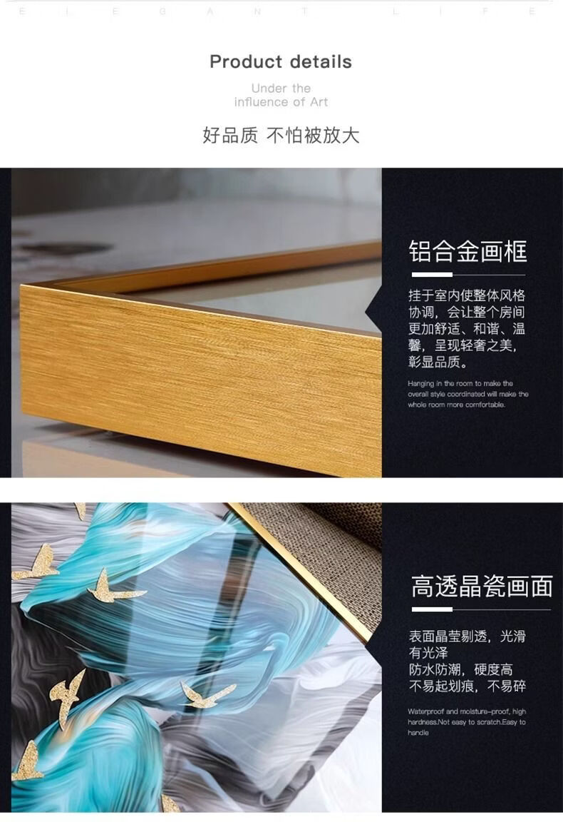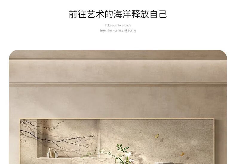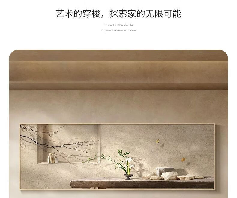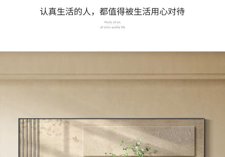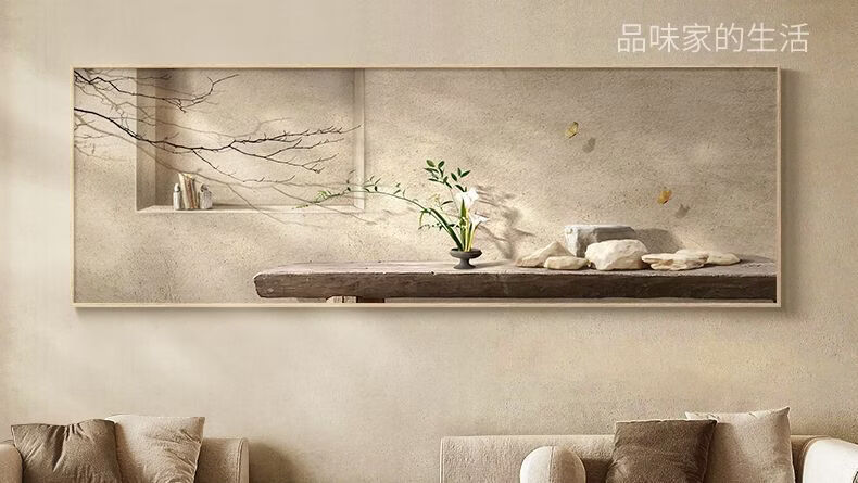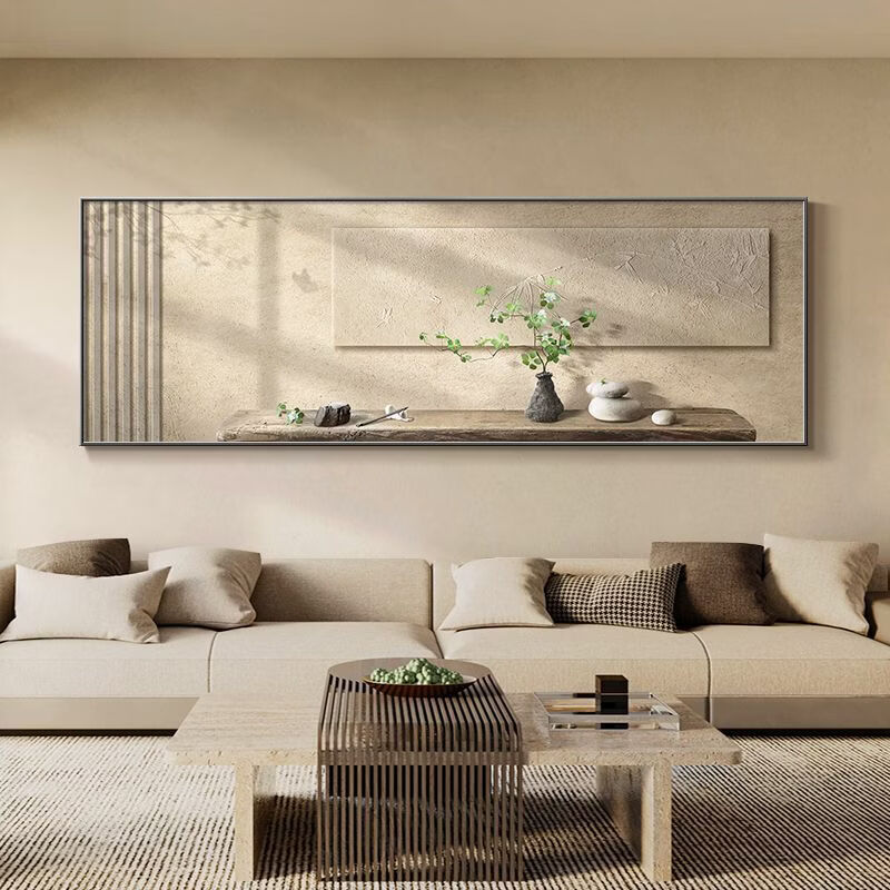 Fantasy new Chinese-style living room decorative painting, elegant and simple horizontal version of tea room mural wabi-sabi style high-end sofa background wall hanging painting 70x180cm with light/voice control plug-in type 01 green shadow whirling with installation