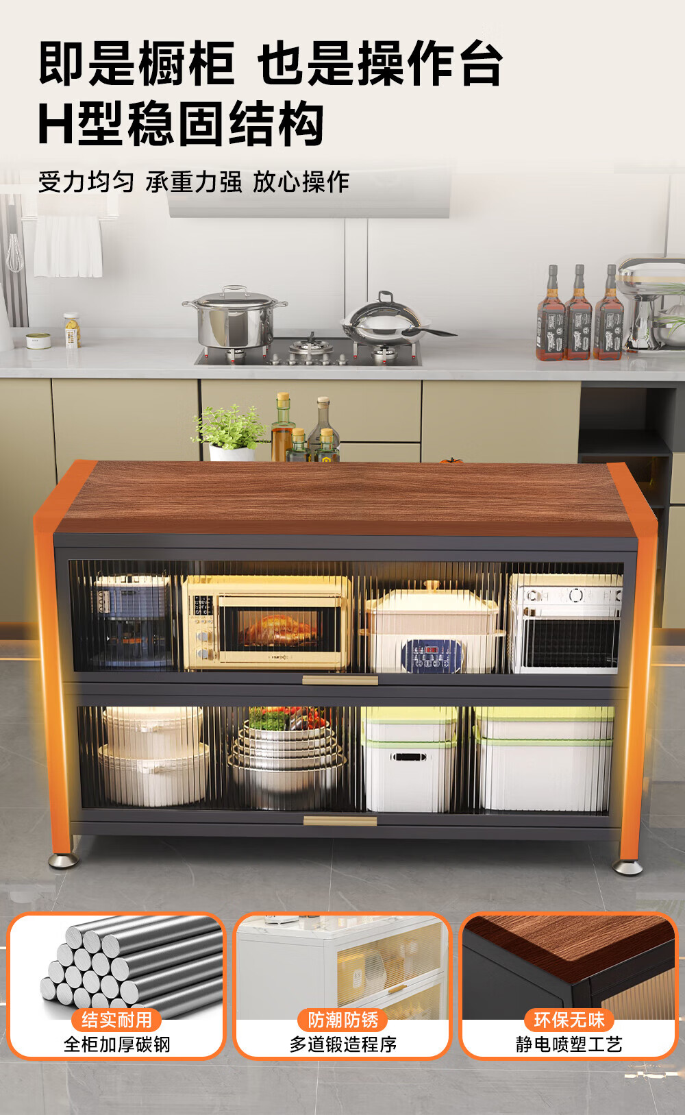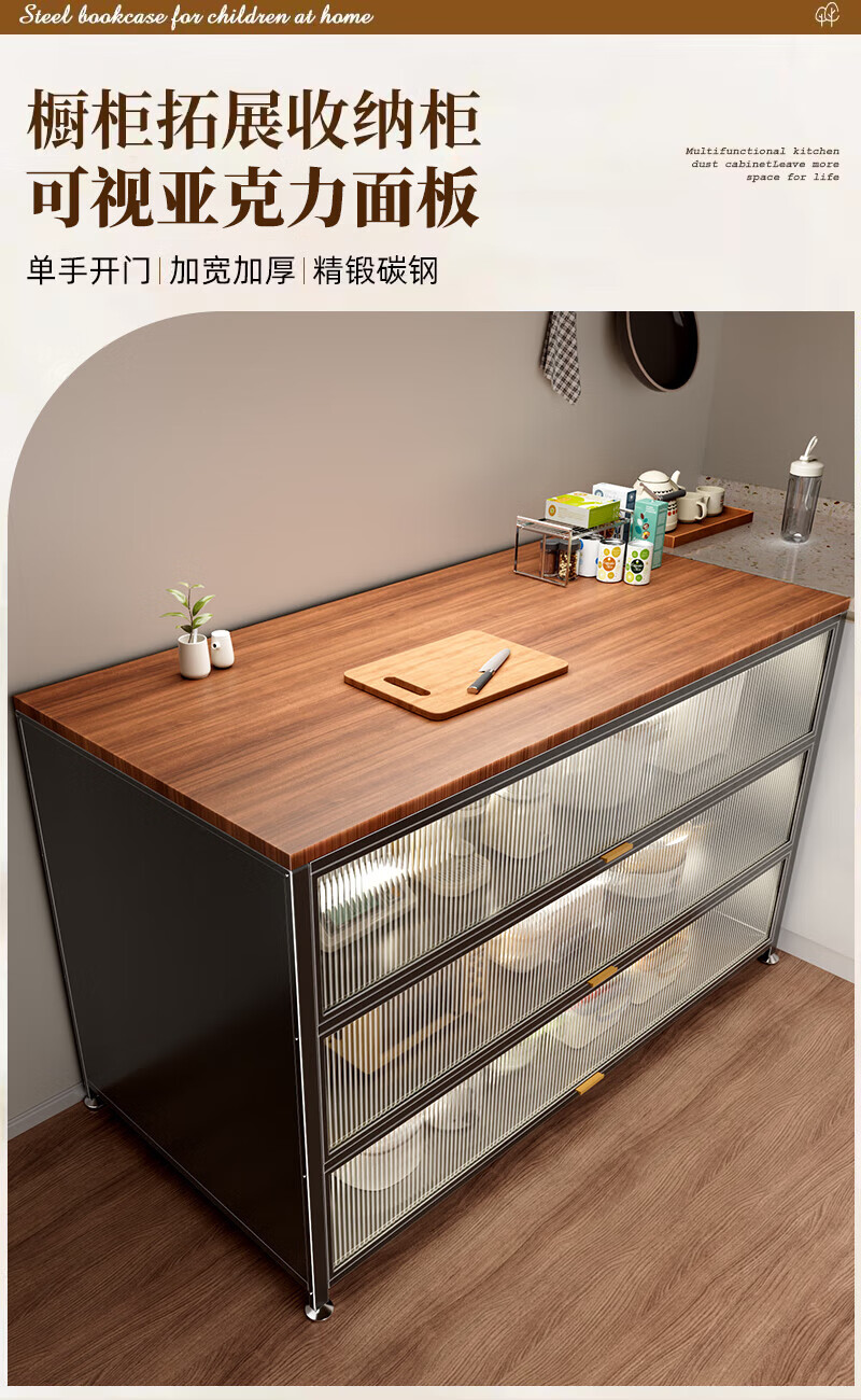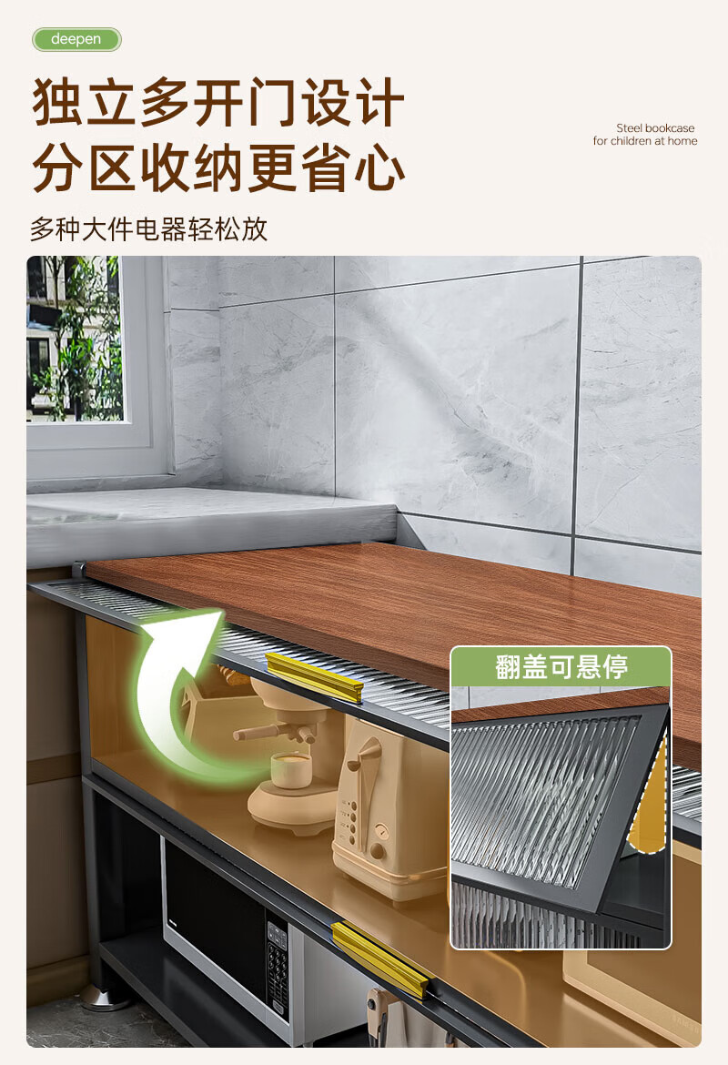 Yibei kitchen storage rack microwave storage cabinet wooden cabinet floor-standing multi-layer multi-function oven storage cabinet peach wood wooden cabinet 4 layers long 1200 wide 400 high 1100 gray