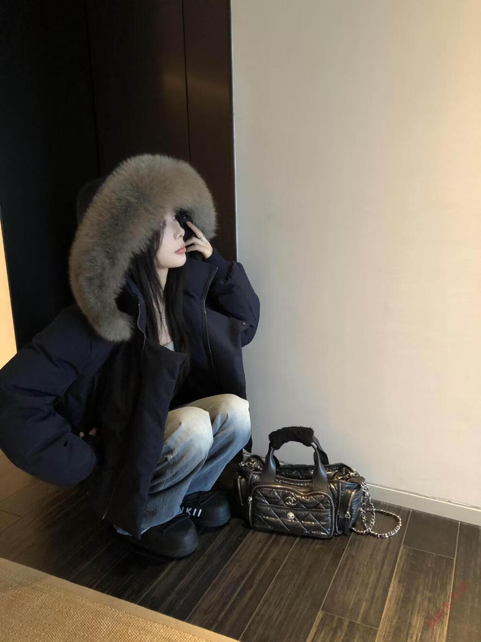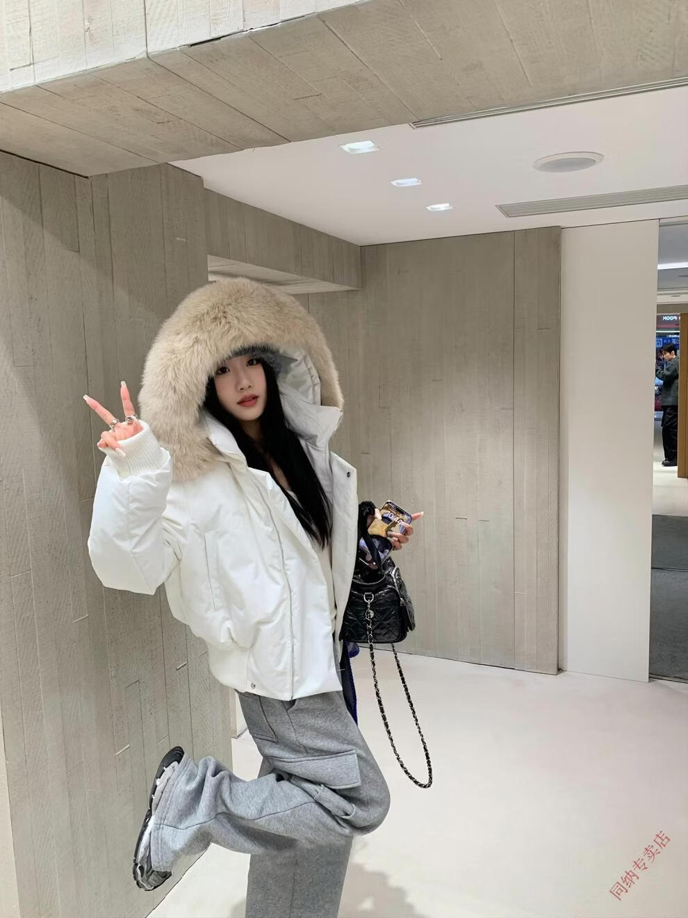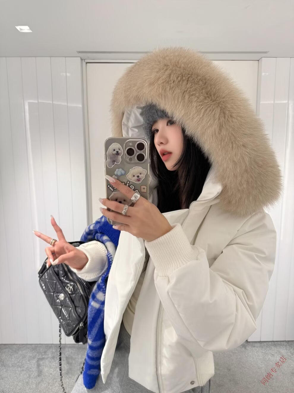 First diameter imitation fox fur collar design short down jacket for women winter new white duck down hooded jacket for women white S