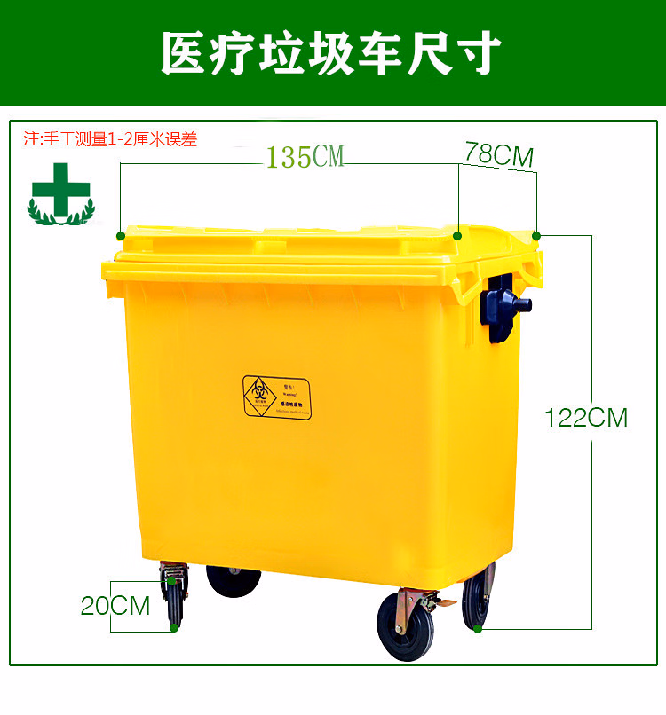 Universal 660L 1100L yellow medical waste transfer truck trash can waste recycling turnover box medical 660L plus 660L thickened garbage truck without cover