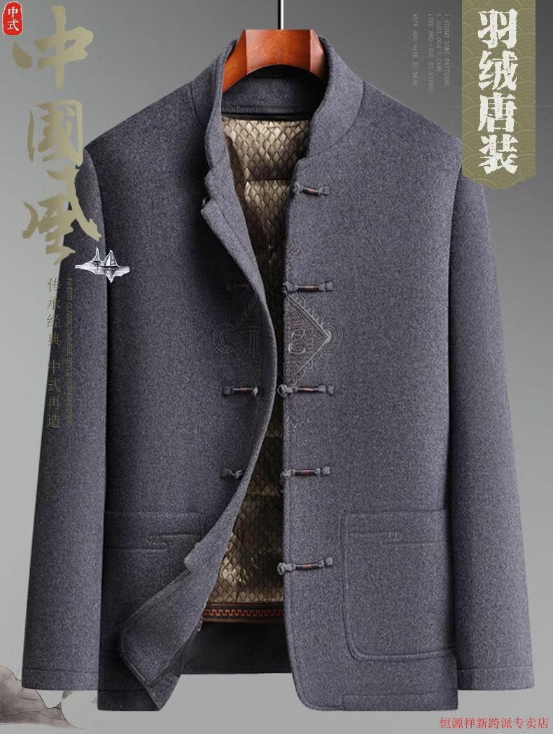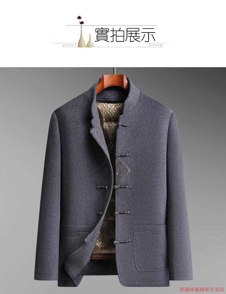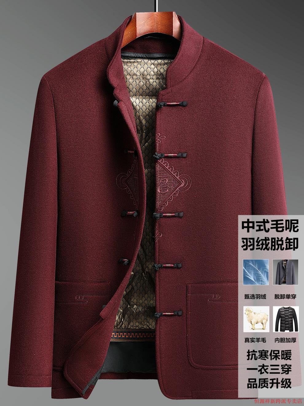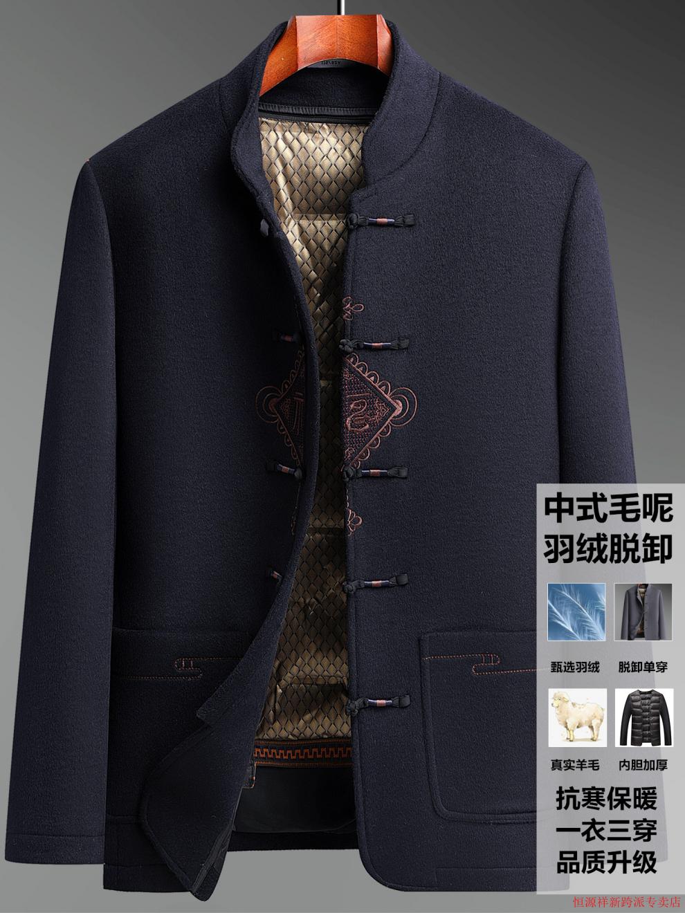 Hengyuanxiang Winter Down Jacket Removable Liner Tang Suit Men's Wool Wool Jacket Chinese Style Middle-aged and Elderly Dad Stand Collar Jacket Navy Blue Wool Wool Removable Down Liner Sleeves M 170