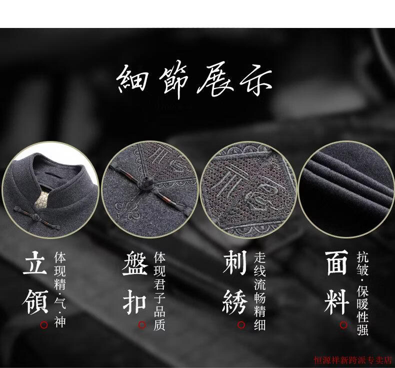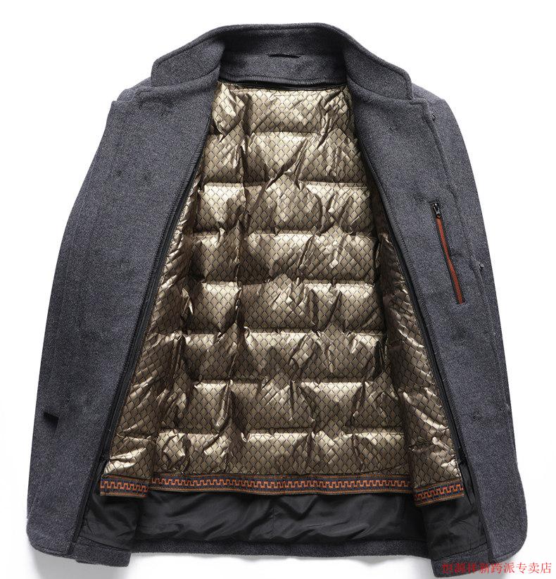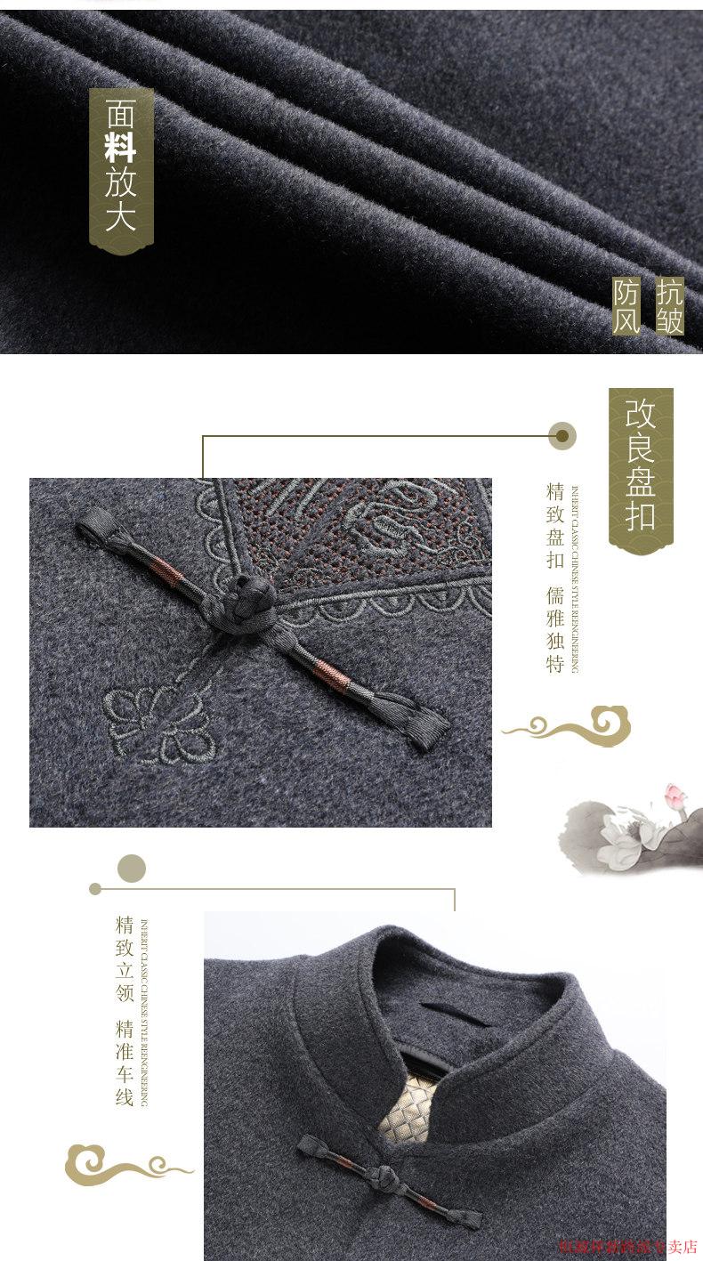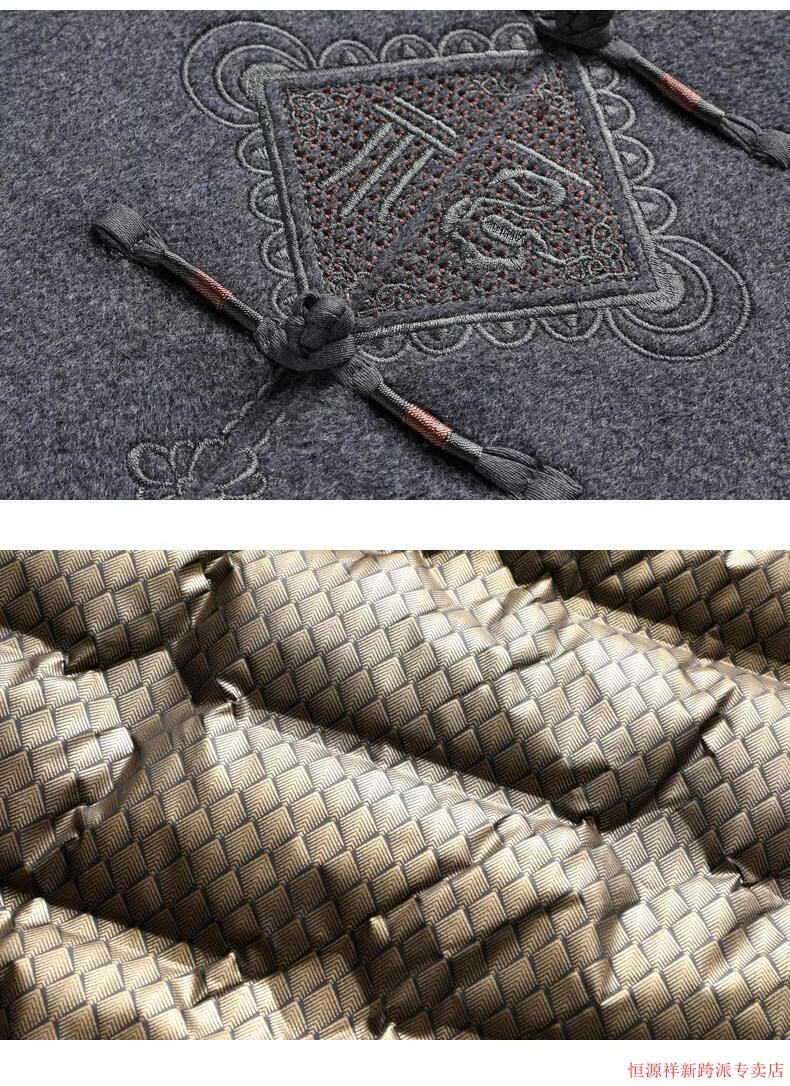 Hengyuanxiang Winter Down Jacket Removable Liner Tang Suit Men's Wool Wool Jacket Chinese Style Middle-aged and Elderly Dad Stand Collar Jacket Navy Blue Wool Wool Removable Down Liner Sleeves M 170