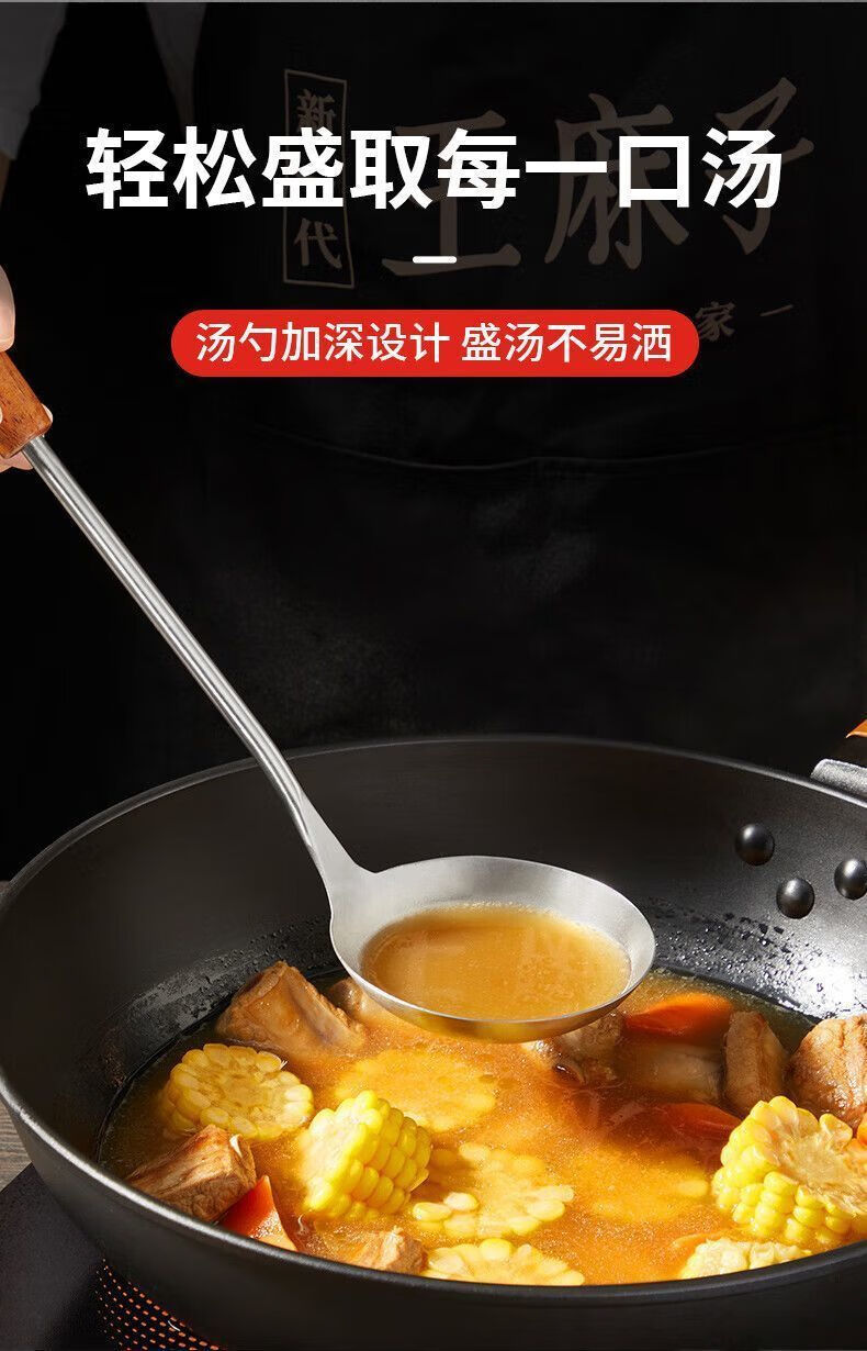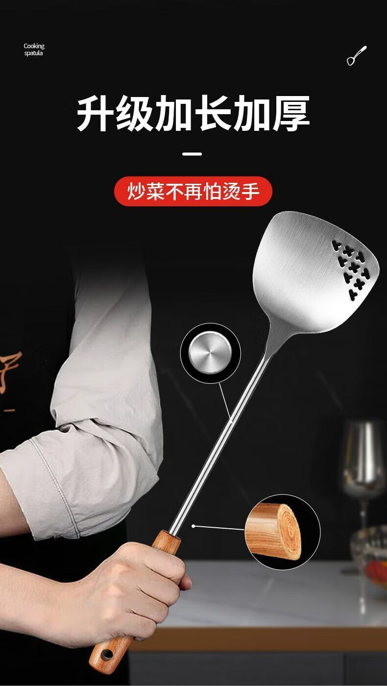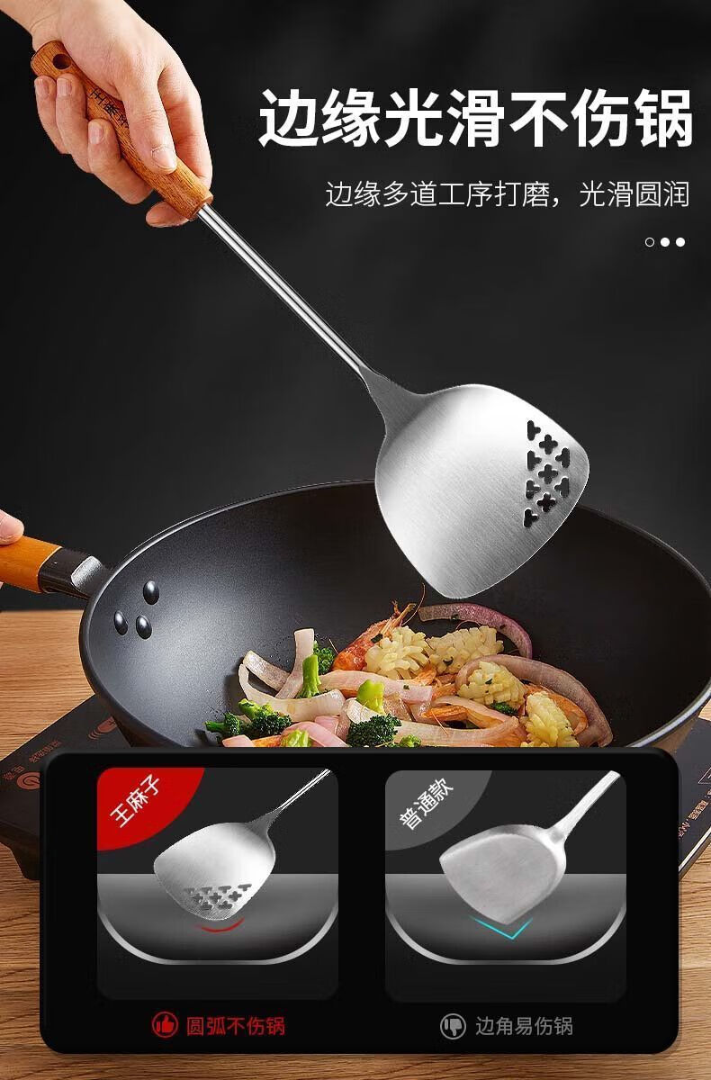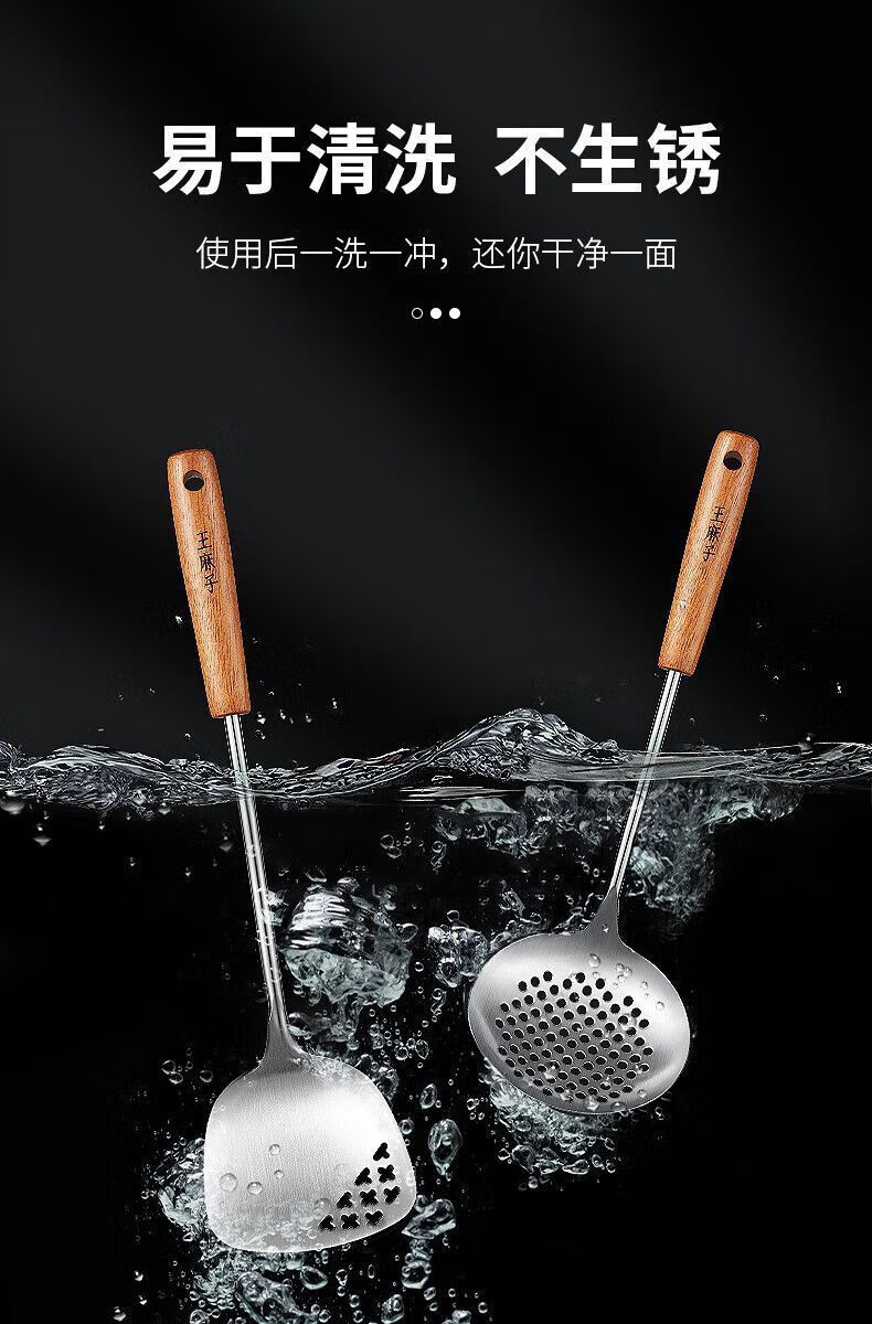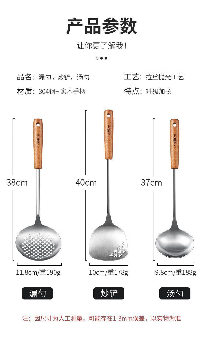 Wang Mazi 304 stainless steel spatula three-piece set household soup spoon colander cooking spatula set anti-scalding wooden handle kitchen utensils 304 stainless steel colander